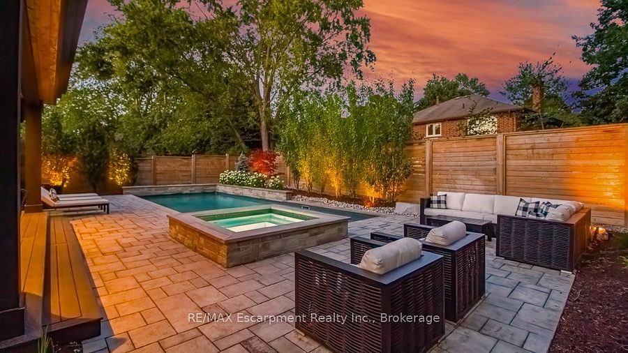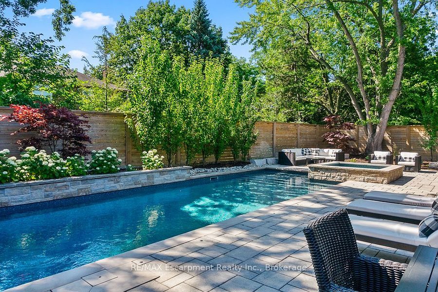 Welcome to beautiful 484 aspen forest drive. This elegant 4+1 bedroom, 4 bathroom executive home has been meticulously updated top to bottom, and sits on a professionally landscaped lot in oakville's prestigious ford eastlake neighborhood. The highlight of this home is the spectacular private backyard - your own slice of paradise featuring a saltwater pool alongside a covered lifetime deck with gas fireplace and outdoor tv, perfect for entertaining. The integrated hot tub, professional landscaping and inground irrigation, add the perfect finishing touch to this outdoor sanctuary. Step inside to discover a warm and inviting space, featuring an updated eat-in kitchen, that opens directly to your backyard paradise. Spacious dining and living areas, plus a main floor laundry room and walk-in access from the garage complete this level. Upstairs, the spacious primary bedroom suite includes a luxuriously renovated spa-like ensuite, three additional bedrooms and a beautifully updated main bathroom. The finished lower level adds incredible versatility with a sizable recreation room, 4 pc bath, and large bonus room - perfect as home office, fitness space, or fifth bedroom. Located in the coveted ford eastlake community, you'll enjoy proximity to top-ranked schools, beautiful parks and ravine trails, convenient transit connections, and access to oakville's premium downtown shopping area. From the stunning backyard oasis to comprehensive interior updates on every level, this move-in ready gem delivers style, functionality, and prime location ready for you to make your own dreams come true and create lasting memories from day one.