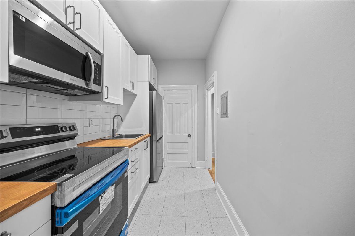 • Modern kitchen with sleek cabinetry and large windows for natural light.