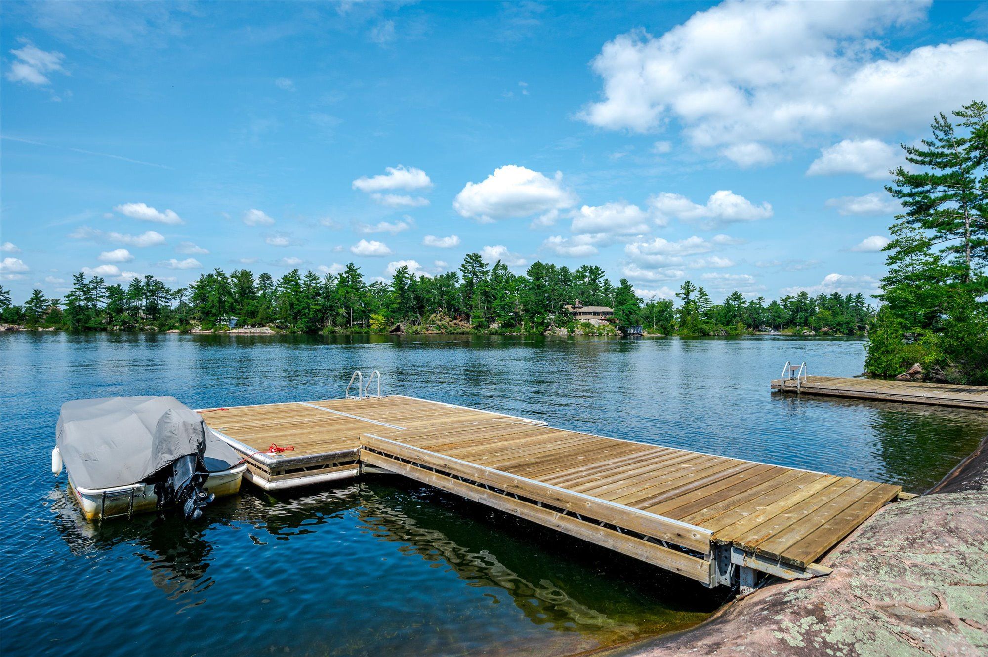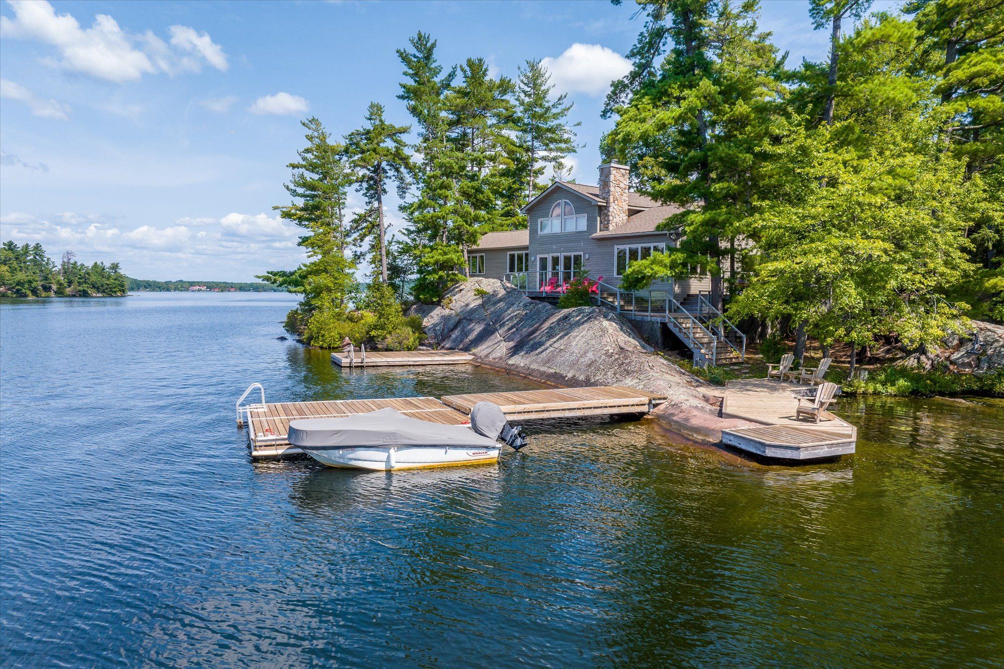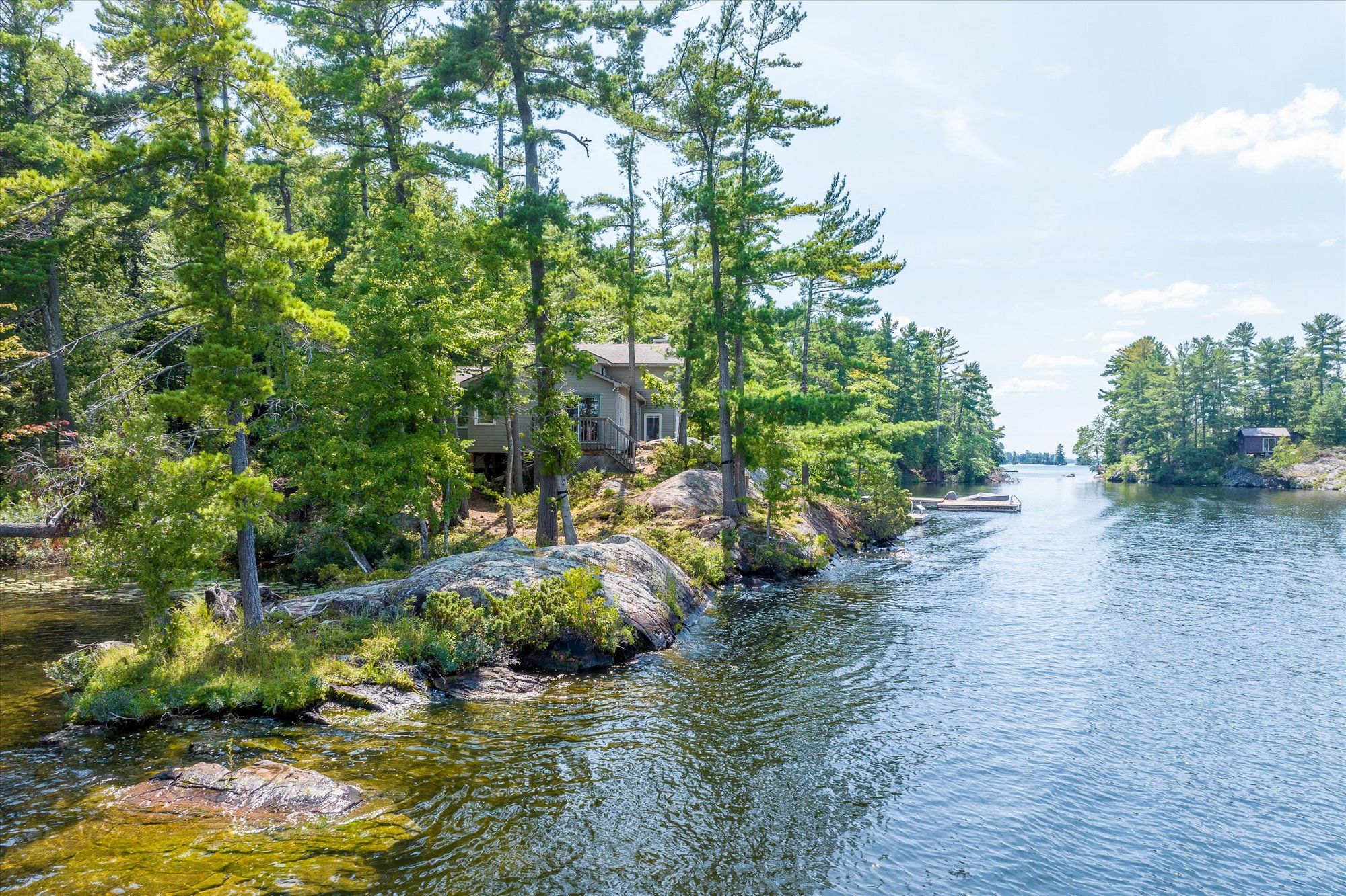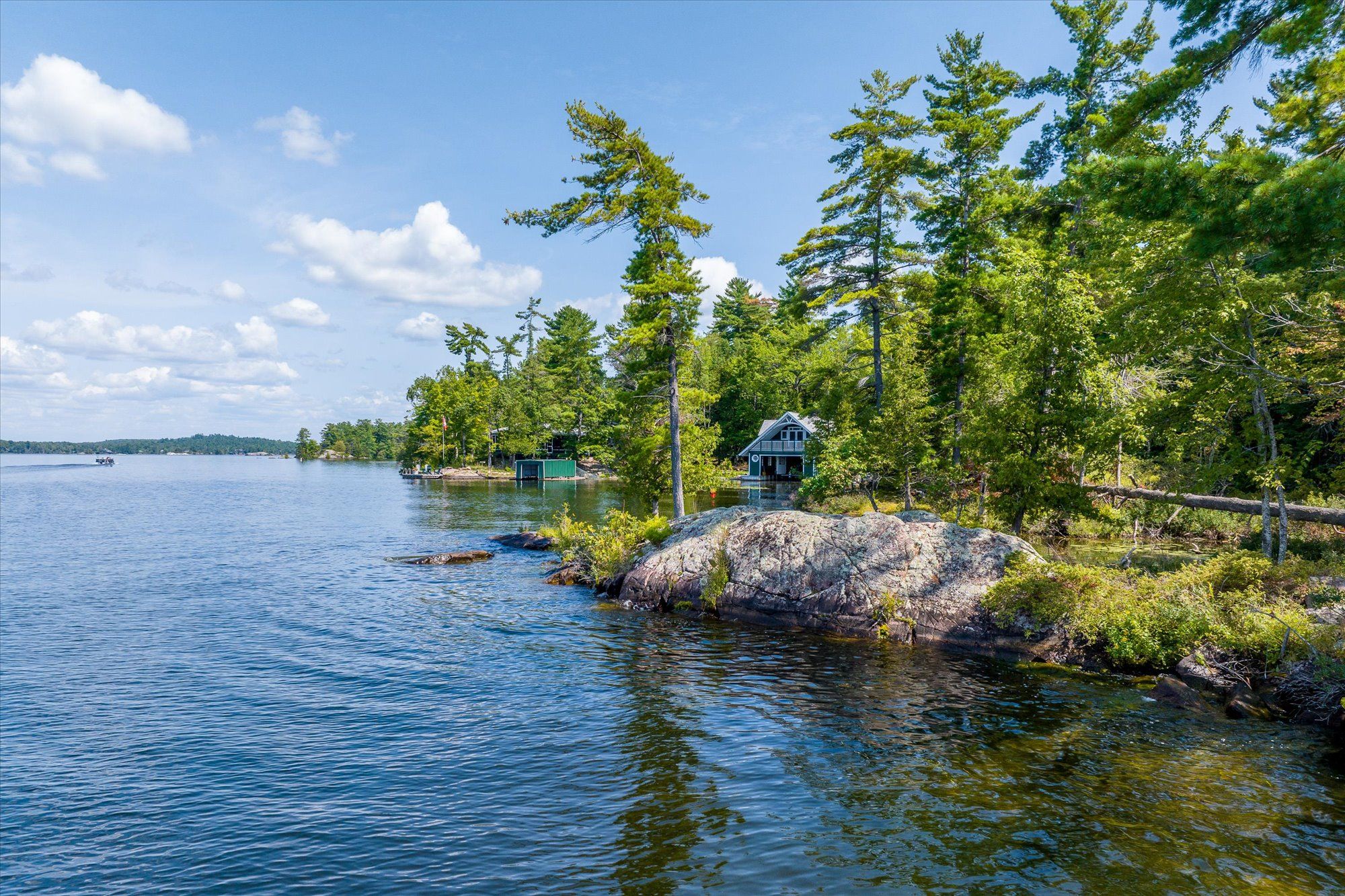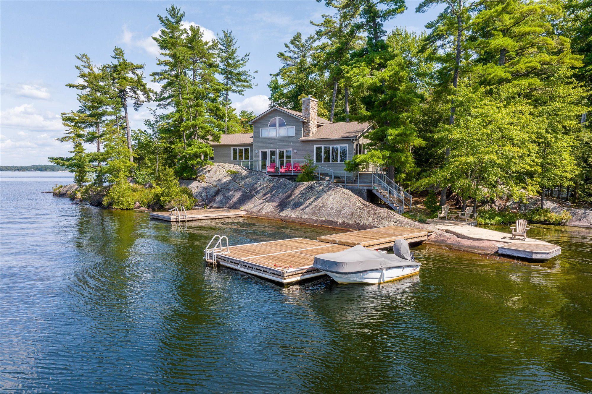 Lower stoney lake. Perched on a magnificent pink granite outcropping close to the water on juniper island's tranquil shores, this beautifully appointed 3 season cottage offers the best of lakeside living. Spectacular property, 11. 4 ac & 1,400+' shoreline -- total privacy with long, uncompromised open lake & island views offering incredible sunsets. Wander through mature forest & follow trails that wind throughout. This turnkey 4 bedroom, 2 bathroom cottage brings the outside in -- large windows, vaulted ceilings & large decks offering a spacious retreat for relaxing & entertaining. Two sided wood burning fireplace adds warmth & charm. Extensive dock system allows you to enjoy prime deep water swimming. Close to stony lake yacht & tennis club, pavilion & seasonal general store offering activities for the entire family. Embrace the opportunity to call this retreat your own & experience the magic of life on stoney lake. Short boat ride from mainland parking. Click "more photos", below, for virtual tour, additional photos and more.