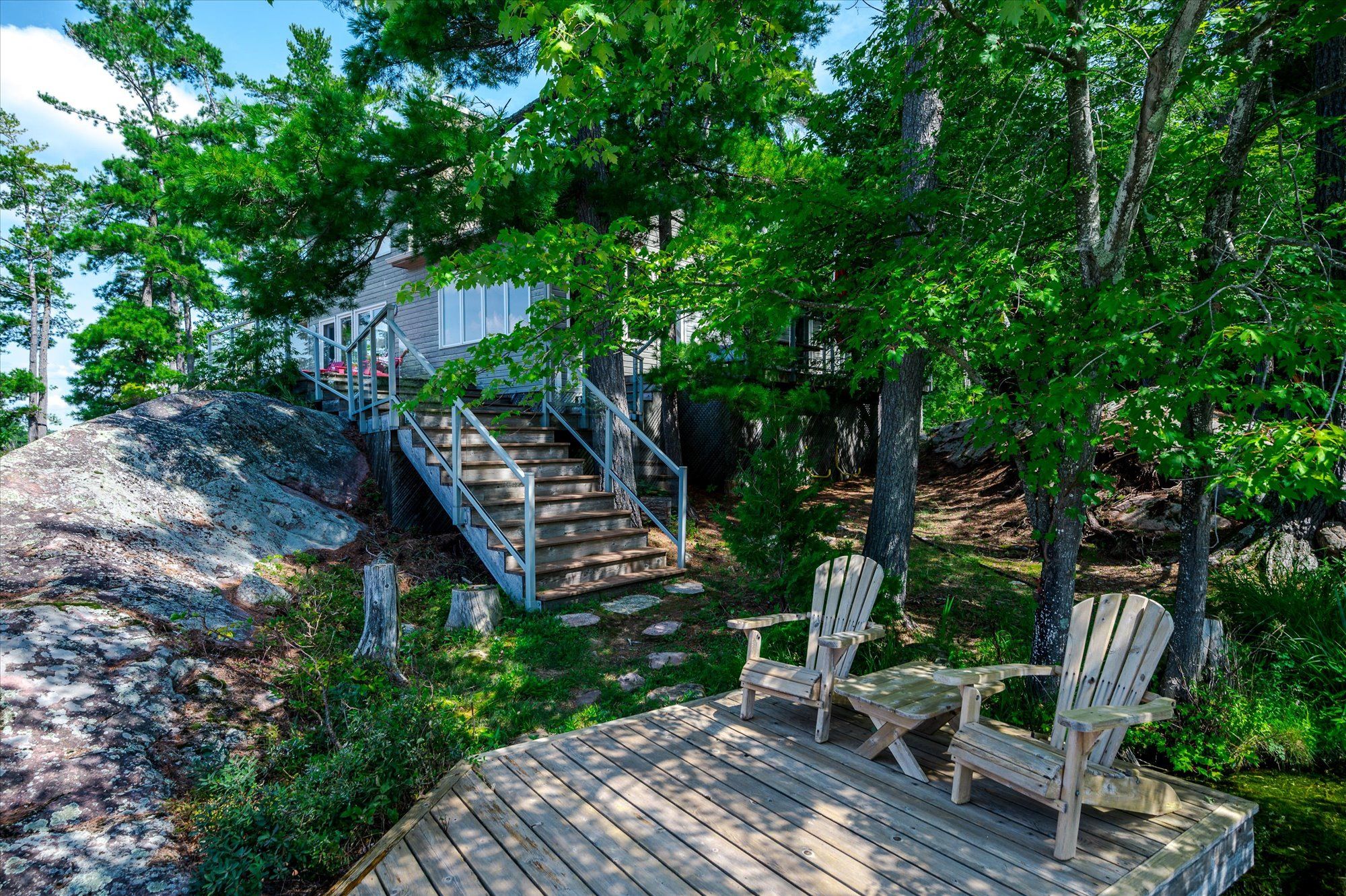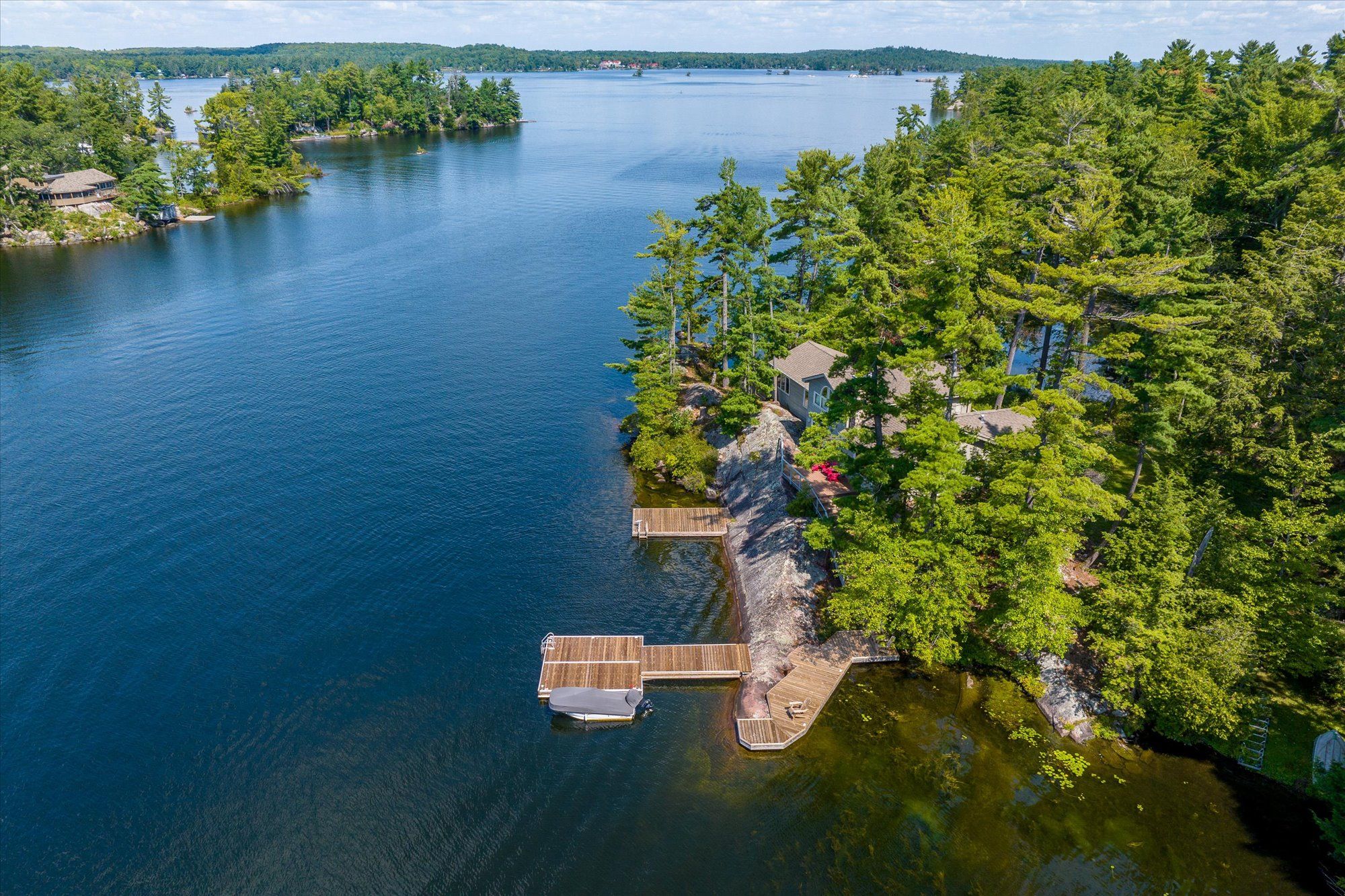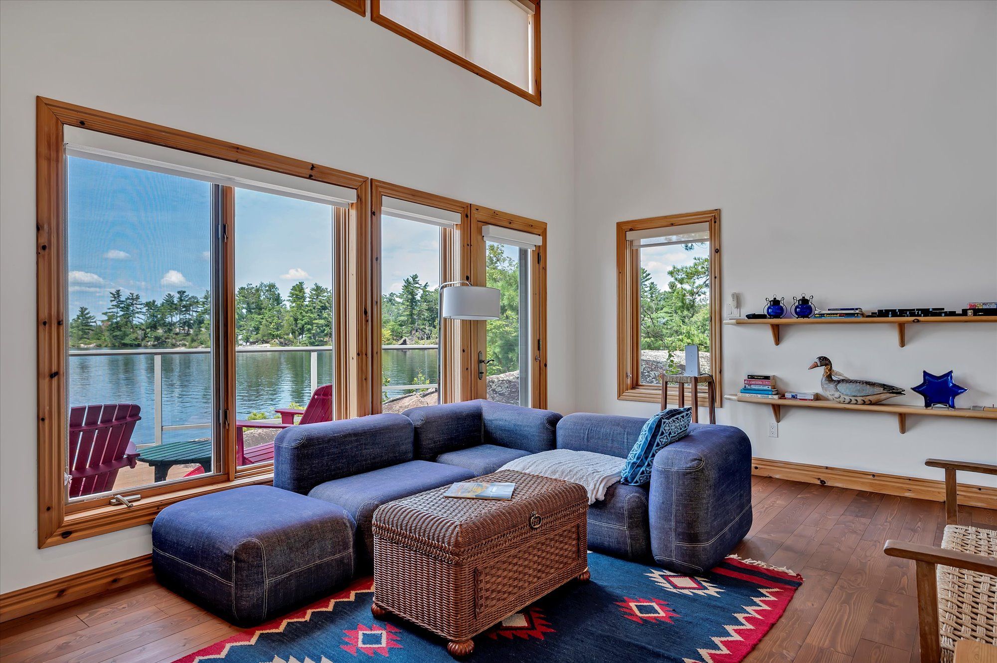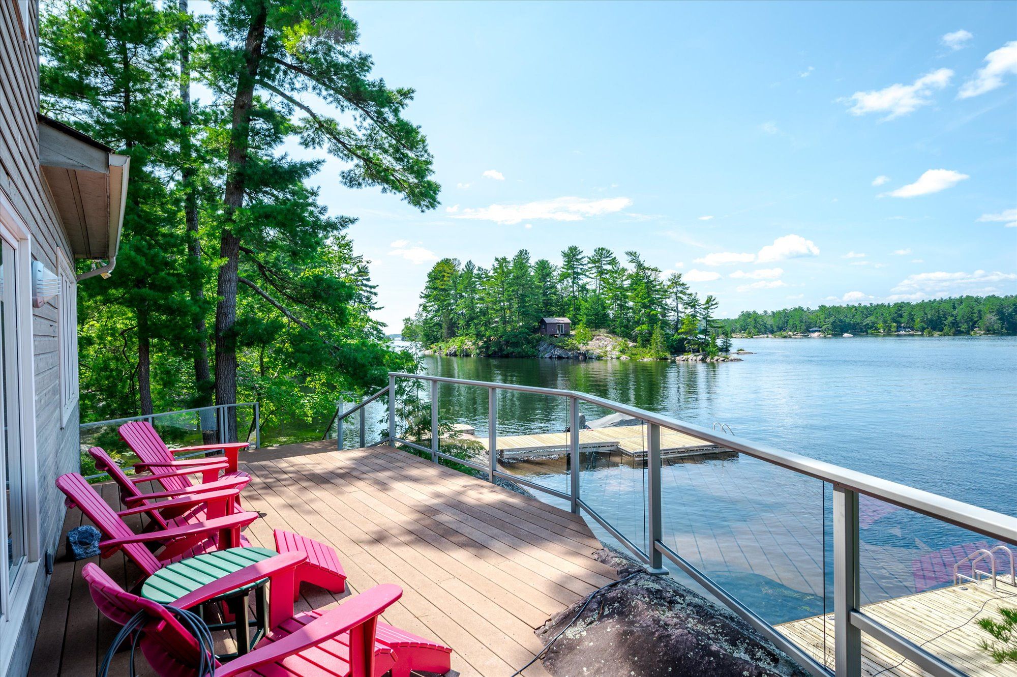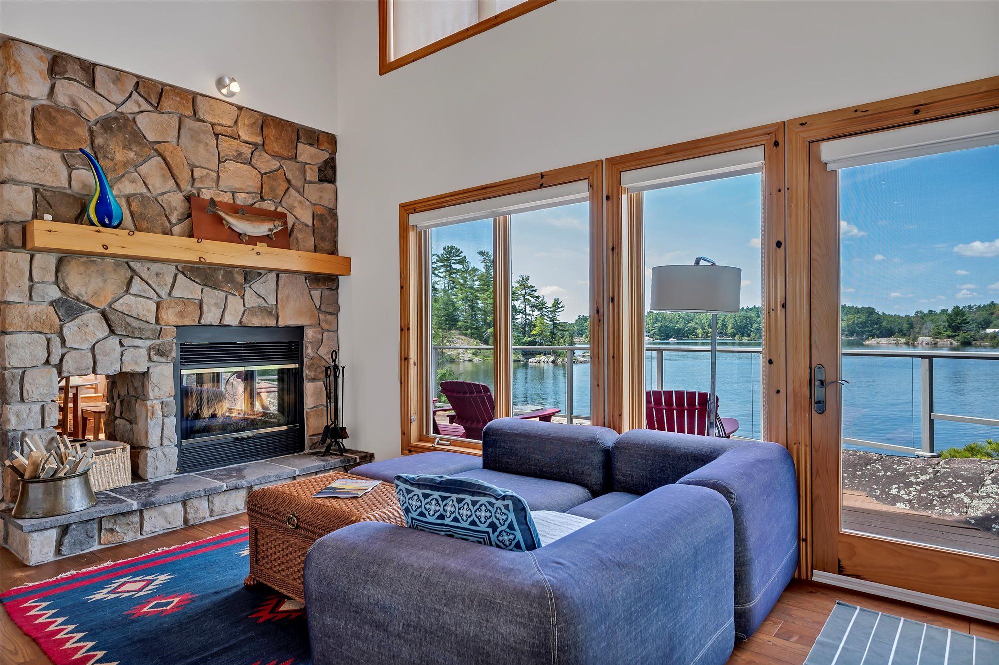 Lower stoney lake. Perched on a magnificent pink granite outcropping close to the water on juniper island's tranquil shores, this beautifully appointed 3 season cottage offers the best of lakeside living. Spectacular property, 11. 4 ac & 1,400+' shoreline -- total privacy with long, uncompromised open lake & island views offering incredible sunsets. Wander through mature forest & follow trails that wind throughout. This turnkey 4 bedroom, 2 bathroom cottage brings the outside in -- large windows, vaulted ceilings & large decks offering a spacious retreat for relaxing & entertaining. Two sided wood burning fireplace adds warmth & charm. Extensive dock system allows you to enjoy prime deep water swimming. Close to stony lake yacht & tennis club, pavilion & seasonal general store offering activities for the entire family. Embrace the opportunity to call this retreat your own & experience the magic of life on stoney lake. Short boat ride from mainland parking. Click "more photos", below, for virtual tour, additional photos and more.