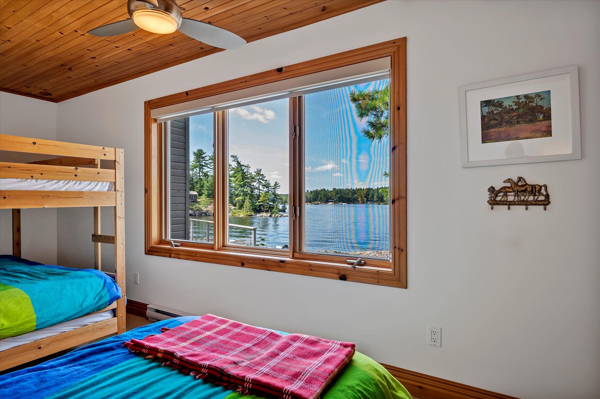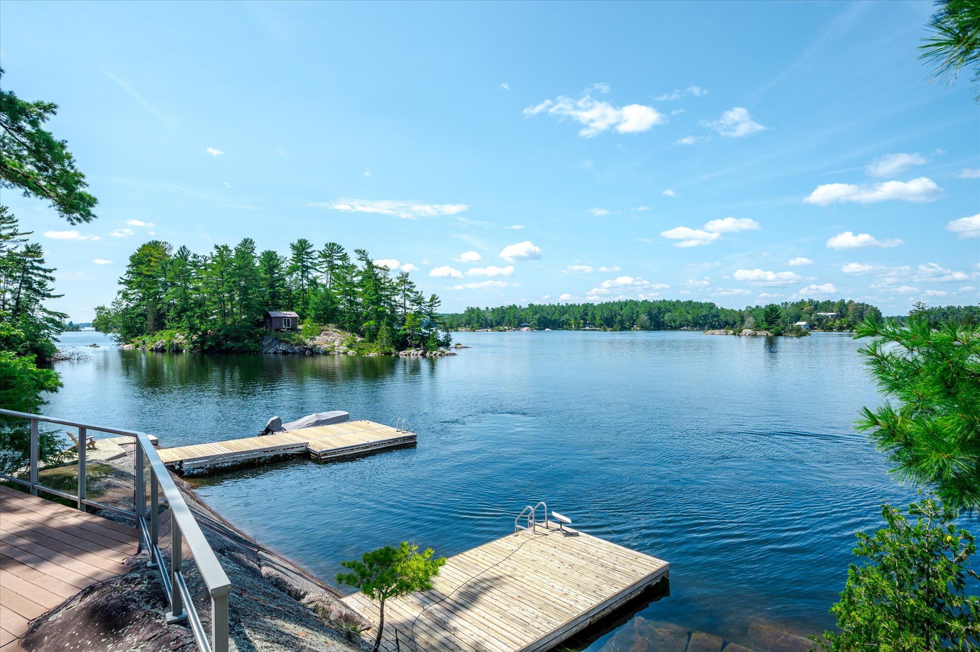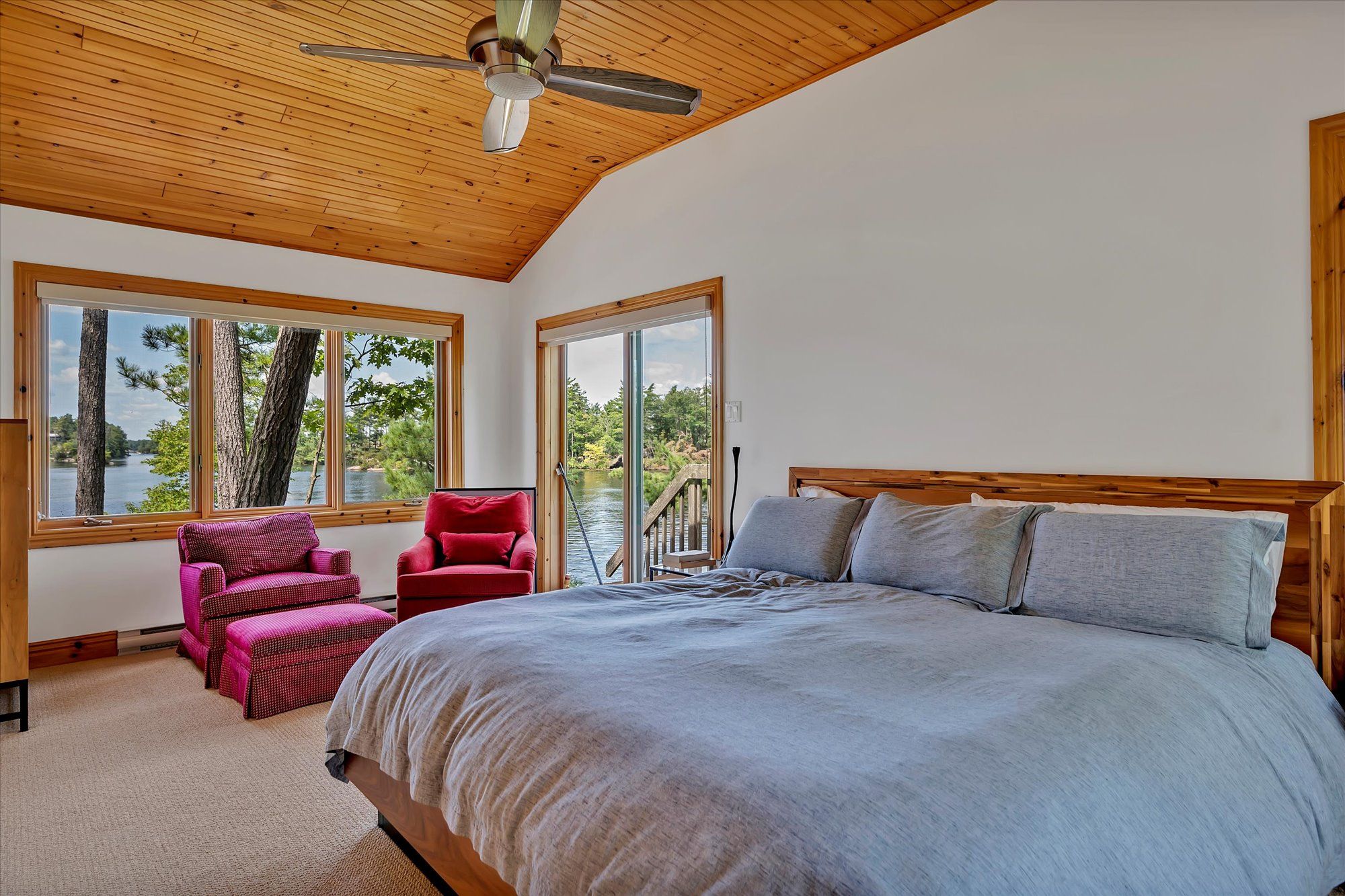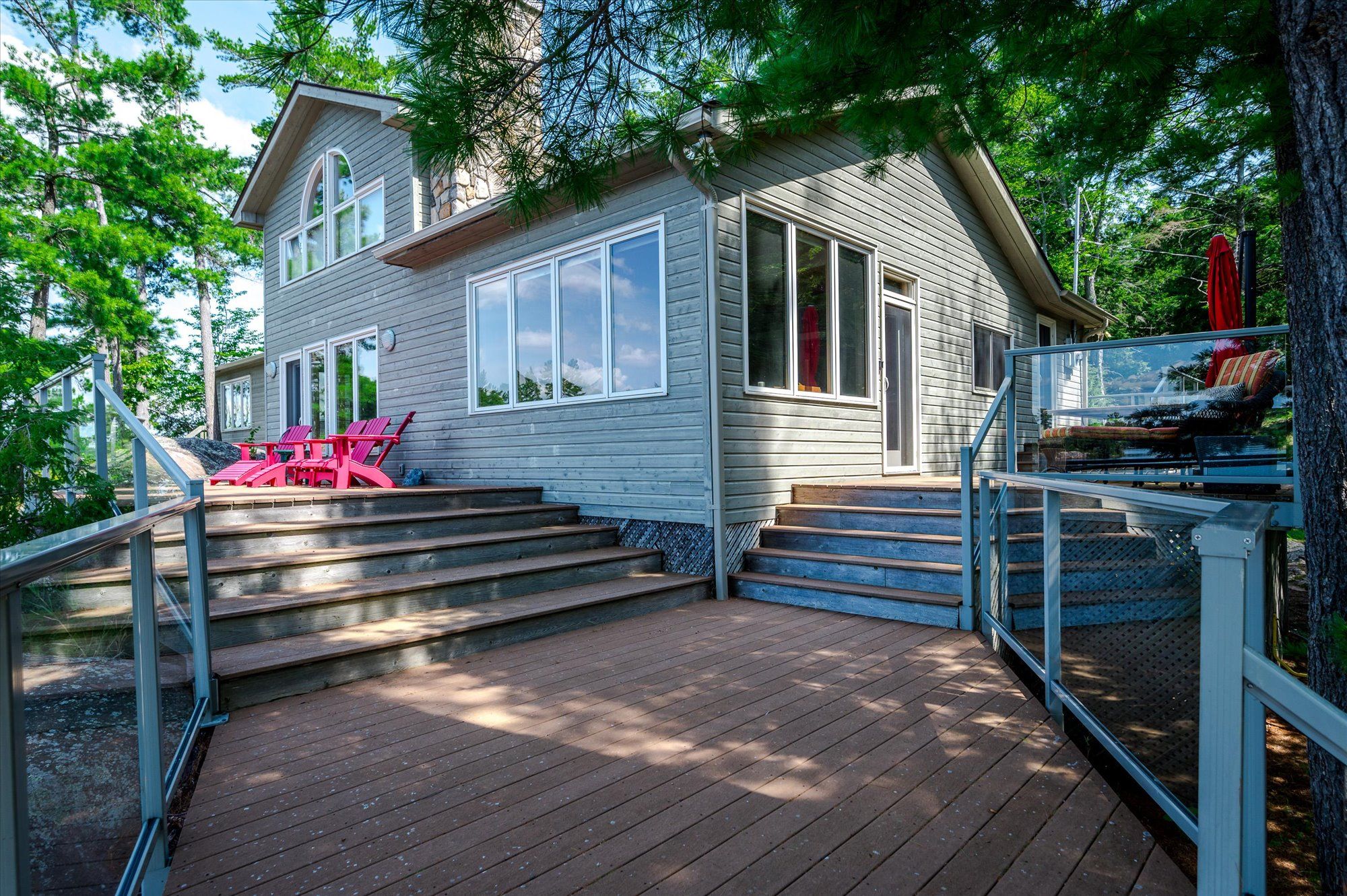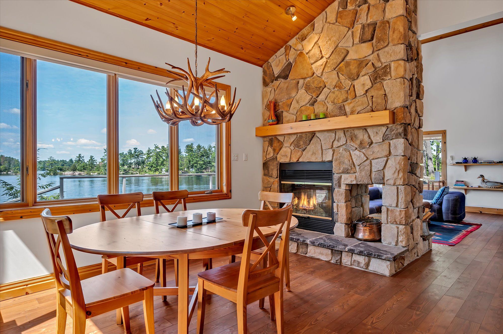 Lower stoney lake. Perched on a magnificent pink granite outcropping close to the water on juniper island's tranquil shores, this beautifully appointed 3 season cottage offers the best of lakeside living. Spectacular property, 11. 4 ac & 1,400+' shoreline -- total privacy with long, uncompromised open lake & island views offering incredible sunsets. Wander through mature forest & follow trails that wind throughout. This turnkey 4 bedroom, 2 bathroom cottage brings the outside in -- large windows, vaulted ceilings & large decks offering a spacious retreat for relaxing & entertaining. Two sided wood burning fireplace adds warmth & charm. Extensive dock system allows you to enjoy prime deep water swimming. Close to stony lake yacht & tennis club, pavilion & seasonal general store offering activities for the entire family. Embrace the opportunity to call this retreat your own & experience the magic of life on stoney lake. Short boat ride from mainland parking. Click "more photos", below, for virtual tour, additional photos and more.