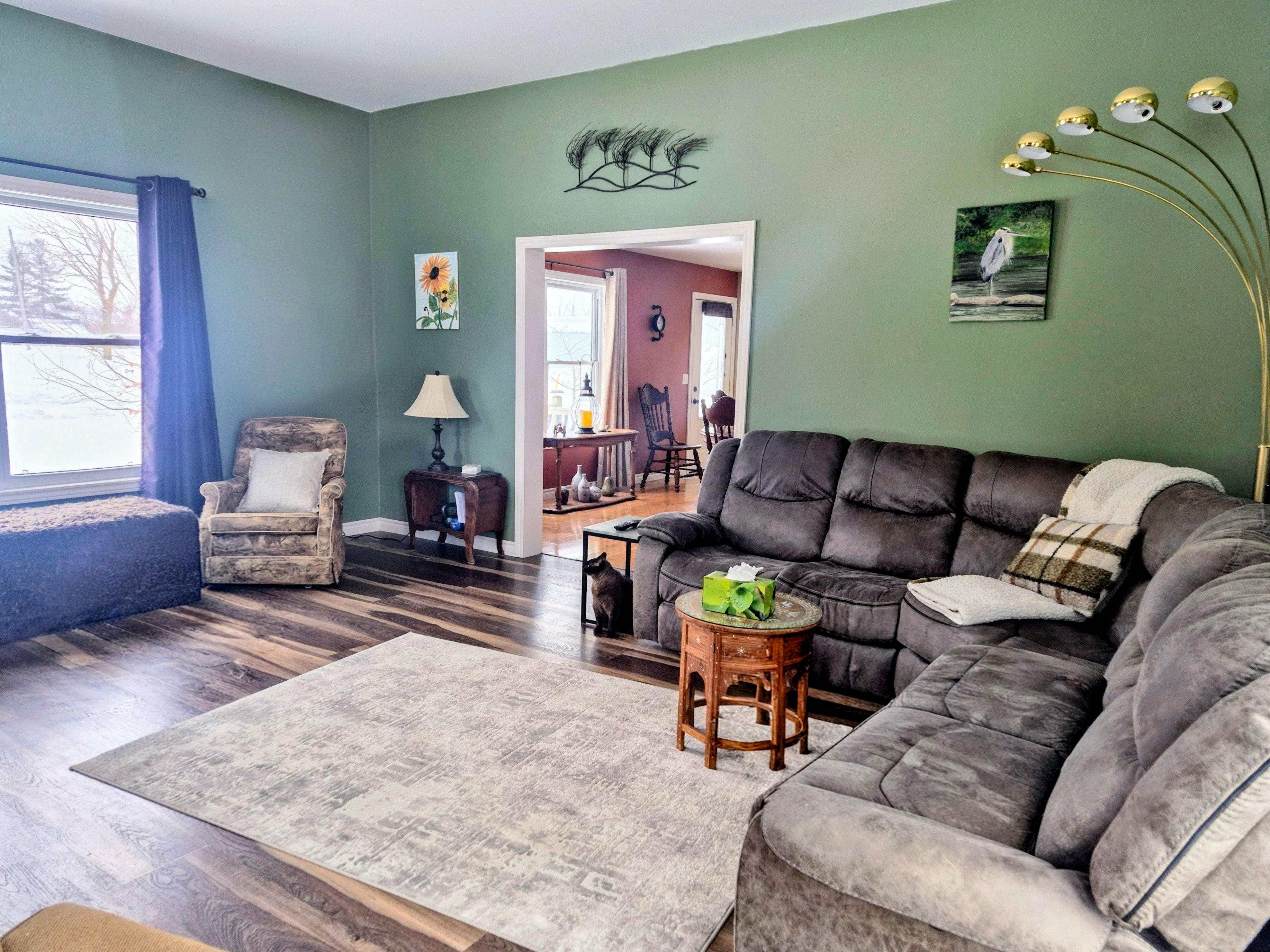 Welcome to this charming four bedroom, two bathroom home, thoughtfully designed with a partially open-concept layout that fills the space with natural light and promotes easy living, all nestled in a quiet area. The main floor living offers three bedrooms, a full bathroom and convenient main-floor laundry for added practicality. The spacious interior flows seamlessly into a large, beautifully landscaped yard - perfect for entertaining, family gatherings or simply enjoying peaceful outdoor relaxation. The basement expands your living space with a generous family room, a large bedroom, and a spacious bathroom. You'll also find a cold room and workshop, ideal for storage and hobbies. In addition, the property features a massive three-car garage/shop with 16 foot ceilings, and an 8' x 49' mezzanine with convenient stair access. The over-sized garage has been thoughtfully designed to accommodate the future installation of car lifts, perfect for the automotive enthusiasts. This home is perfectly situated, surrounded with both walking trails and access to the rail trail, as well as nearby snowmobile trails. A hardware store is conveniently located just across the road, with sidewalk access leading straight to the main street. A dental office and doctor's office are also just one block away, making everyday errands and appointments incredibly accessible. This home is one you don't want to miss. Come see us today!