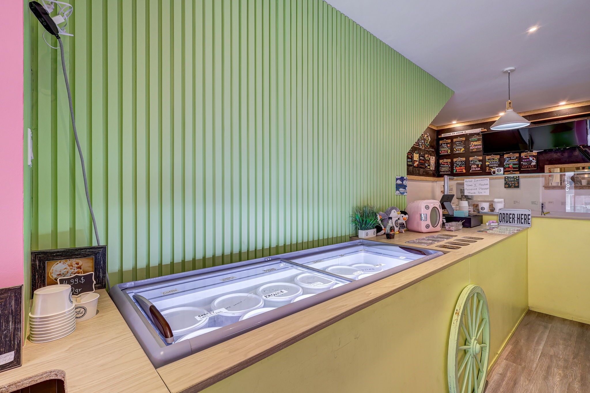 • Diverse menu offering rolled ice cream, milkshakes, snacks, and more.