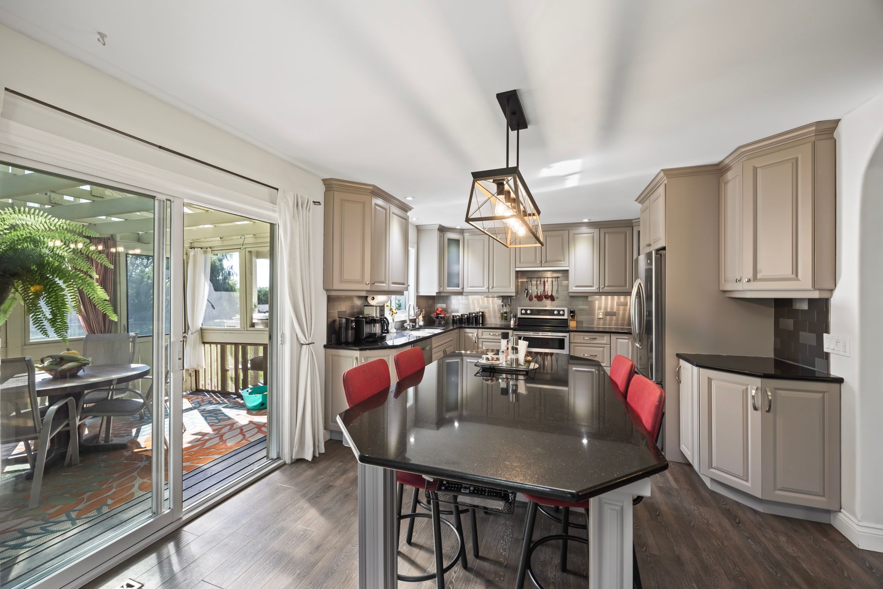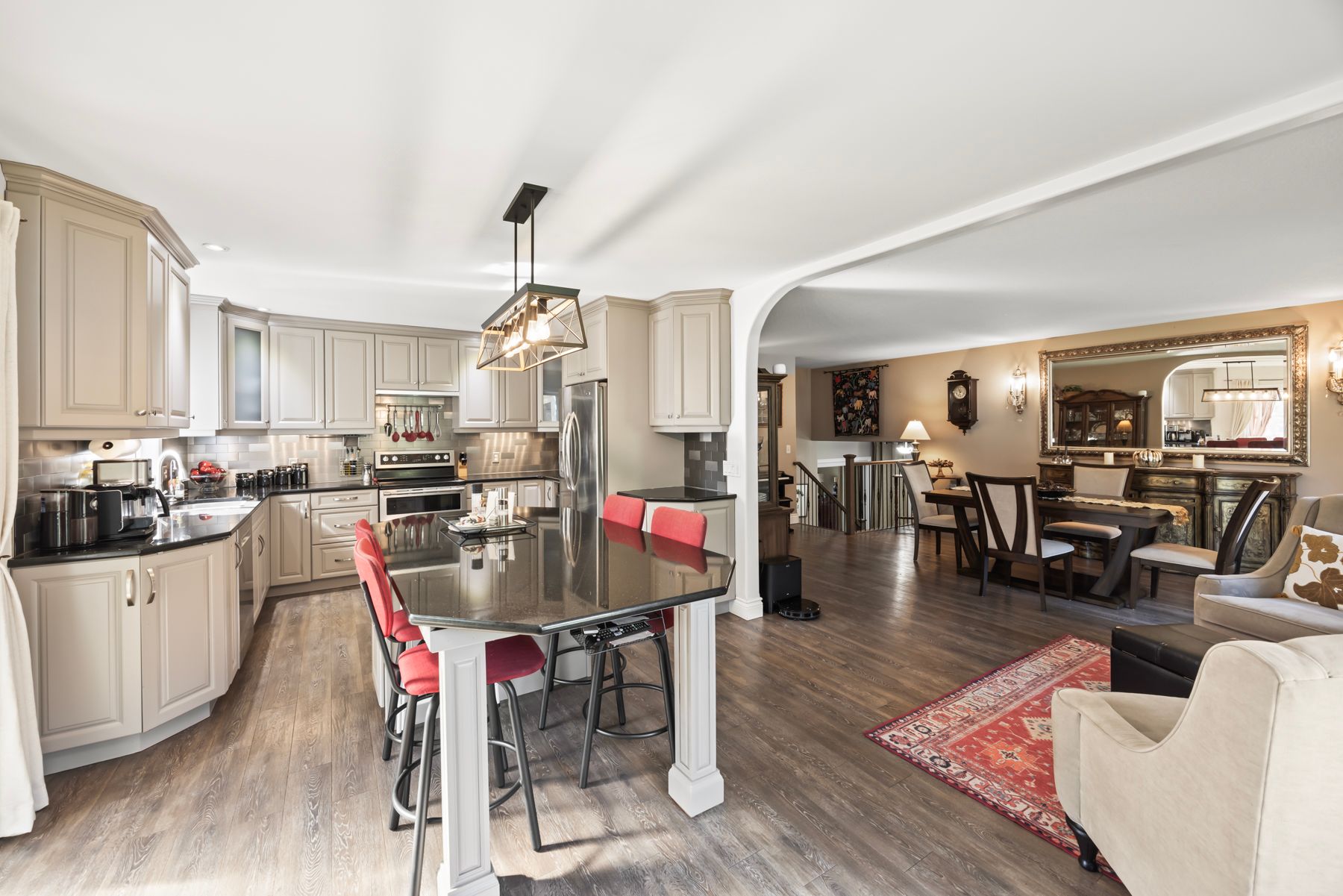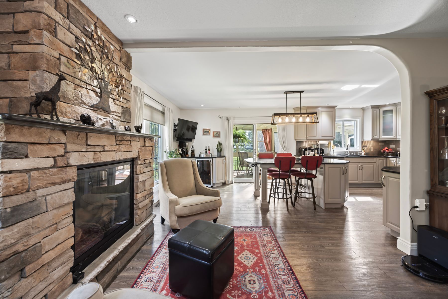 • Bright, open-concept layout with a custom kitchen and centre island.