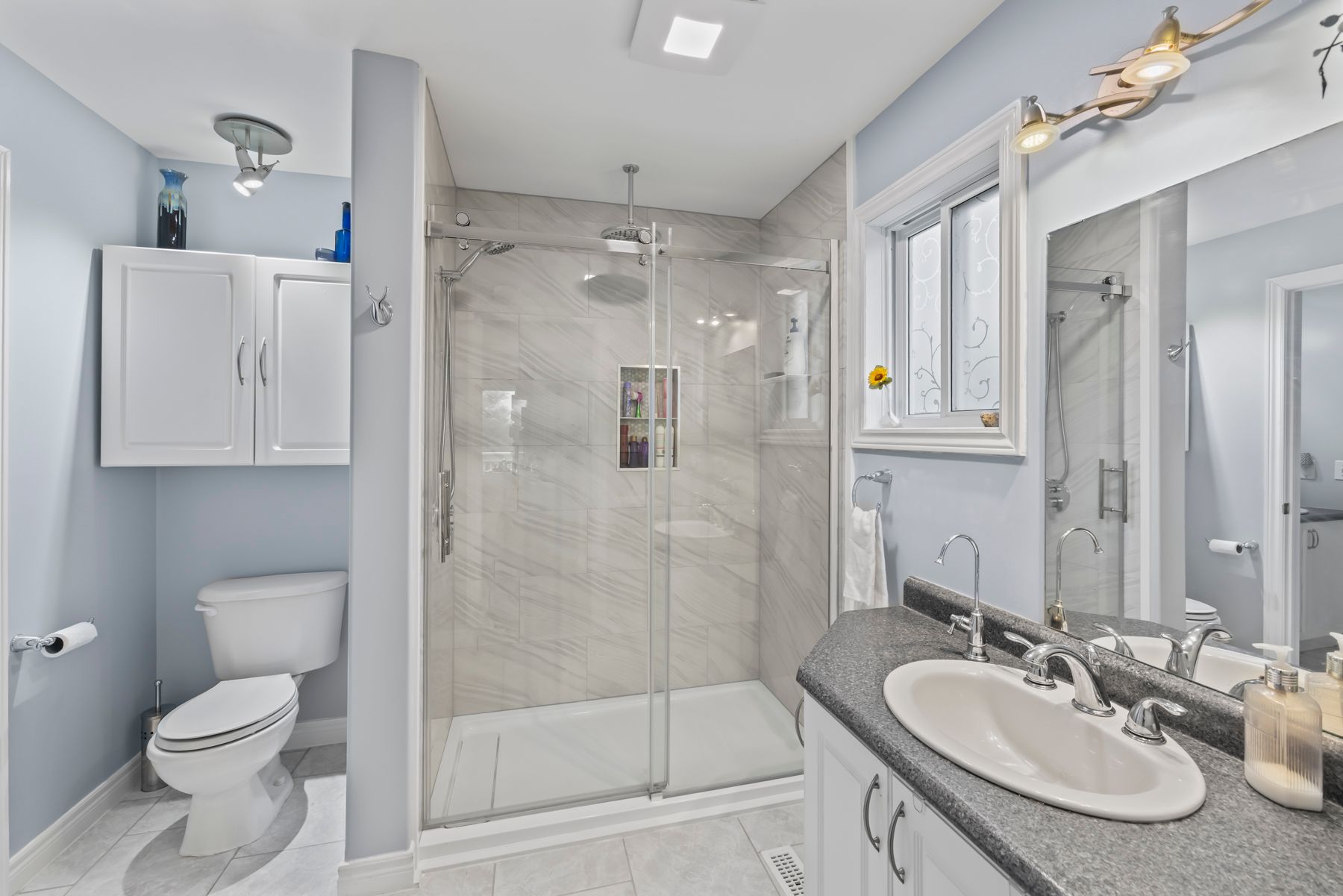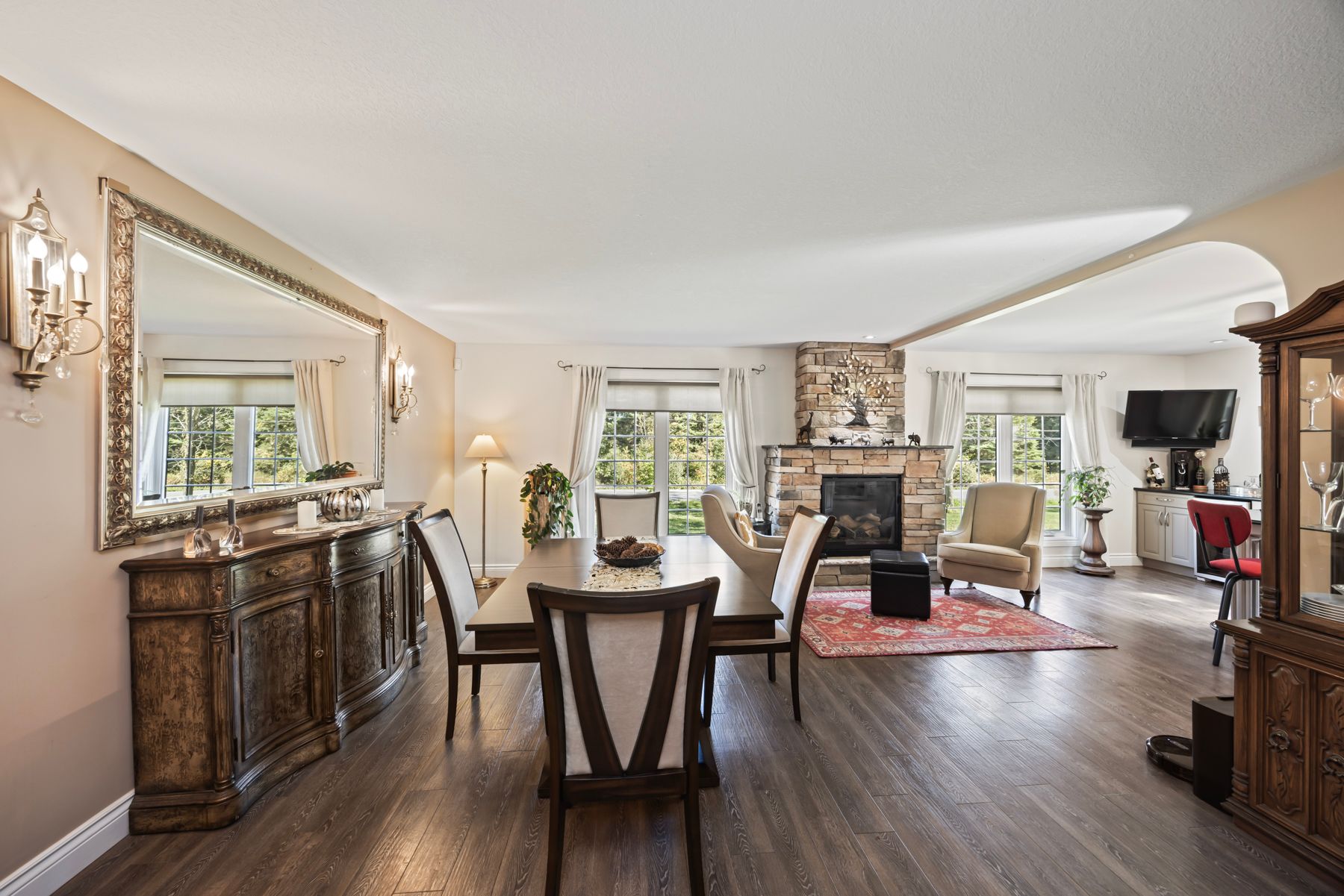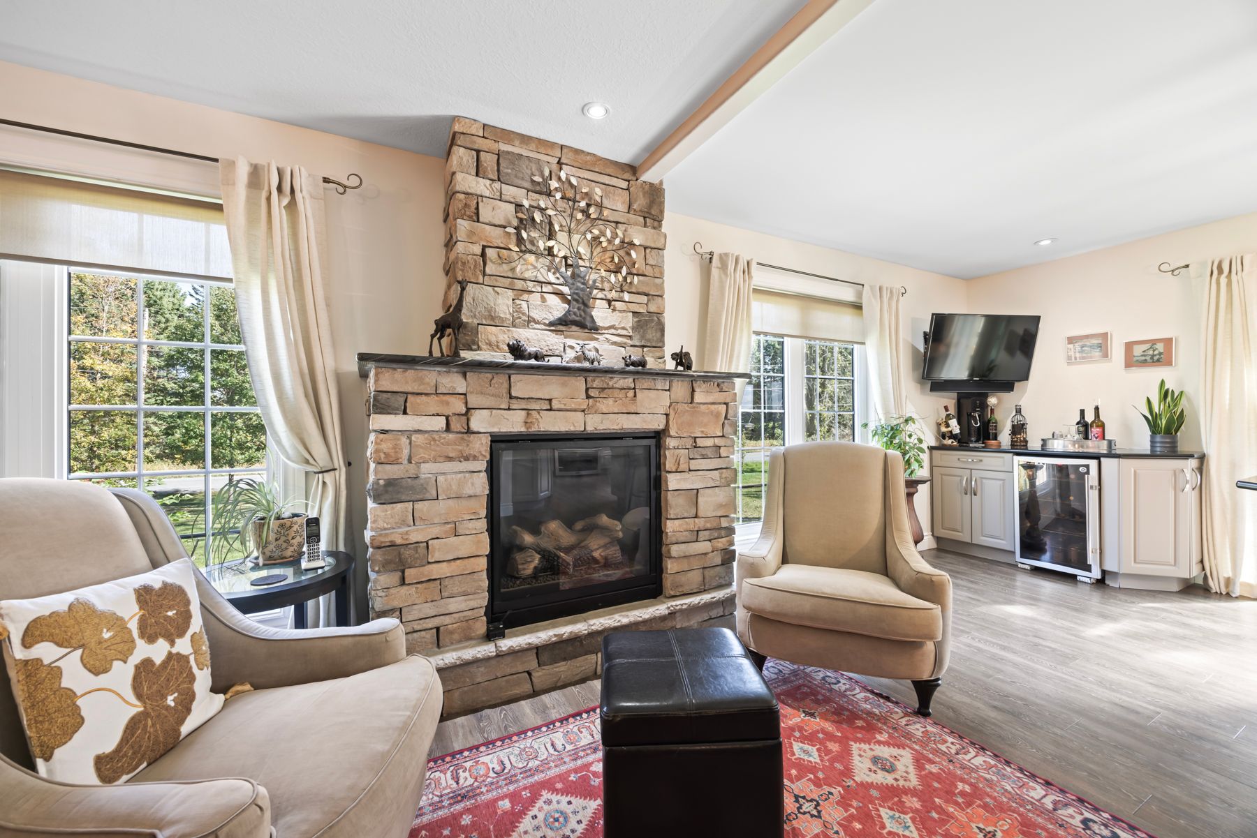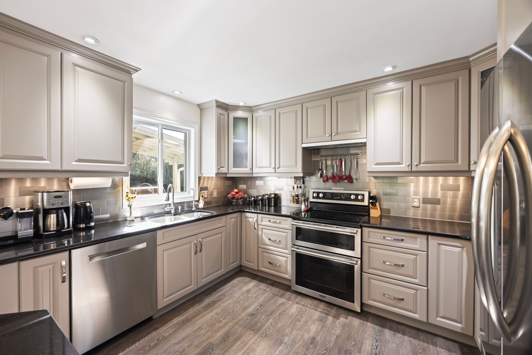 • Bright, open-concept layout with a custom kitchen and centre island.
