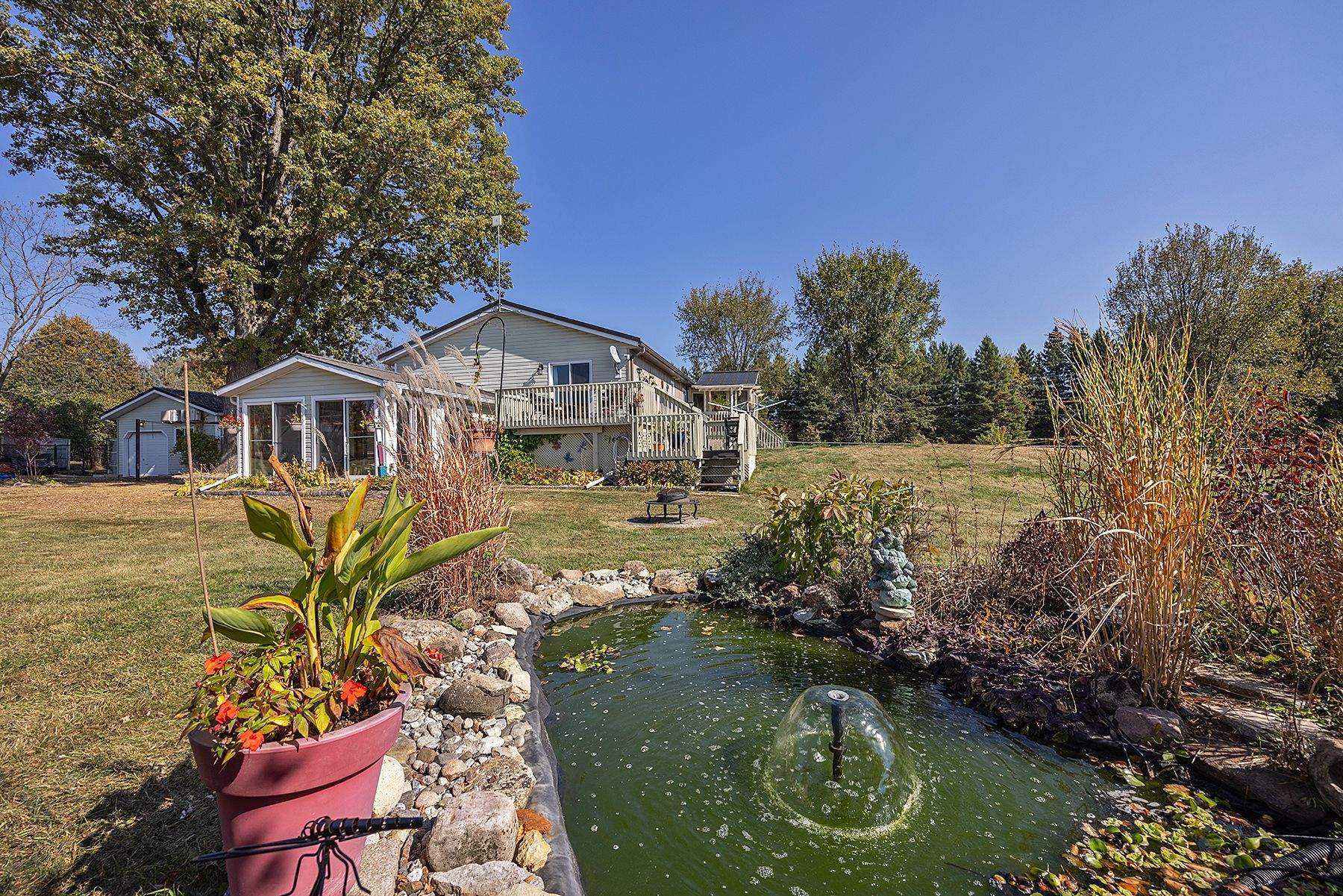 Subtype DetachedIndoor Features Auto Garage Door Remote, Bar Fridge, ERV/HRV, Generator - Full, In-Law Capability, Sewage Pump, Storage, Sump Pump, Water Heater Owned, Water Purifier, Water Softener, Water TreatmentOutdoor Features Deck, Landscaped, Lighting, Patio, Porch EnclosedAmenities Fenced Yard, Lake/Pond, LevelOwnership FreeholdViews Meadow, Panoramic, Trees/WoodsBasement Finished with Walk-Out, Separate EntranceFoundation Concrete BlockHeating / Cooling Forced AirHeating Fuel PropaneSewer Septic