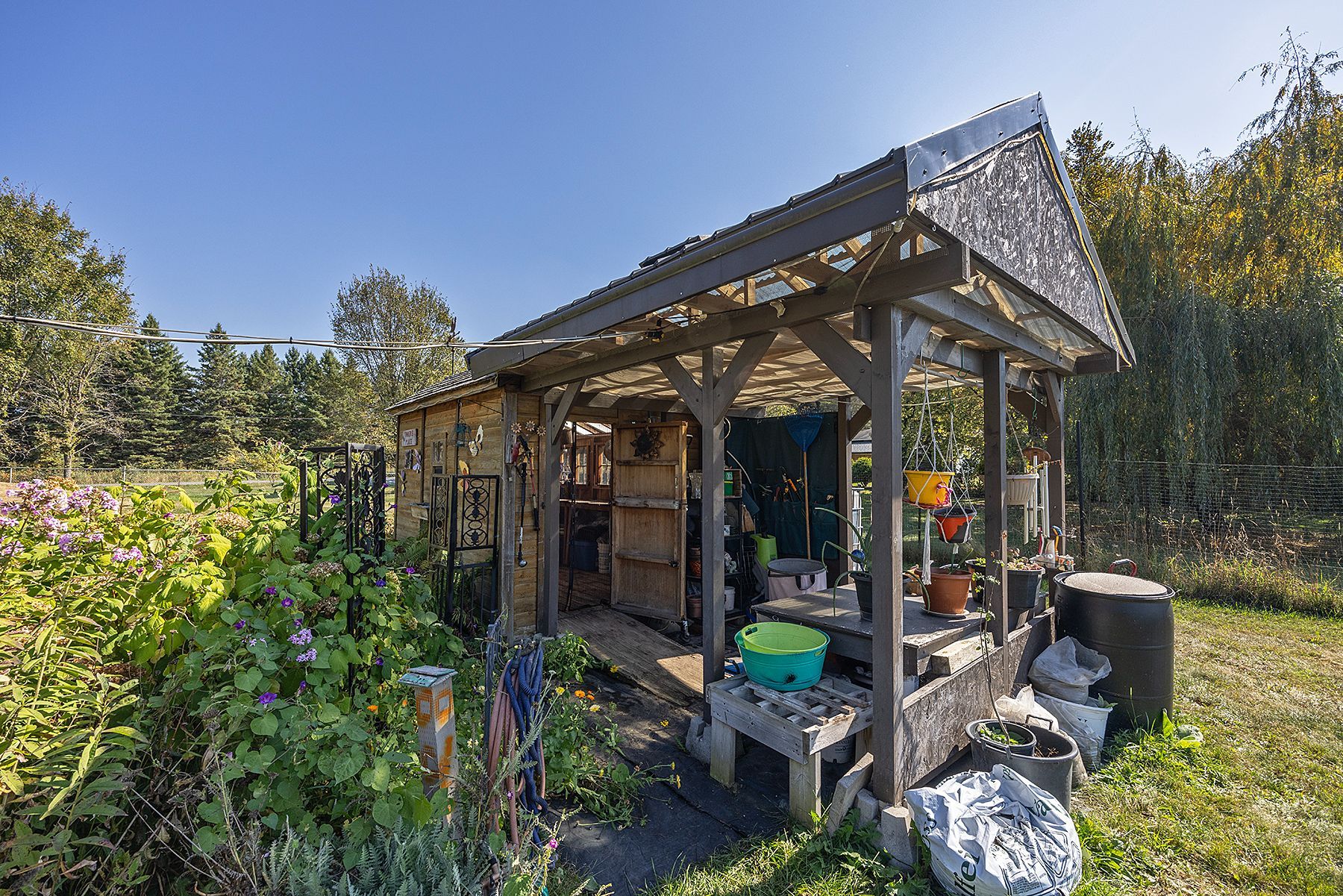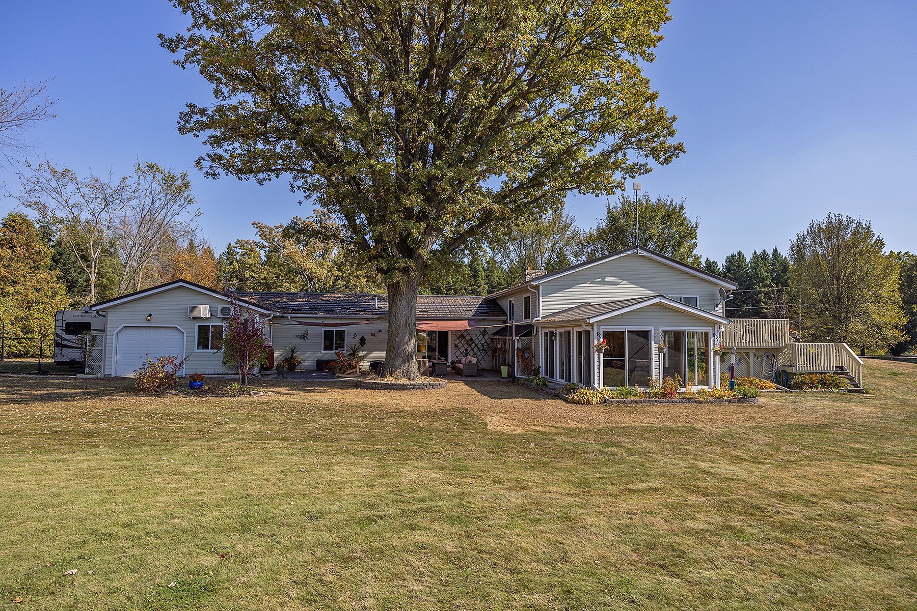 Welcome to 4841 wolfe swamp road-a stunning 4-bedroom, 3-bathroom bungalow set on a picturesque 1. 56-acre double lot just minutes north of kingston. This exceptional property blends refined finishes with the tranquility of country living, featuring an impressive 3+ car garage with drive-through access, a climate-controlled workshop, and excellent potential for an in-law suite or multi-generational setup. Inside, a bright, open-concept layout showcases pride of ownership throughout. The custom kitchen is the heart of the home, complete with a large centre island, built-in beverage bar, and seamless access to a sun-filled, south-facing enclosed deck-perfect for morning coffee or effortless entertaining. Two spacious living areas offer flexibility for any lifestyle, including a welcoming formal living room and a cozy family room with pellet stove and walkout to a sail-covered patio for warm summer evenings. The fully finished lower level is ideal for guests or extended family, offering a generous bedroom, full bathroom, and a large rec room with murphy bed for added versatility. A dedicated sunroom is roughed in for a future hot tub, providing a private retreat in every season. Outdoors, the property truly shines with beautifully maintained gardens, a planting shed, a children's play area, fenced space for pets, and a concrete pad ready for your rv or boat. Additional features include available bell fibe, a fully automatic13kw cummins generator, central air, and mature trees-highlighted by a magnificent oak that anchors the landscape. A rare offering that delivers space, flexibility, and lifestyle-just a short drive to the city.