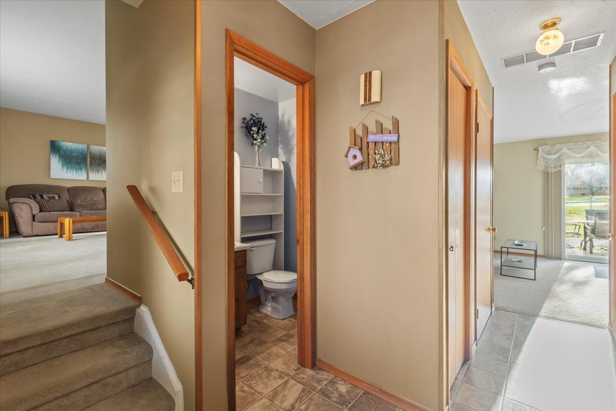 Welcoming home and neighborhood close to amenities. This beautifully maintained one-owner home features a perfect layout for family gatherings and entertaining friends. As you step inside, you'll appreciate the spacious main level with welcoming foyer, bright living room, dining area, and kitchen equipped with an appliance package, a convenient 2-piece bathroom and a comfortable family room with a cozy gas fireplace leading out to a deck and backyard through patio doors. The upper level showcases three spacious bedrooms and a generously sized bathroom. The unfinished lower level offers ample space for storage, a workshop, or whatever you envision. Additionally, updates have been made in recent years, including a new roof, a forced air furnace, an on-demand hot water heater, reverse osmosis system, water softener, and a garage door opener for the attached garage. This property is truly a prime find for any family and is move-in ready before christmas!