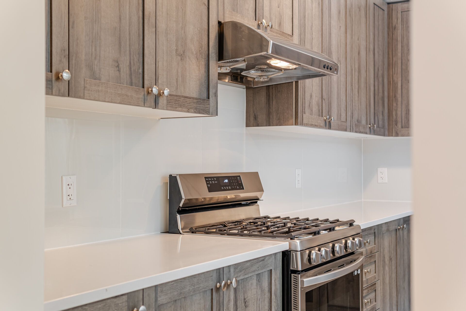• Upgraded kitchen with quartz countertops and stainless steel appliances.