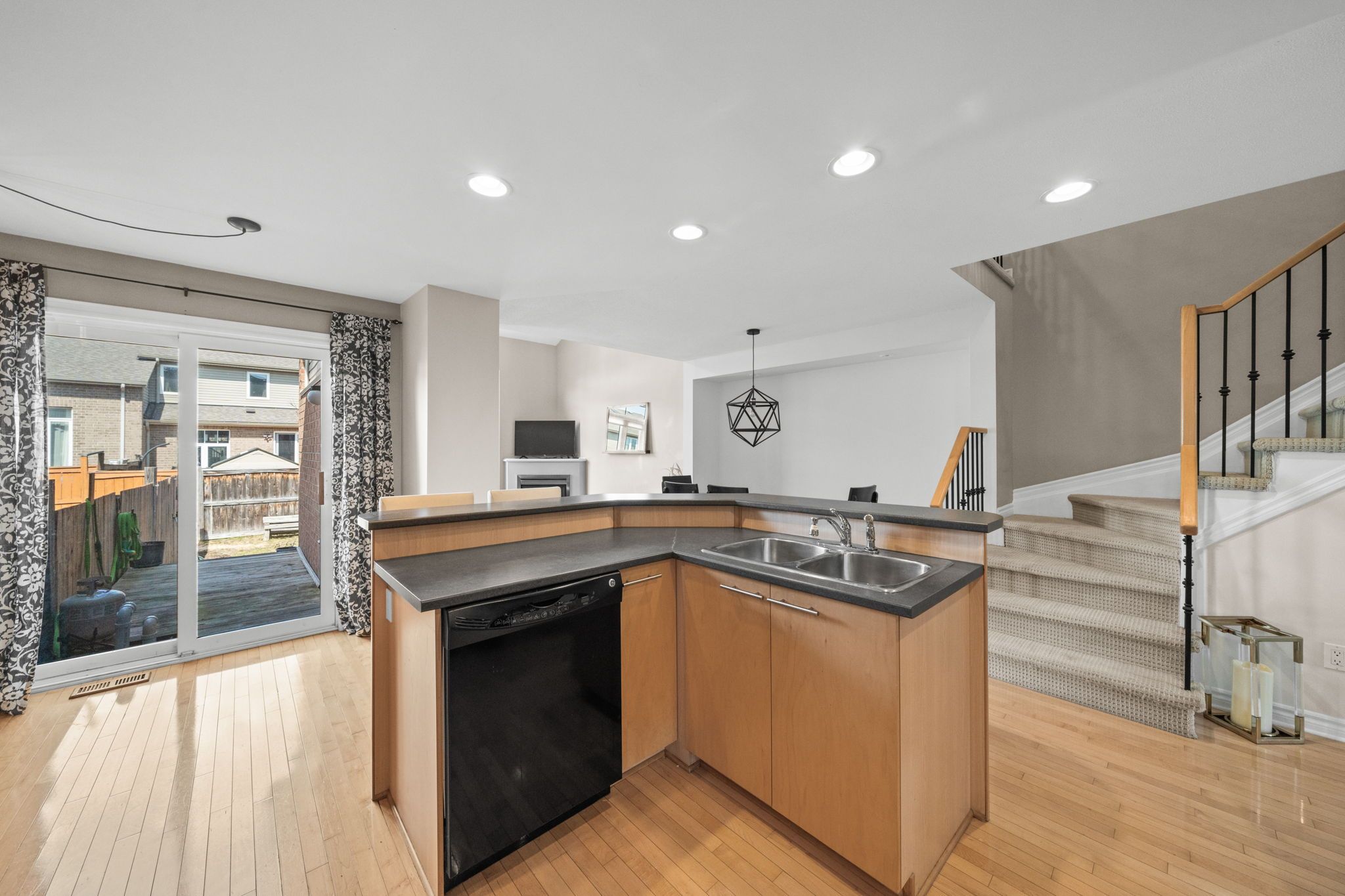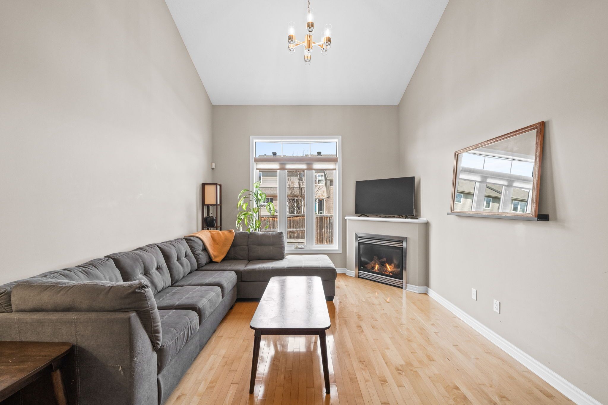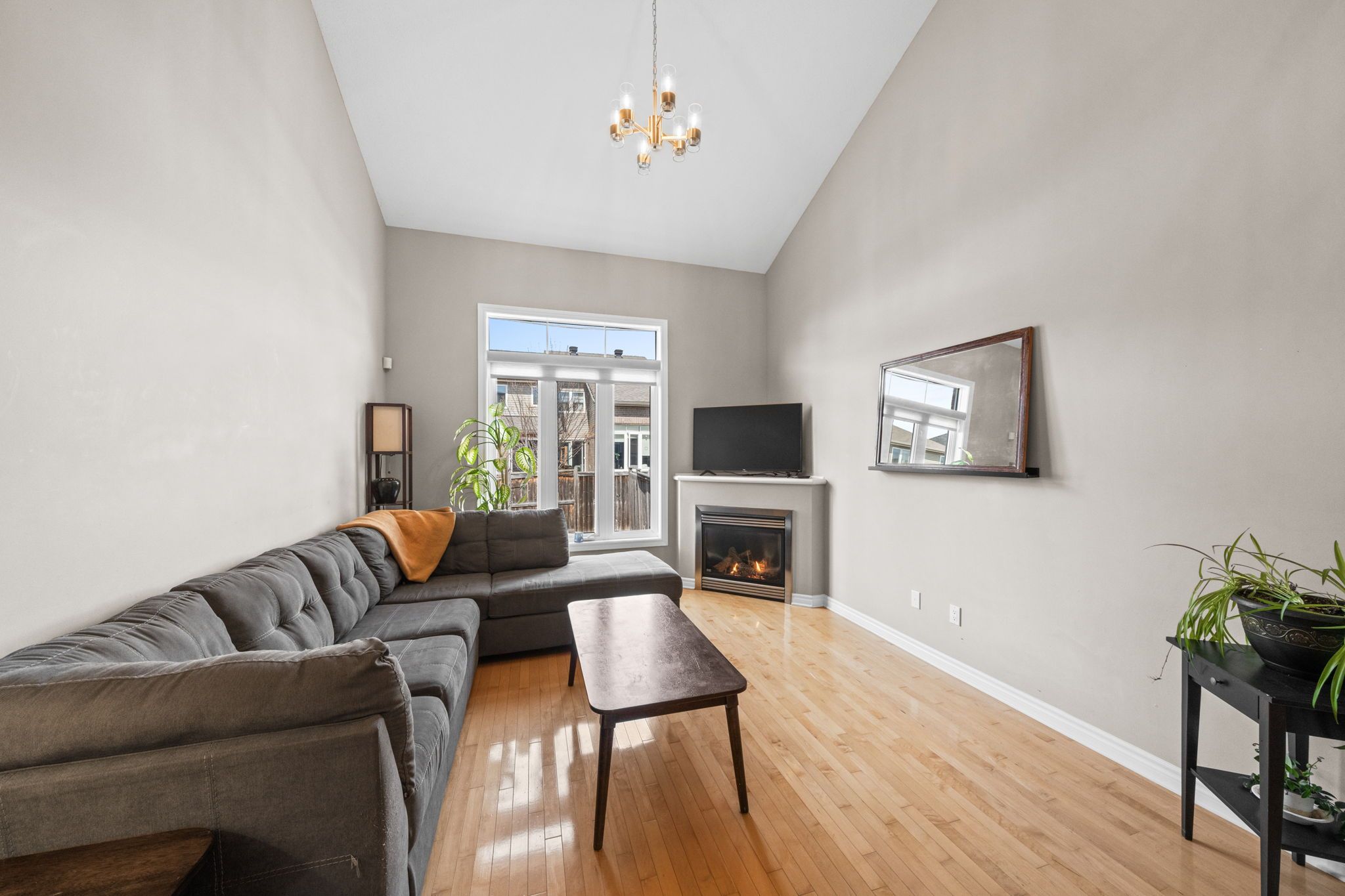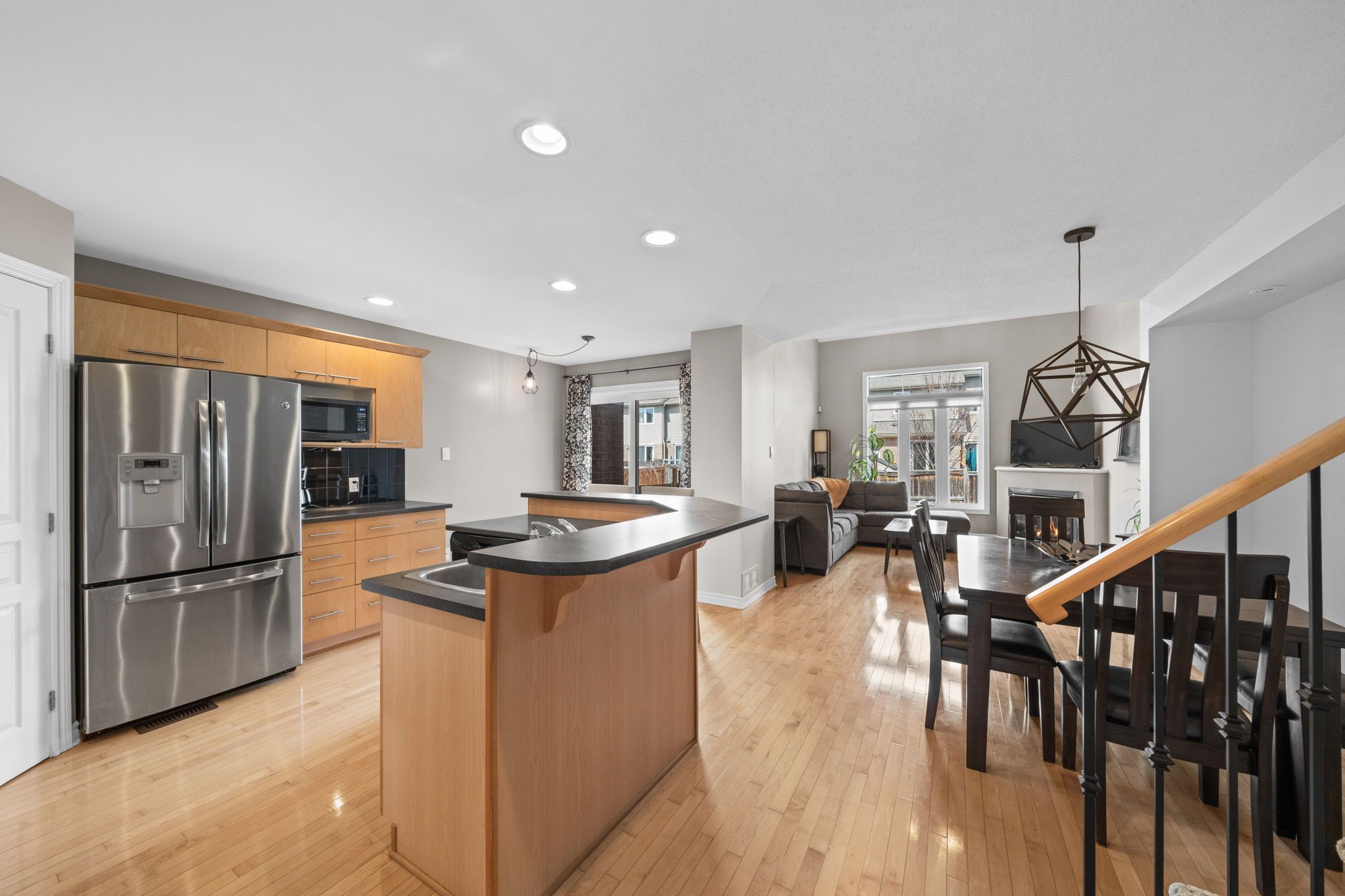 • Open-concept main level filled with natural light and features a gas fireplace.