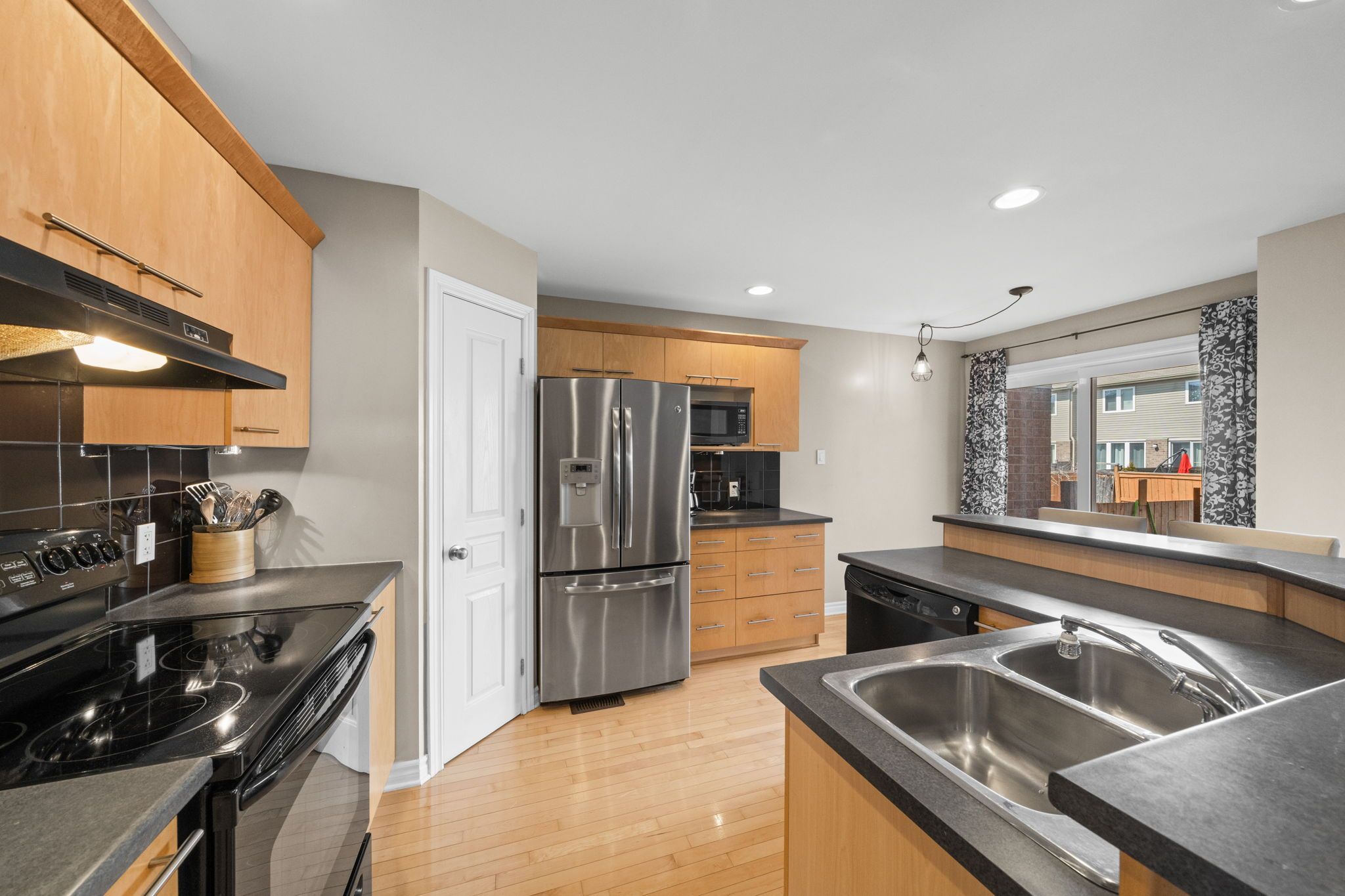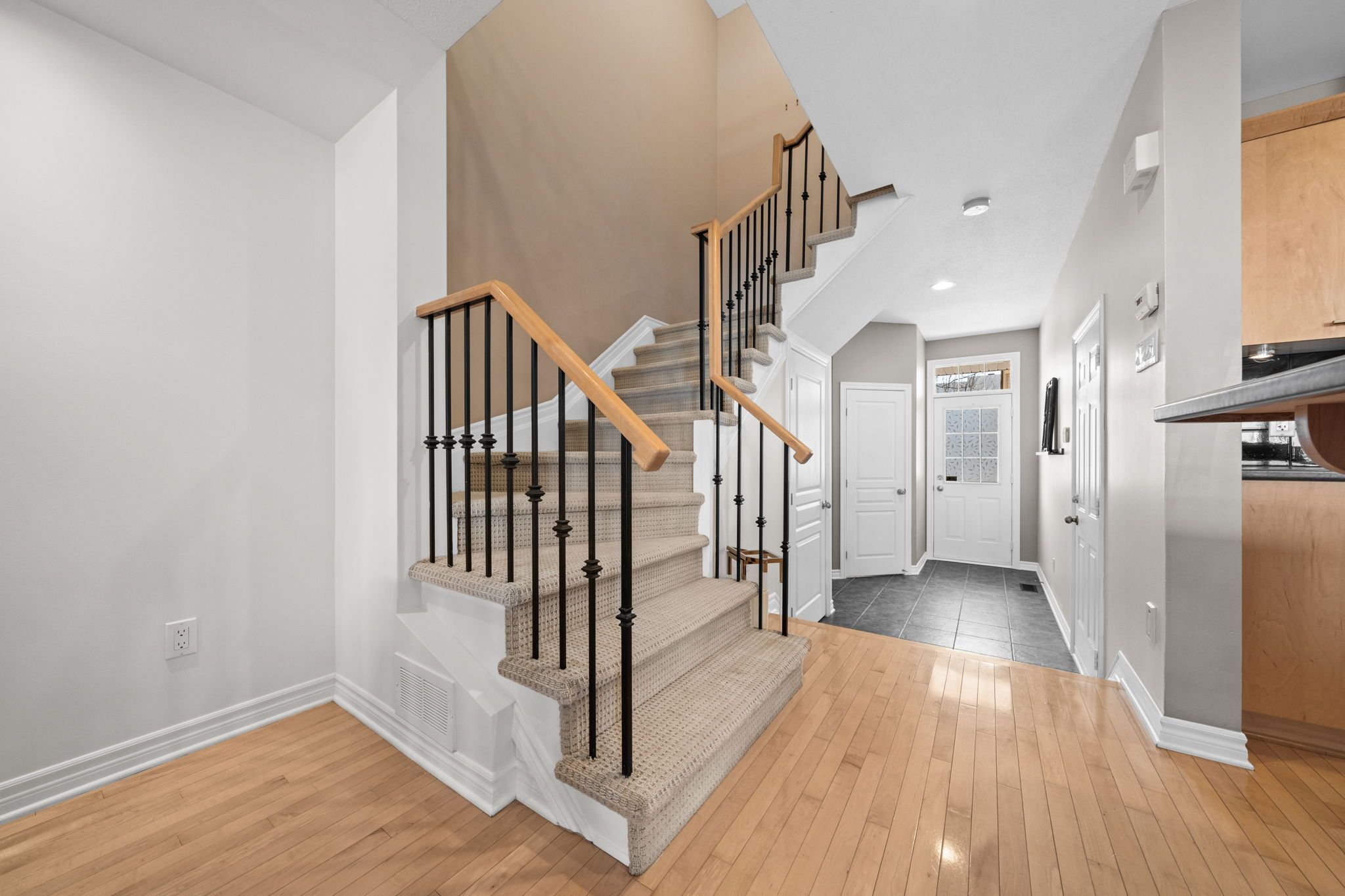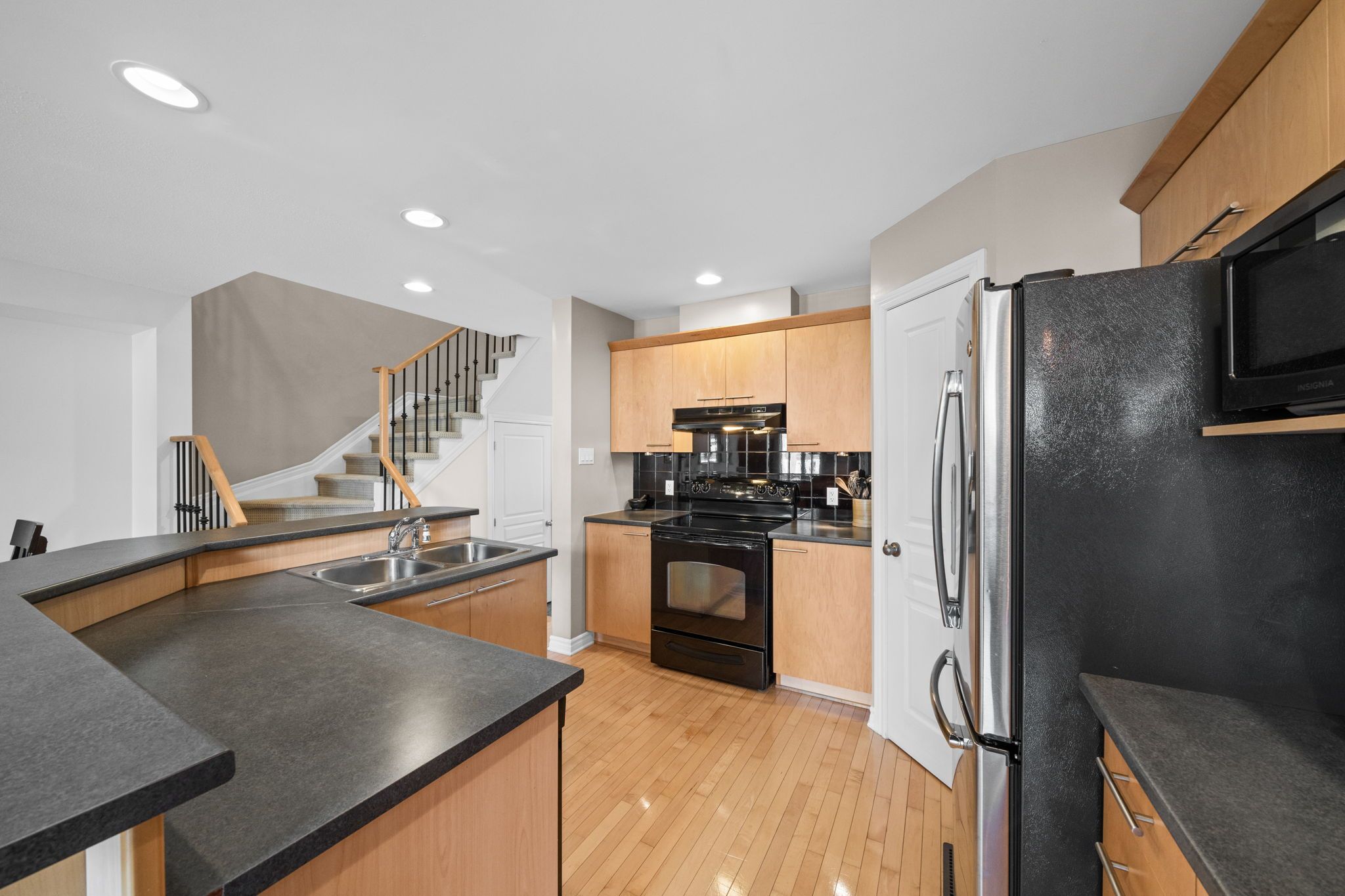 Beautifully maintained townhome in the heart of riverside south, offering 2 bedrooms + loft, 3 bathrooms, and a fully finished lower level. Step inside to a welcoming tiled foyer with a convenient powder room and direct access to the garage. The open-concept main level is filled with natural light from the large window and features beautiful maple hardwood flooring, a spacious living room with a 2 storey soaring ceiling, gas fireplace, and a dedicated dining area perfect for entertaining. The home has been freshly painted, giving it a clean, updated feel. The kitchen is thoughtfully designed with solid maple cabinetry, stainless steel appliances, a pantry, breakfast bar, and under-mount lighting, offering both style and function. Upstairs you'll find a spacious landing that opens to a large, bright and versatile loft space, ideal for a home office and overlooking the living room. The large and bright primary bedroom features a walk-in closet. A second well-sized bedroom and a luxurious main bathroom with a walk-in glass shower and a deep soaker tub complete the second floor. The finished lower level features a generous recreation room (currently being used as a bedroom) with pot lights and a large window, a modern 2-piece bathroom, and plenty of storage space. Additional highlights include berber carpeting with premium underpad, wrought-iron staircase spindles, and updated lighting throughout. Enjoy low-maintenance living just steps from parks, schools, walking trails, shopping, and public transit. This is a move-in ready opportunity in a fantastic, family-oriented community. Perfect for first-time buyers, downsizers, or families looking to enjoy a turnkey property in one of ottawa's most desirable neighbourhoods.