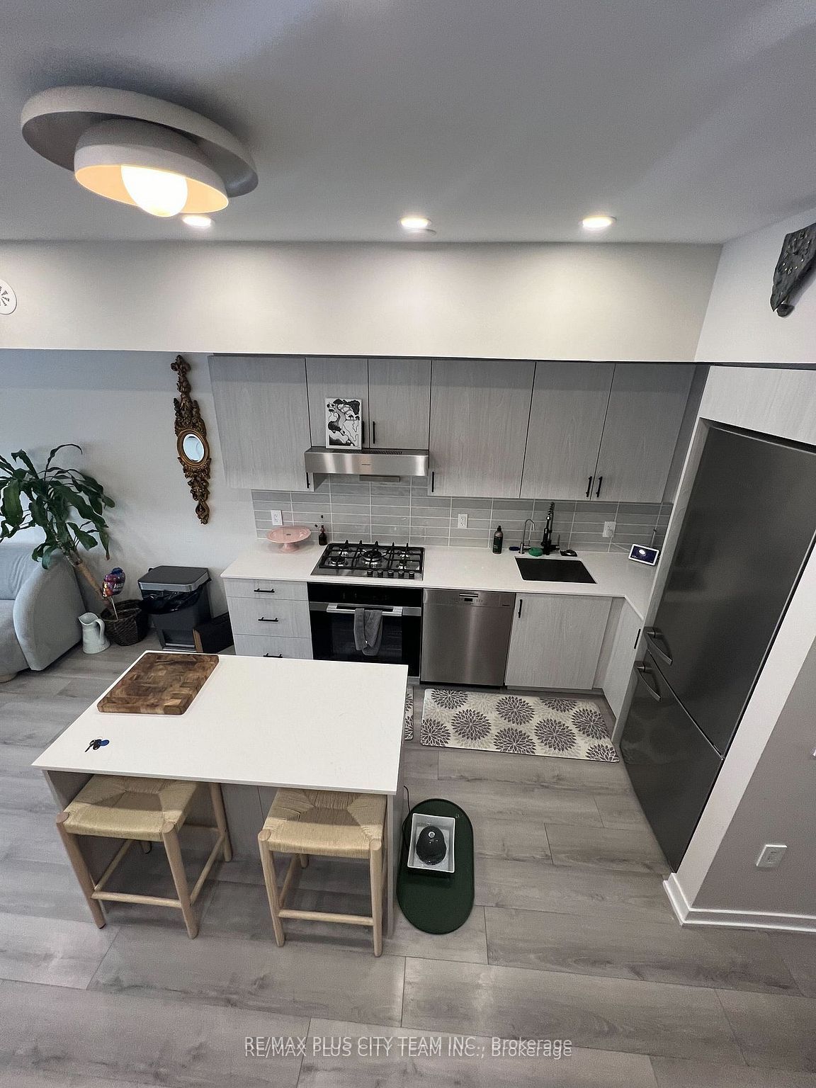 Bright and spacious 2+1 bedroom, 3-bathroom townhouse offering modern design and exceptional outdoor space. This thoughtfully laid-out home features an open-concept living and dining area with sleek laminate flooring throughout and striking floor-to-ceiling industrial-style windows that fill the space with natural light. The contemporary kitchen flows seamlessly into the main living area with direct access to a private balcony, perfect for morning coffee or evening relaxation. A standout feature is the expansive rooftop terrace, ideal for entertaining, lounging, or enjoying open city views. Additional outdoor access from both the living room and primary bedroom enhances the indoor-outdoor lifestyle. The versatile +1 space provides flexibility for a home office or guest area. Locker included for added convenience. A stylish and functional lease opportunity in a connected urban community, offering the perfect balance of comfort, design, and practicality.