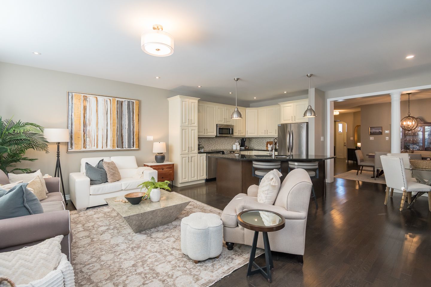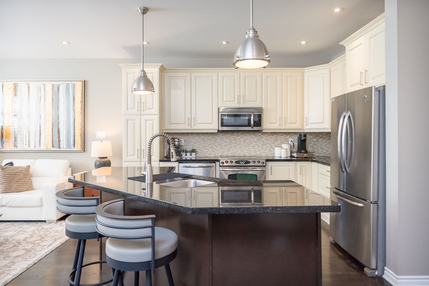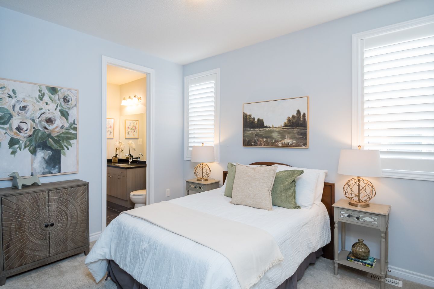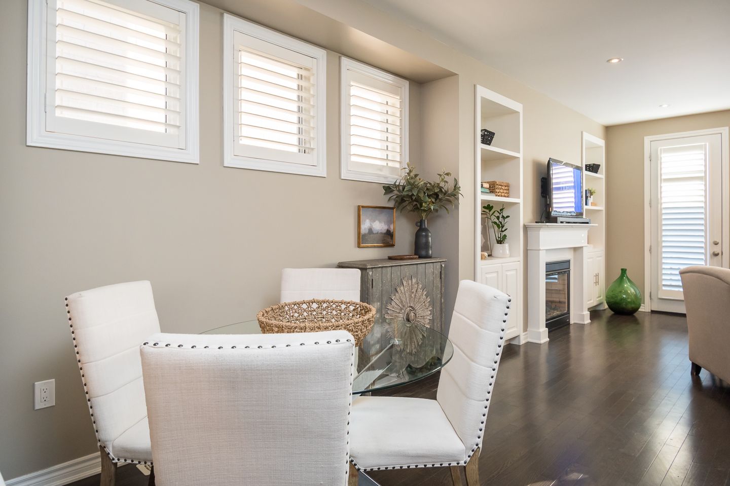 Welcome to 20-485 pringle avenue, an executive-style detached home (linked only at the garage) located in the highly sought-after scott neighbourhood. Built by mattamy homes, this manor model in the vista pointe community offers nearly 3100 sq ft of beautifully finished living space including finished basement. Enjoy low condo fees, abundant visitor parking, and parking for four vehicles (two in the garage and two on the driveway, with interior access). Inside, you'll find soaring 9-foot ceilings on both the main and upper levels, elegant california shutters throughout, and a thoughtfully designed layout that blends comfort and sophistication. The bright eat-in kitchen features warm white cabinetry, dark granite counters, a large island, and high-end stainless-steel appliances, opening to a cozy living room with custom white built-ins and a gas fireplace, plus a separate dining room perfect for entertaining. Upstairs, the primary suite offers double walk-in closets, a juliette balcony, and a spa-like 5pc ensuite with a frameless glass shower. Two additional bedrooms share a convenient jack and jill bath, while a flex office nook with built-ins and upper-level laundry add functionality. The fully finished basement extends the living space with a large bedroom, full bath, and plenty of storage. Outside, the private backyard features a deck and patio-ideal for relaxing or hosting guests. Freshly painted and move-in ready, this home combines upscale living with everyday convenience.