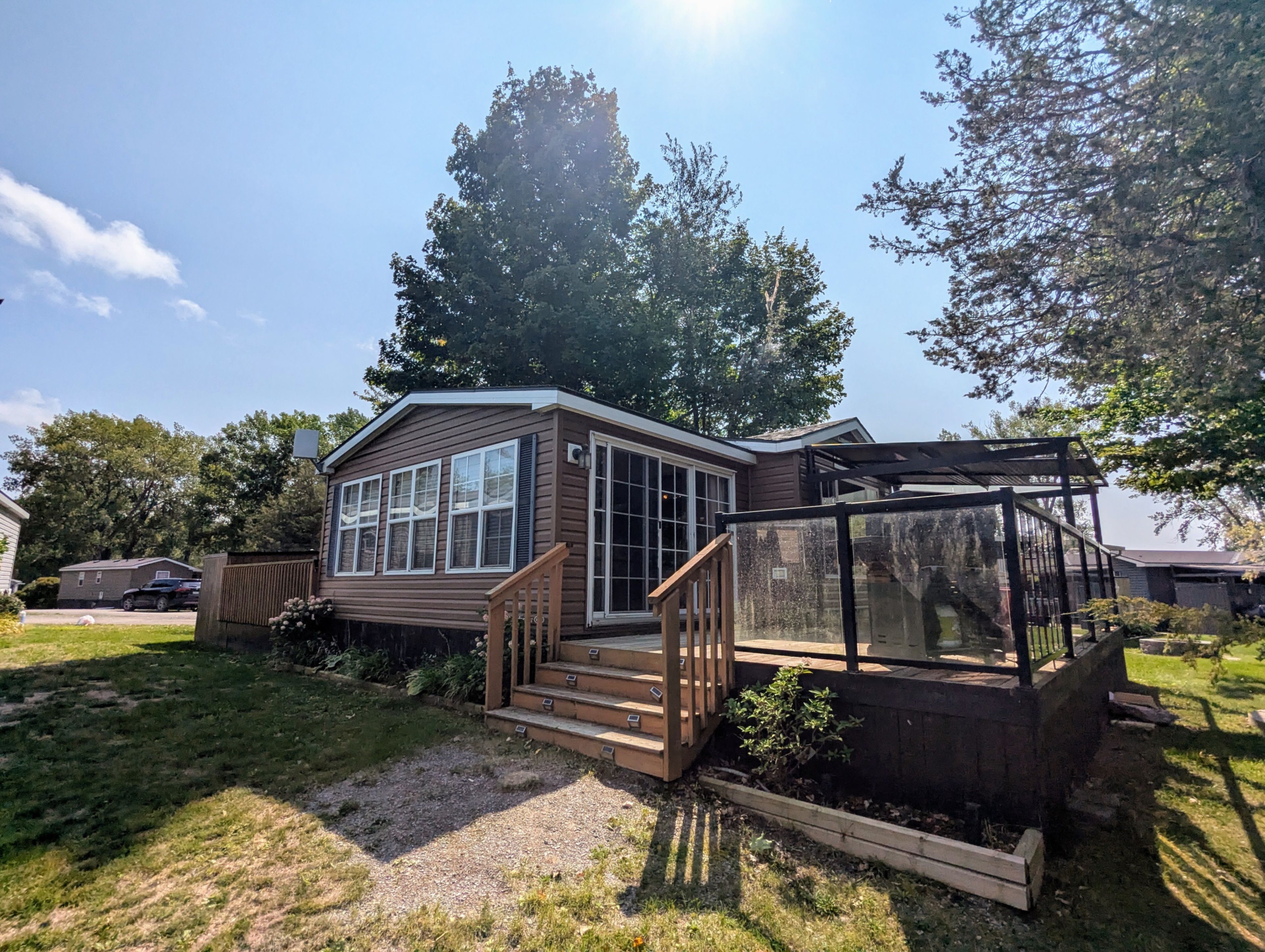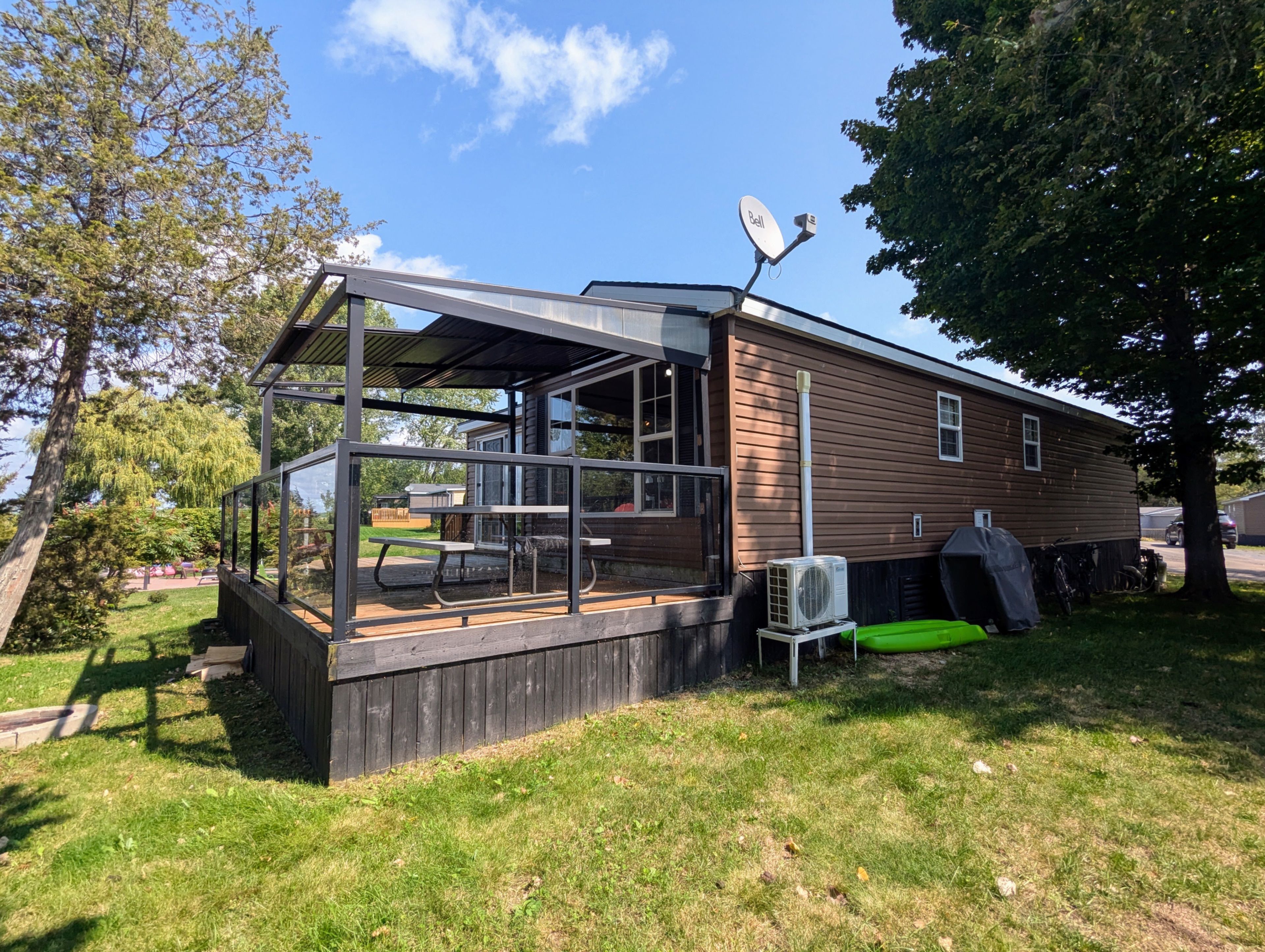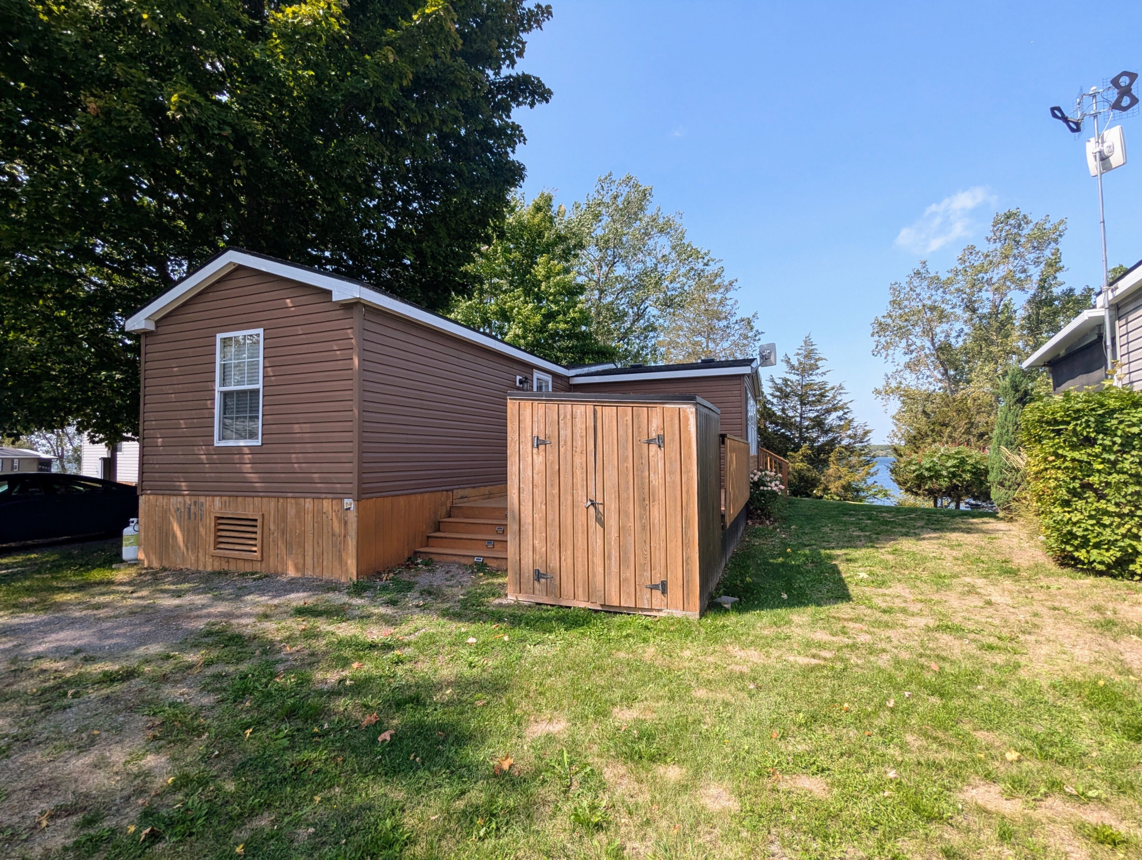 Escape to your own waterfront retreat at cherry beach resort in prince edward county. This 2012 northlander cottage escape model has been thoughtfully upgraded for comfort and relaxation, featuring a heat pump, a spacious sunken living room with fireplace, and an expansive deck with a covered dining area. A second platform deck is perfectly positioned to soak in breathtaking sunsets over east lake, while a fire pit sets the stage for cozy evenings under the stars. Your private waterfront comes complete with stairs leading down to a dock and a storage shed for all your water toys. With parking for 2 vehicles, possible participation in the resorts rental program for added income, and access to amenities including a pool, public beach, basketball courts, and a children's play park, this seasonal property (open may 1 to october 31) blends convenience and leisure seamlessly. Just minutes from picton, base 31, sandbanks and all the breweries and wineries pec is known for, you've got all your vacation needs at your finger tips. Whether you're seeking family fun or peaceful lakeside living, this cherry beach gem is ready to welcome you. Come take a look, fall in love + you too can call the county home.