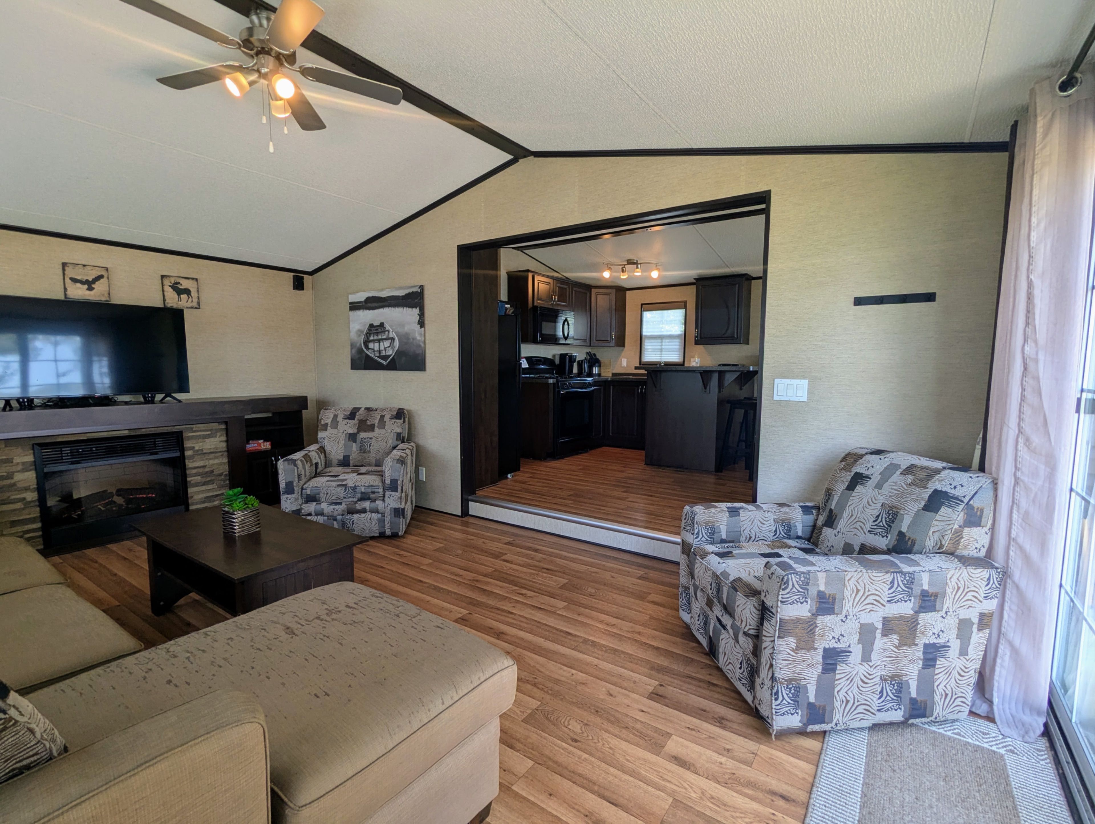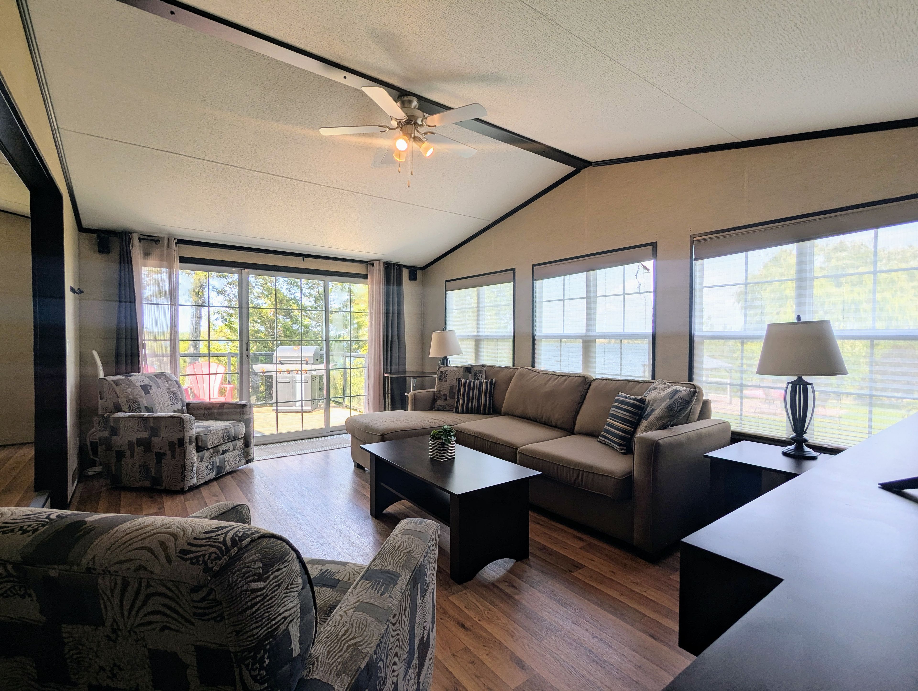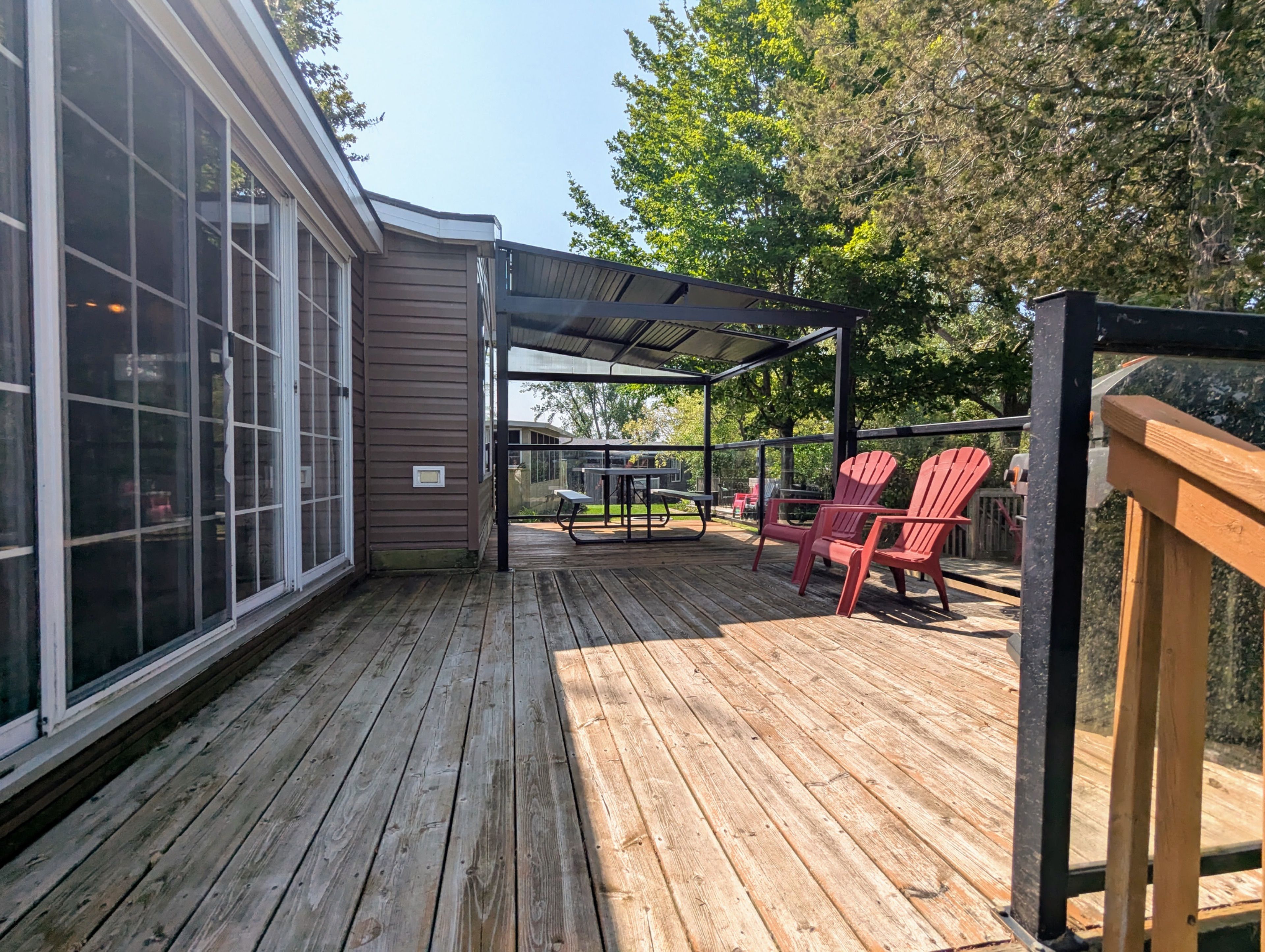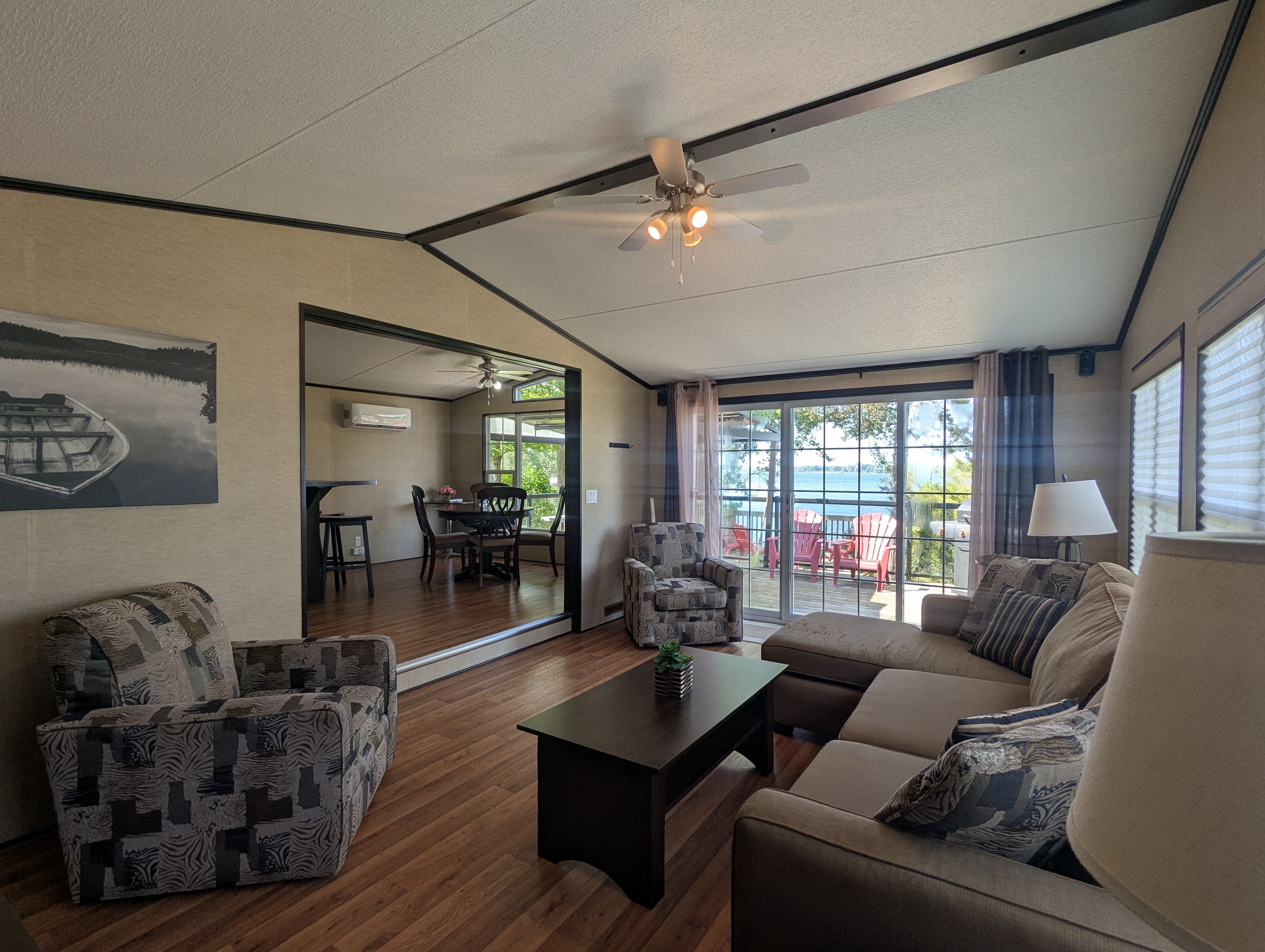 Escape to your own waterfront retreat at cherry beach resort in prince edward county. This 2012 northlander cottage escape model has been thoughtfully upgraded for comfort and relaxation, featuring a heat pump, a spacious sunken living room with fireplace, and an expansive deck with a covered dining area. A second platform deck is perfectly positioned to soak in breathtaking sunsets over east lake, while a fire pit sets the stage for cozy evenings under the stars. Your private waterfront comes complete with stairs leading down to a dock and a storage shed for all your water toys. With parking for 2 vehicles, possible participation in the resorts rental program for added income, and access to amenities including a pool, public beach, basketball courts, and a children's play park, this seasonal property (open may 1 to october 31) blends convenience and leisure seamlessly. Just minutes from picton, base 31, sandbanks and all the breweries and wineries pec is known for, you've got all your vacation needs at your finger tips. Whether you're seeking family fun or peaceful lakeside living, this cherry beach gem is ready to welcome you. Come take a look, fall in love + you too can call the county home.