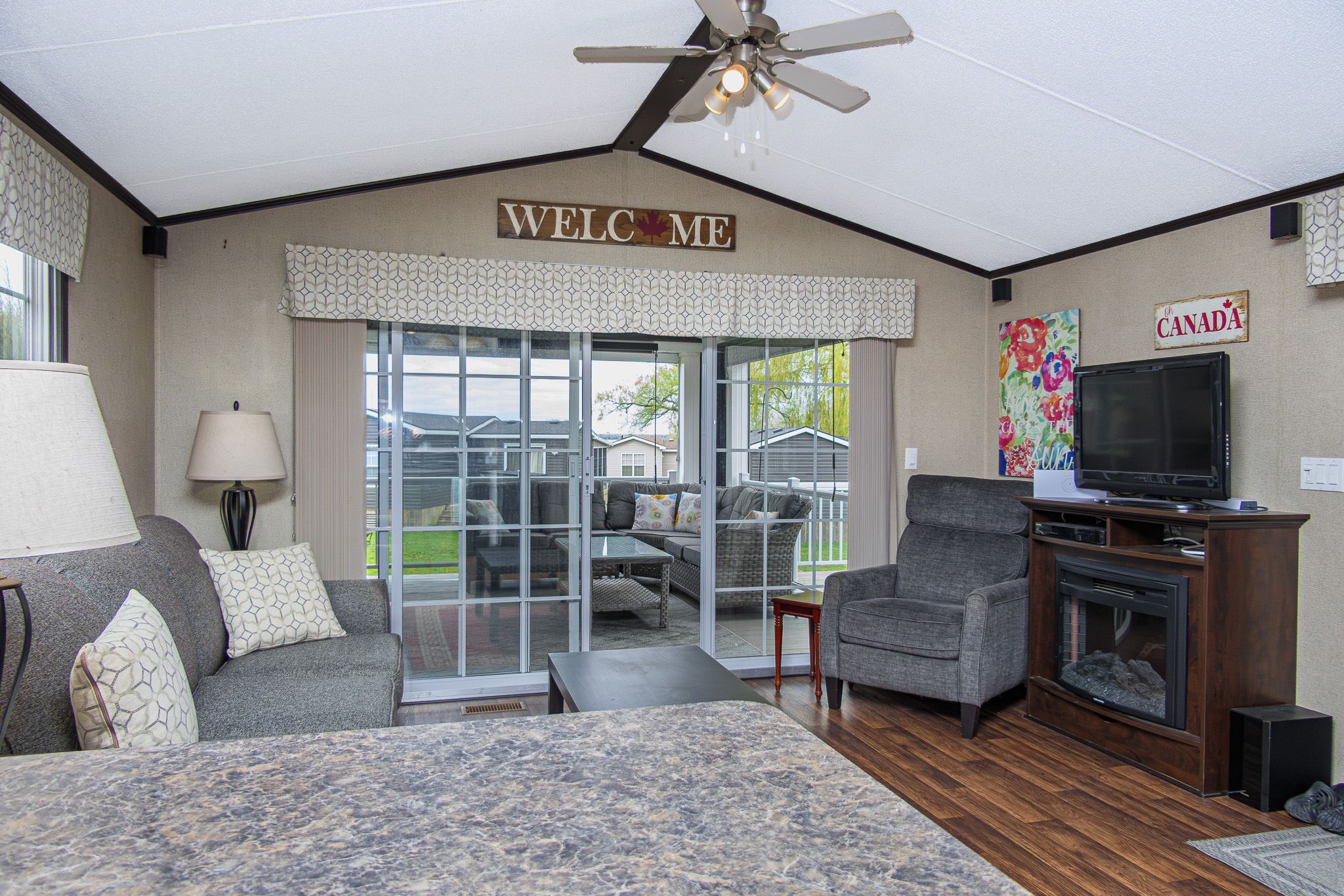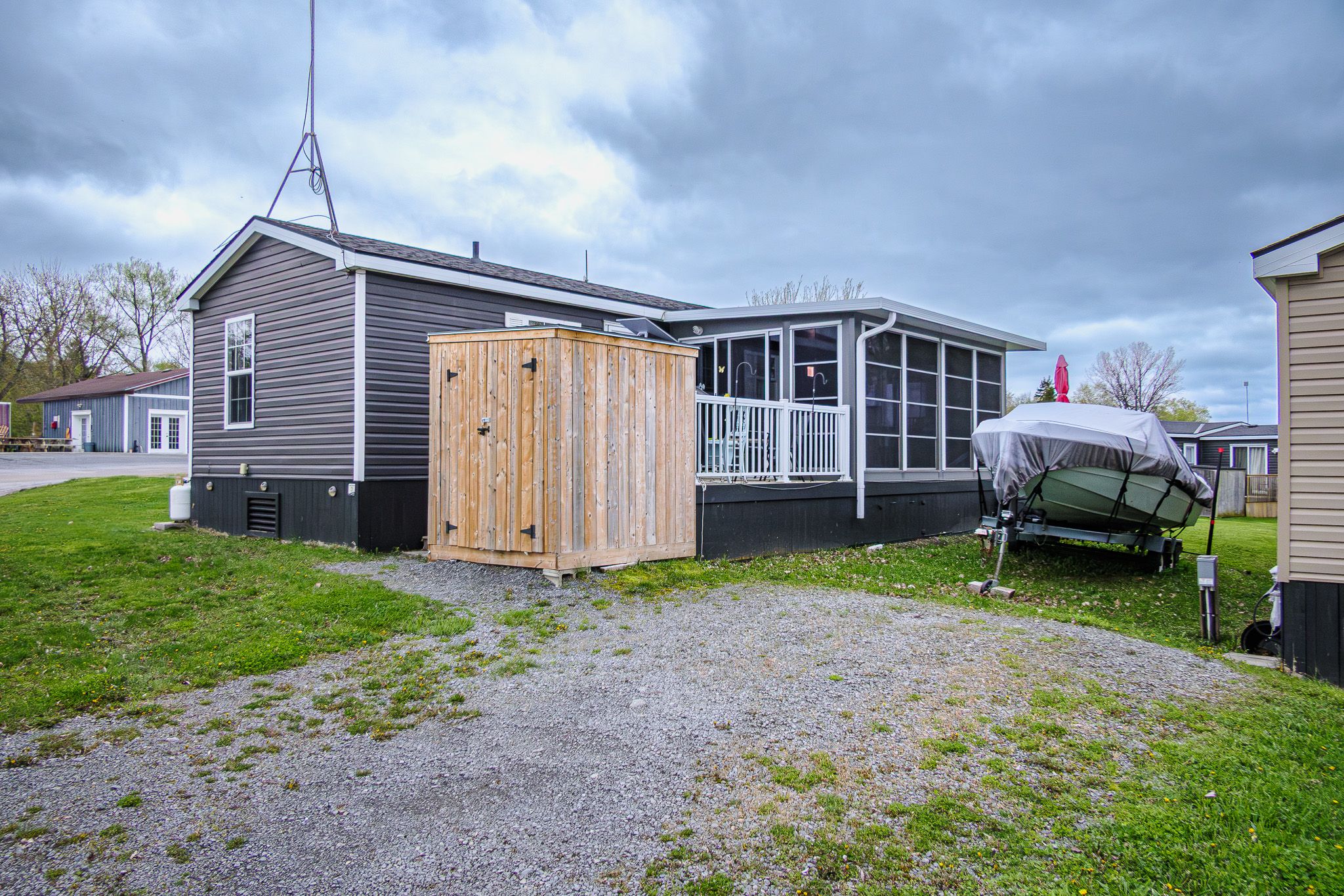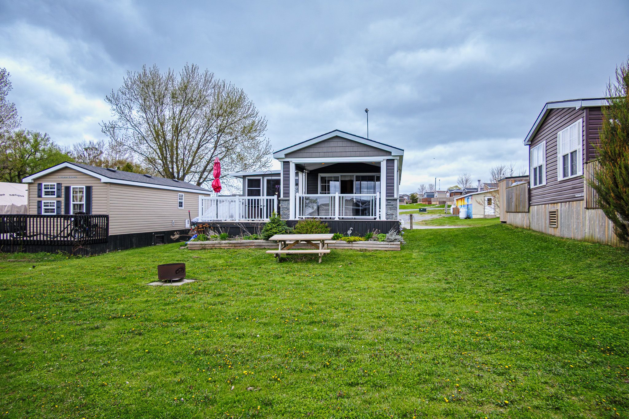 ***this mobile unit is located on a seasonal land lease resort***--purchase price not subject to hst--this unit may seem like every other unit to the untrained eyes, but do not be deceived... Built in 2015 with extra specifications and features directly from the manufacturer, life at the resort just got more comfortable ! Extra wide and extra long (14ftx51ft) everything is and feels more spacious. Double wide coat closet? Yes please. Extra broom closet ? Why not! Walk-in closet in the primary bedroom? Sign me up! Your gas stove is for cooking while both electric fireplaces are there to warm your heart as you read-on that book that you never started. Inside or outside, comfort is the name of the game. The sunroom addition ( currently used as dining room) was upgraded with vinyl floor planking as opposed to your typical vinyl roll flooring. Enjoy privacy with tinted windows in the sunroom and 2 sets of patio doors granting sheltered access to both front and rear deck. The exterior living room is a direct extension of your livable space, its features includes : privacy pull downs, motorized bug screens, composite deck floors, faux stone accent wall, pot lights, recessed tv area and electric outlets. Located 2 and 1/2 hours from toronto and just under 4 hours from montreal ( yes there are lots of owners coming from both cities). The resort is located minutes from picton, sandbanks, base 31 and the outlet river granting access to lake ontario. The resort is open from may 1st to october 31st. Annual fees of $9765. 00 + hst are payable in 2 installments. 1st installment due on nov 1st and 2nd installment due on april 1st. Fees include the following (lot occupation fee, water & sewer, lawn care, hydro, resort amenities like: multi-sport court, rec plex, chlorine water heated pool, beach, splash pad, playground, events and more).
