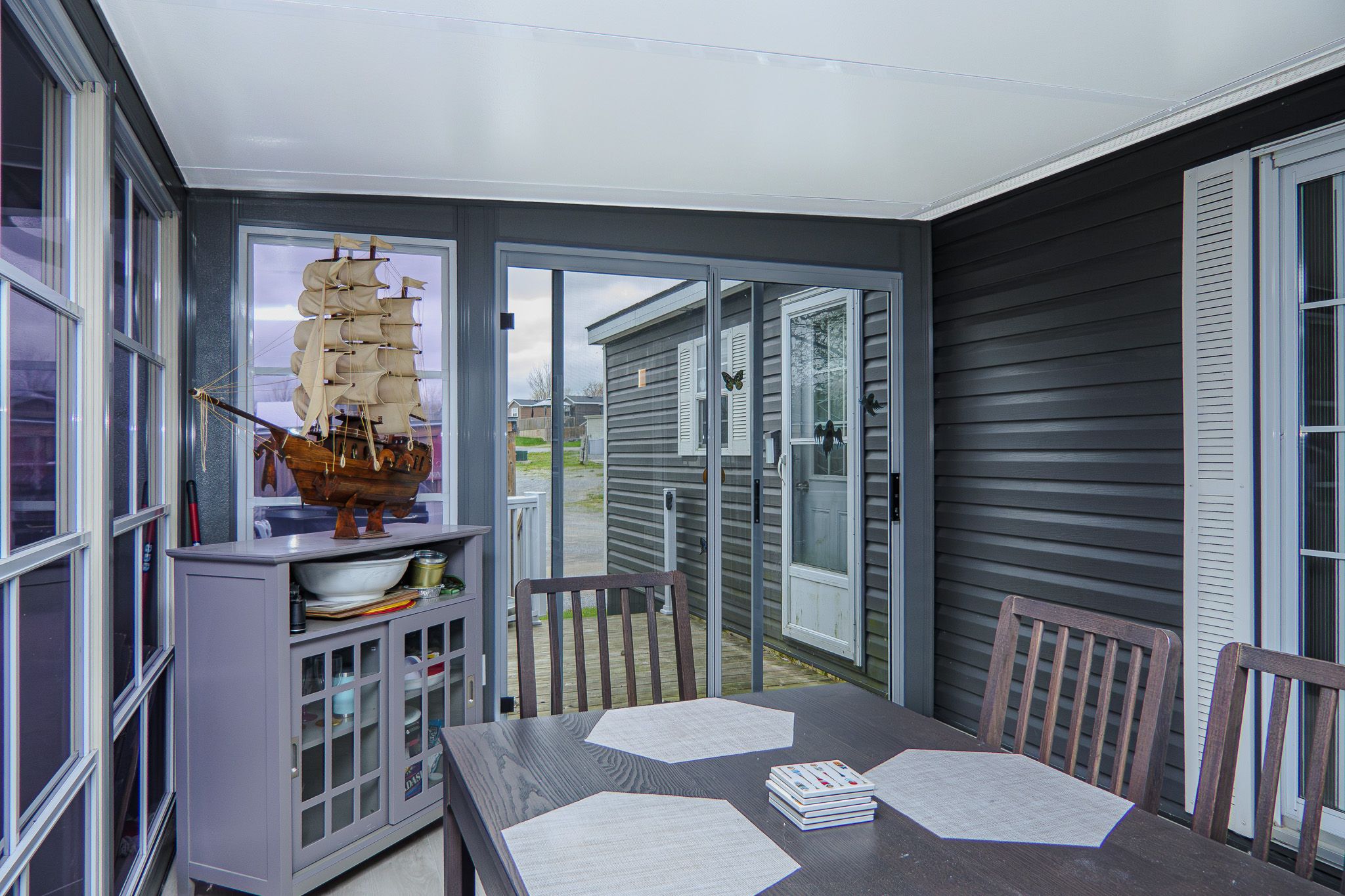 • Upgraded sunroom with vinyl flooring and tinted windows for privacy.