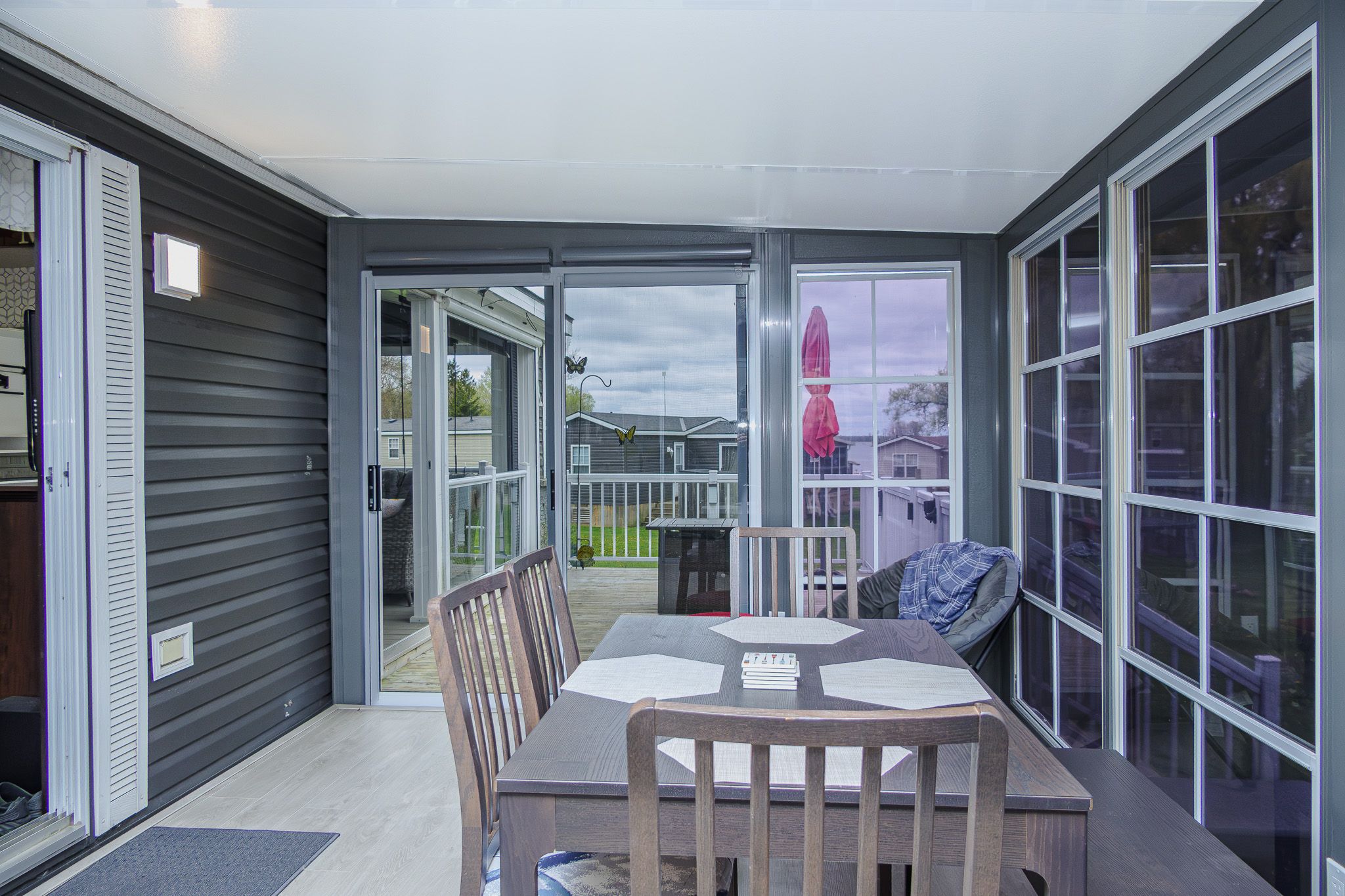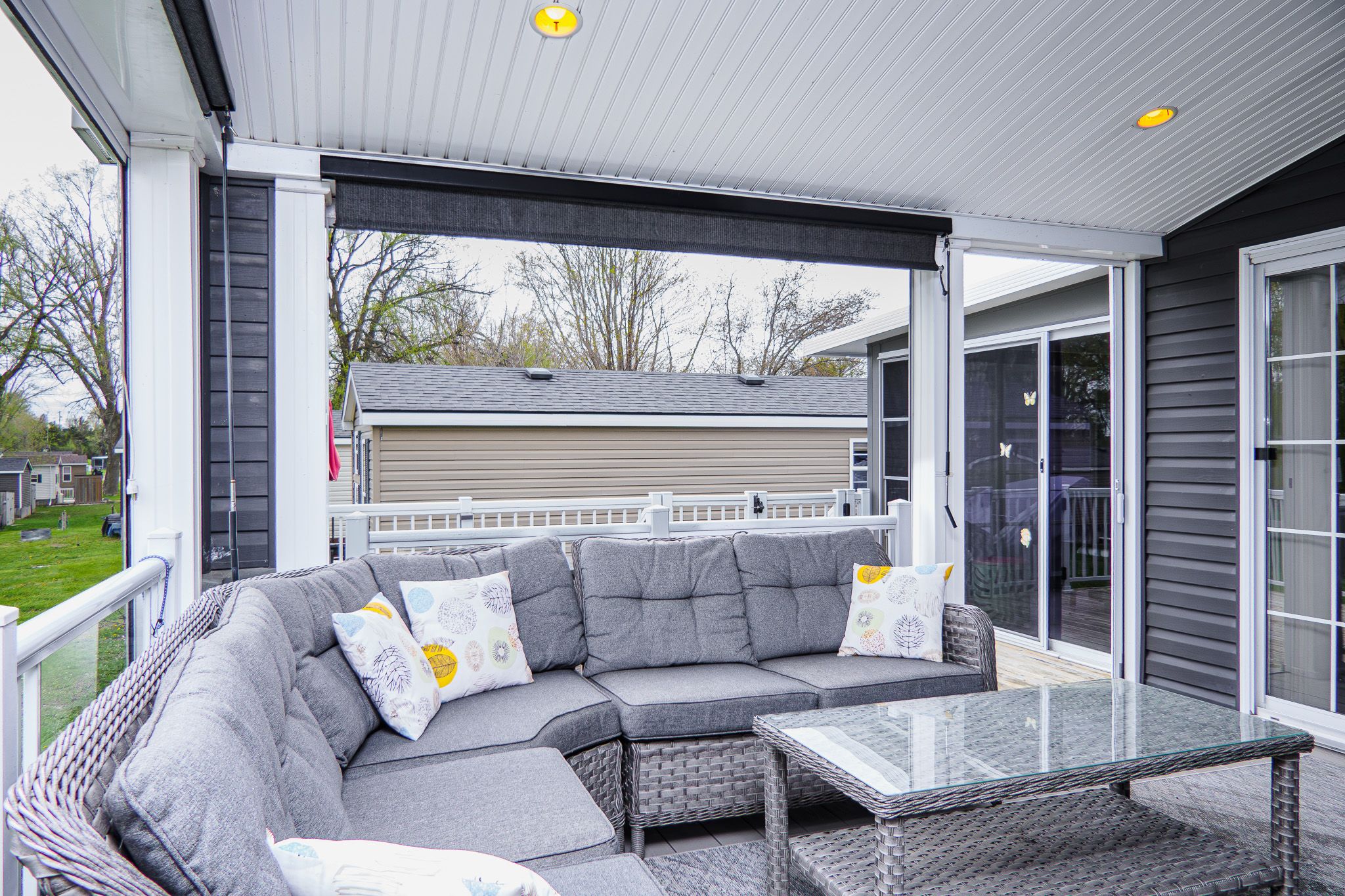 • Outdoor living room with bug screens and composite deck floors.