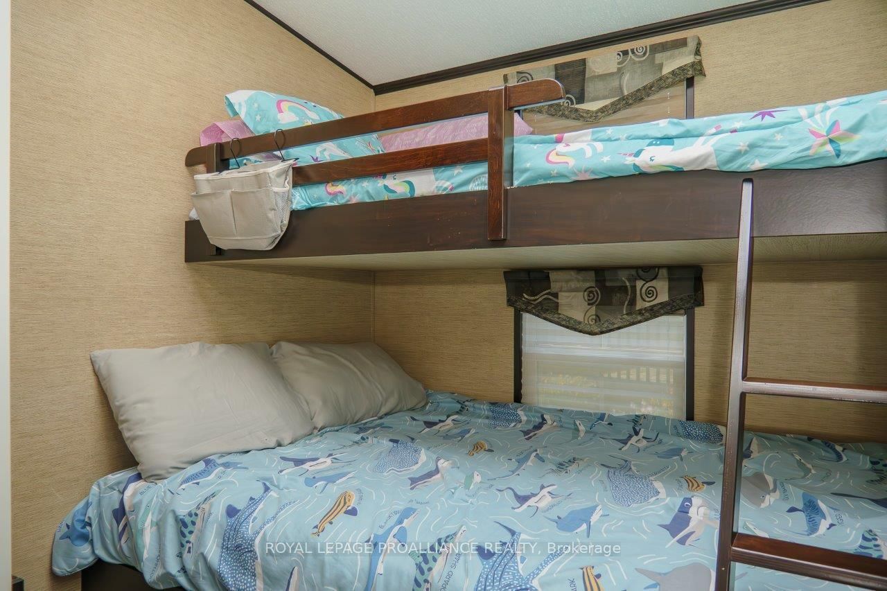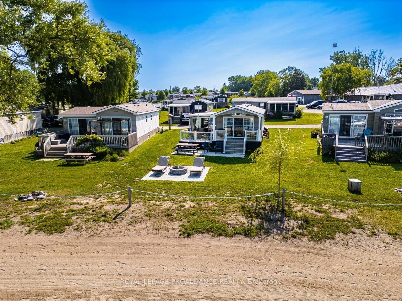 The name says it all 3 beachview lane! This immaculate w/f unit sits directly on the stunning beach at cherry beach resort in prince edward county, a place known for its beaches, restaurants & wineries. A rare opportunity for a direct w/f unit, this prime location is steps from park amenities, the welcome centre, play areas, and most importantly the beach! Enjoy breathtaking views from two back decks as you watch the kids play on the sand right in front of you. Perfectly positioned on east lake (flakes cove), this spacious lot features a firepit w/ loungers, a storage shed, parking for two & two decksone covered off the main unit & a sun deck off the addition. Inside, this bright & spacious unit offers over 700 sq. Ft. Of living space, with an extra-wide 14 ft. Trailer (43 ft. X 14 ft.) + a 170 sq. Ft. Sunspace addition (17 ft. X 10 ft.) used as a dining room. The home offers 2 bedrooms & 1 bath but sleeps 7 persons, thanks to the double bunks in the spare bedroom & a pull-out couch. Modern kit boasts a peninsula island, espresso cabinetry & appliances included. Vaulted ceilings in the living room along w/ an electric fireplace. Comfort features include: forced air propane furnace & central air conditioning. Perfect seasonal retreat. Move-in-ready unit is fully equipped for summer fun, available for personal use or as a rental through the cherry beach rental program. Immaculate condition & unit includes everything you need to start off ownership at the beginning of the season, all the way until november when the park closes. Great place for family & friends to enjoy summer at the beach. Seasonal park (open may 1 oct. 31) offers amenities like a heated chlorine pool, basketball & tennis courts, playground, splash pad, sandy beach, boat docks, a rec centre, convenience store, laundry & more. 7 minutes from sandbanks provincial park! Park fees are $16,015 + hst (includes land lease, taxes, grass cutting, hydro & amenities). Visit our website for more details.