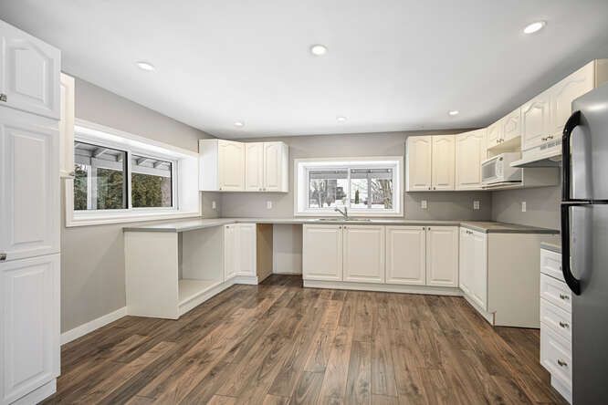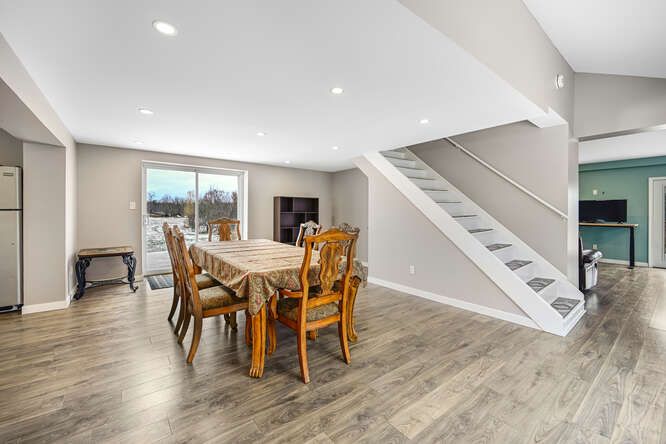 • Open concept kitchen and dining area with two deck walkouts for fresh air.