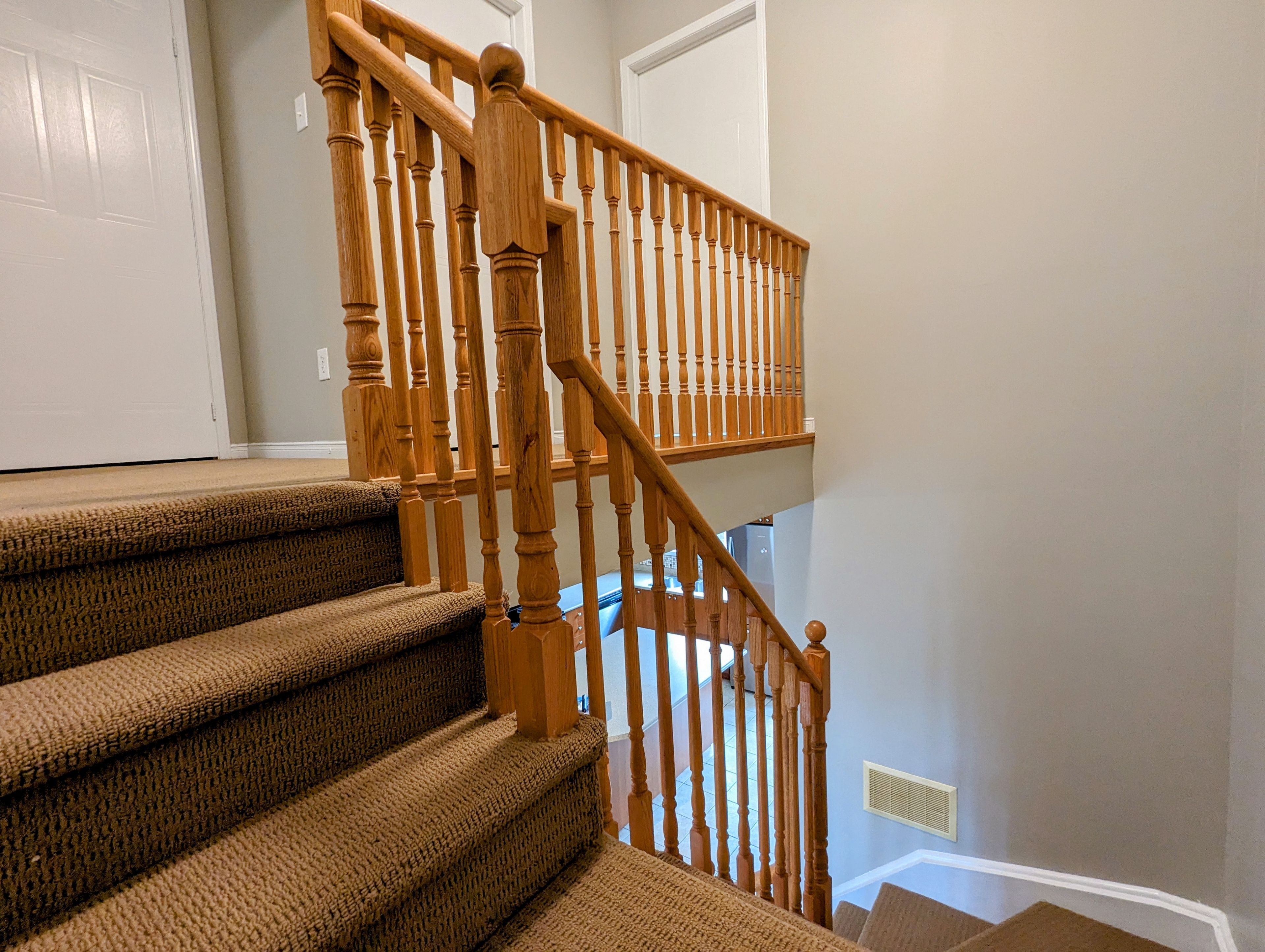 • Elegant hardwood stairs and a spacious family-sized kitchen.