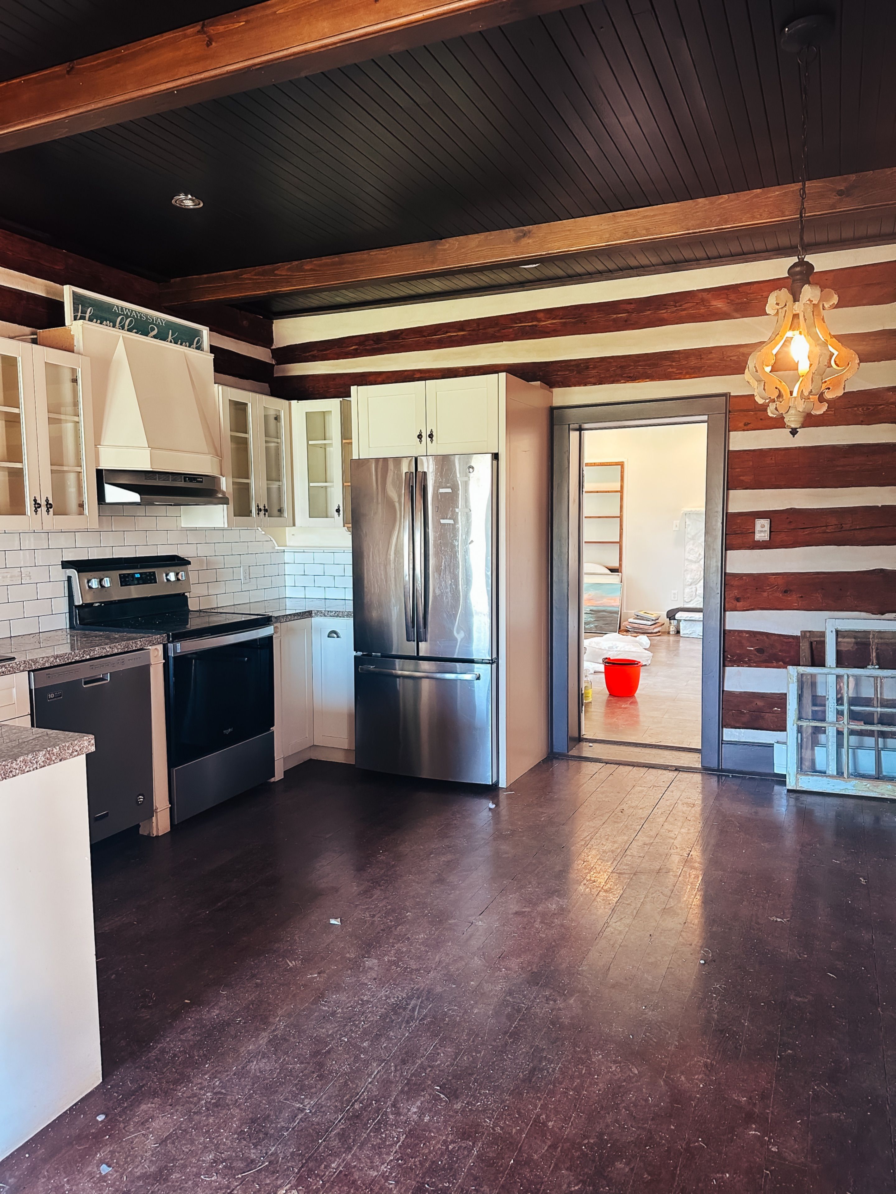 • Original log home upgraded for modern family living.
