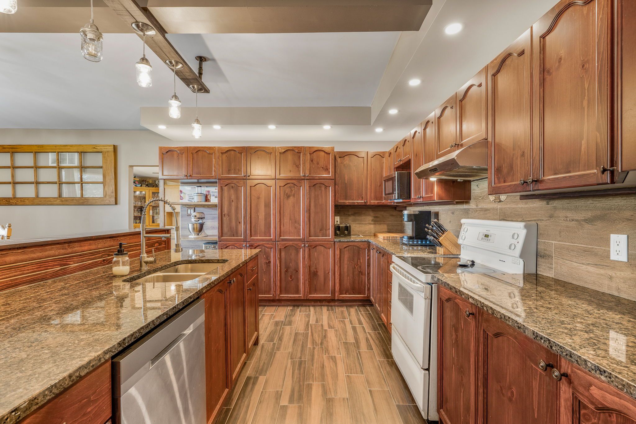 • Modern kitchen with ample cabinetry and a large island for cooking.