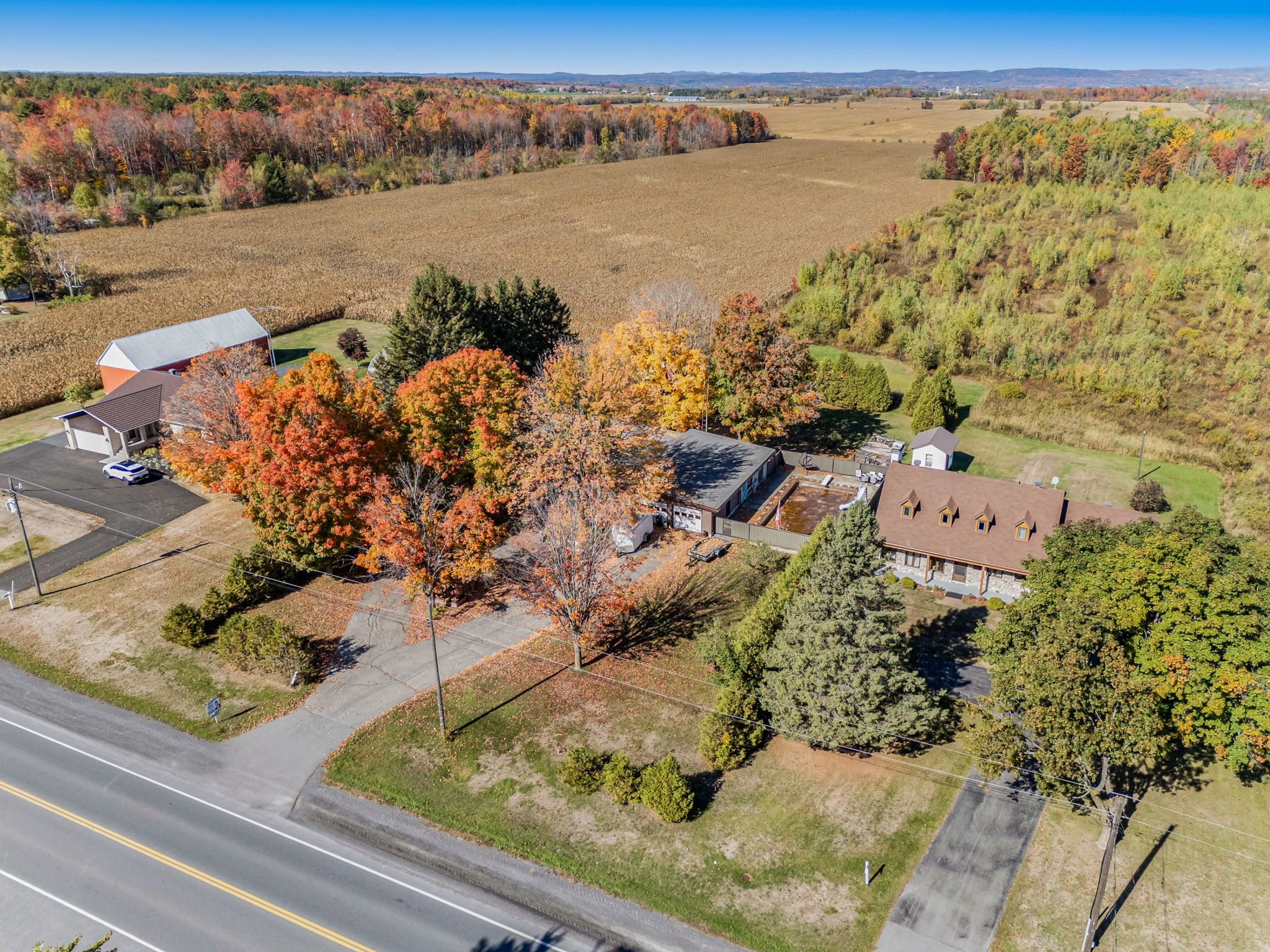**open house saturday april 4th 2026 from 1pm to 3pm** welcome to 4866 county road 17, a lovely 5-bedroom, 2-bath bungalow offering convenience, outdoor space within the small community of alfred. From the moment you arrive, a charming landscaped entryway greets you with mature trees, lush greenery, and a big size driveway. Step inside to a inviting foyer that welcomes you into a bright main floor. To the right, a spacious living room with a cozy gas fireplace provides the perfect place to unwind or gather with family. The adjacent kitchen is modern, featuring ample cabinetry, extensive counter space, a walk-in pantry, and a large island. The dining area is graced by a custom light fixture and offers patio access to the backyard. The main level also includes a primary bedroom, a second bedroom, and a full bathroom. Downstairs, discover a recreation space complete with a second gas fireplace, perfect for movie nights, games, or a home gym. Three additional bedrooms, a full bathroom, and a laundry room complete the lower level, providing flexibility for families and guests. The backyard features a stunning fenced-in 21' x 44' saltwater inground pool, as well as a firepit, and plenty of room for kids and pets to roam. Enjoy the convenience of a municipal park, restaurants, bank, pharmacy, grocery all within a few minutes drive. Come see what alfred has to offer, book a visit today!