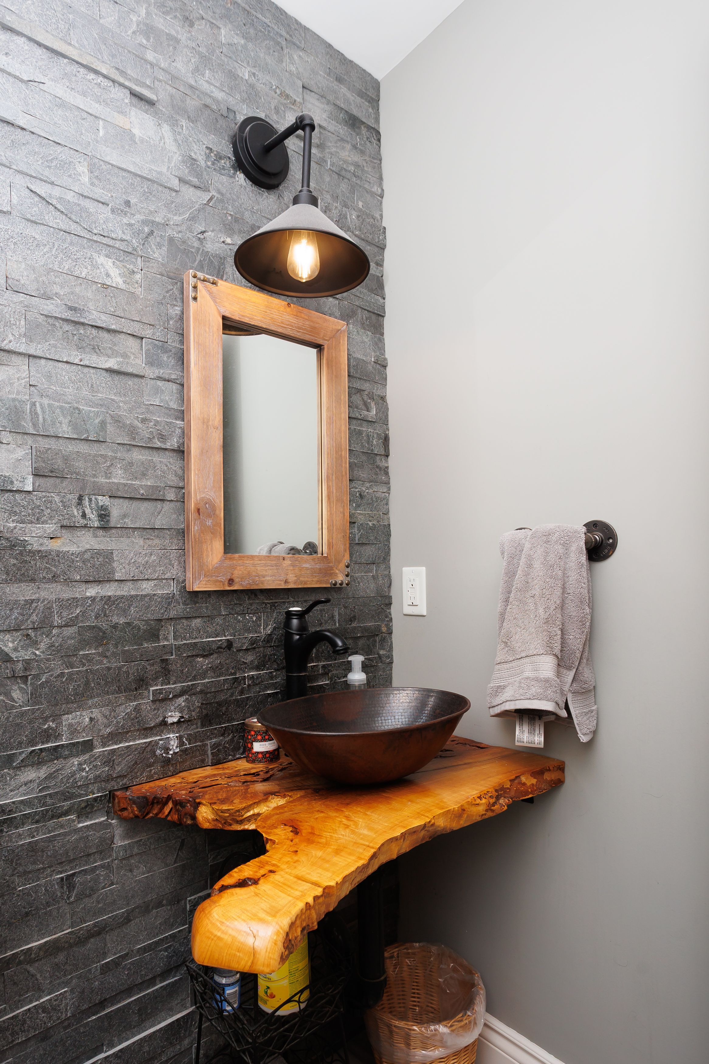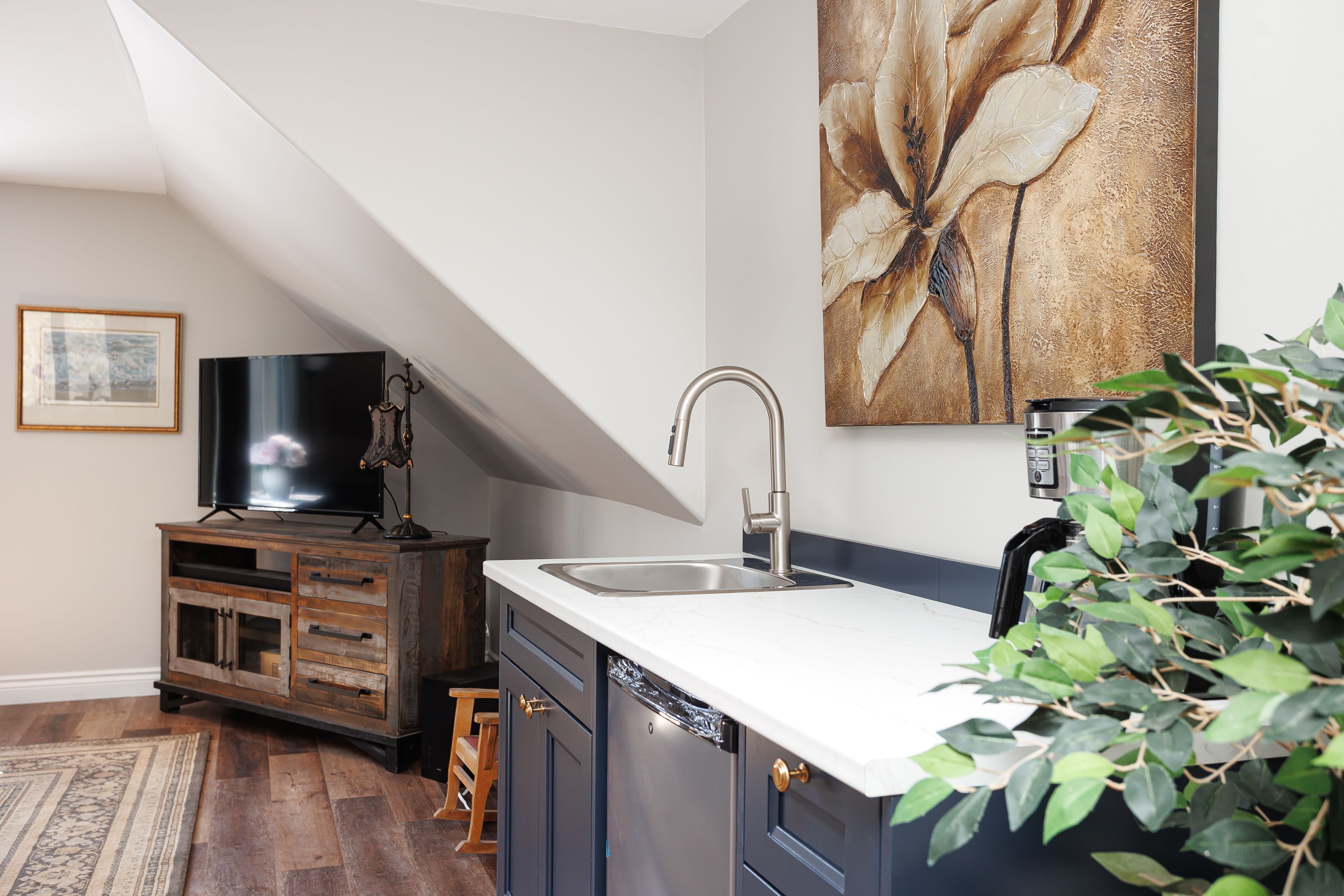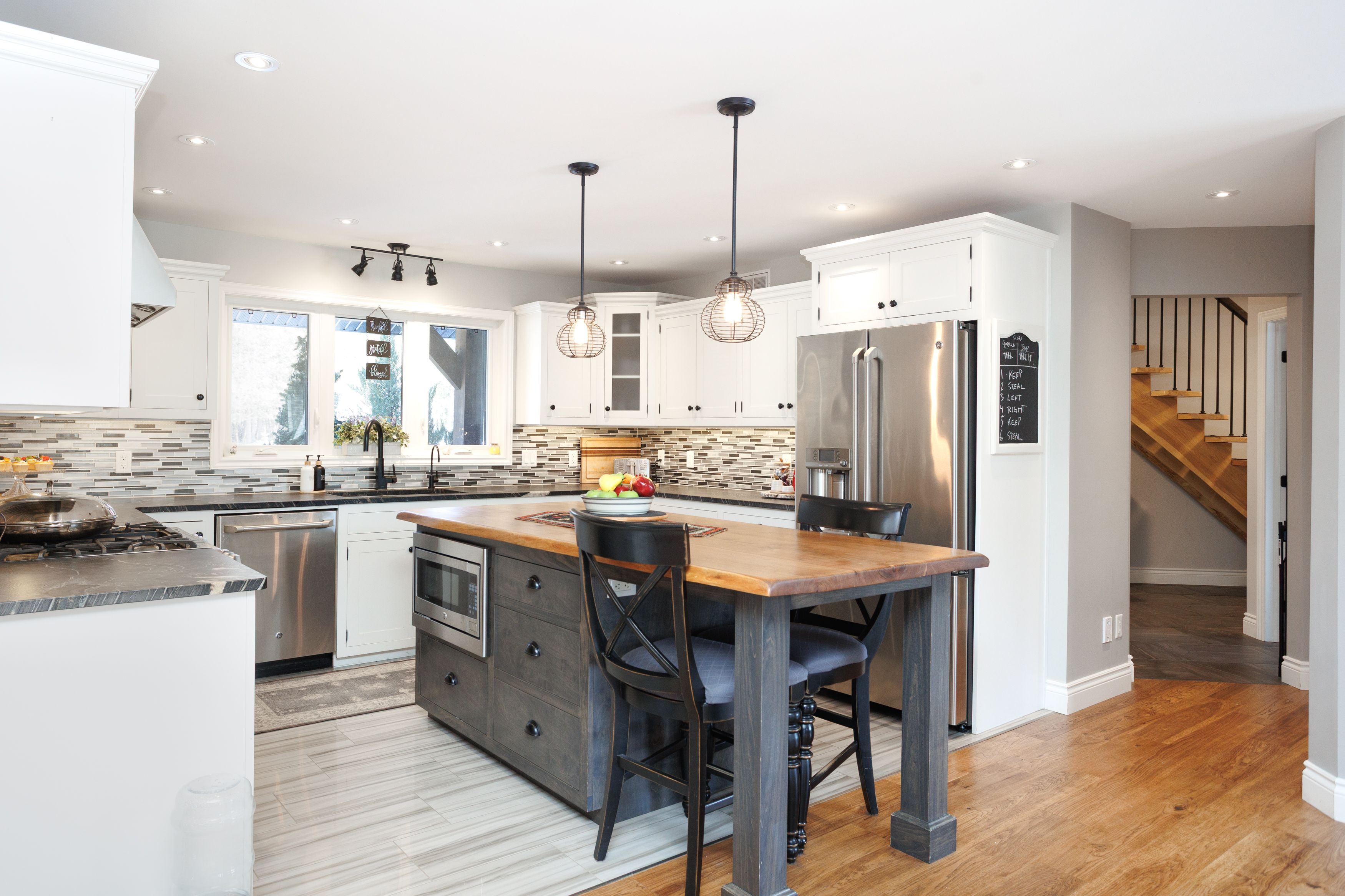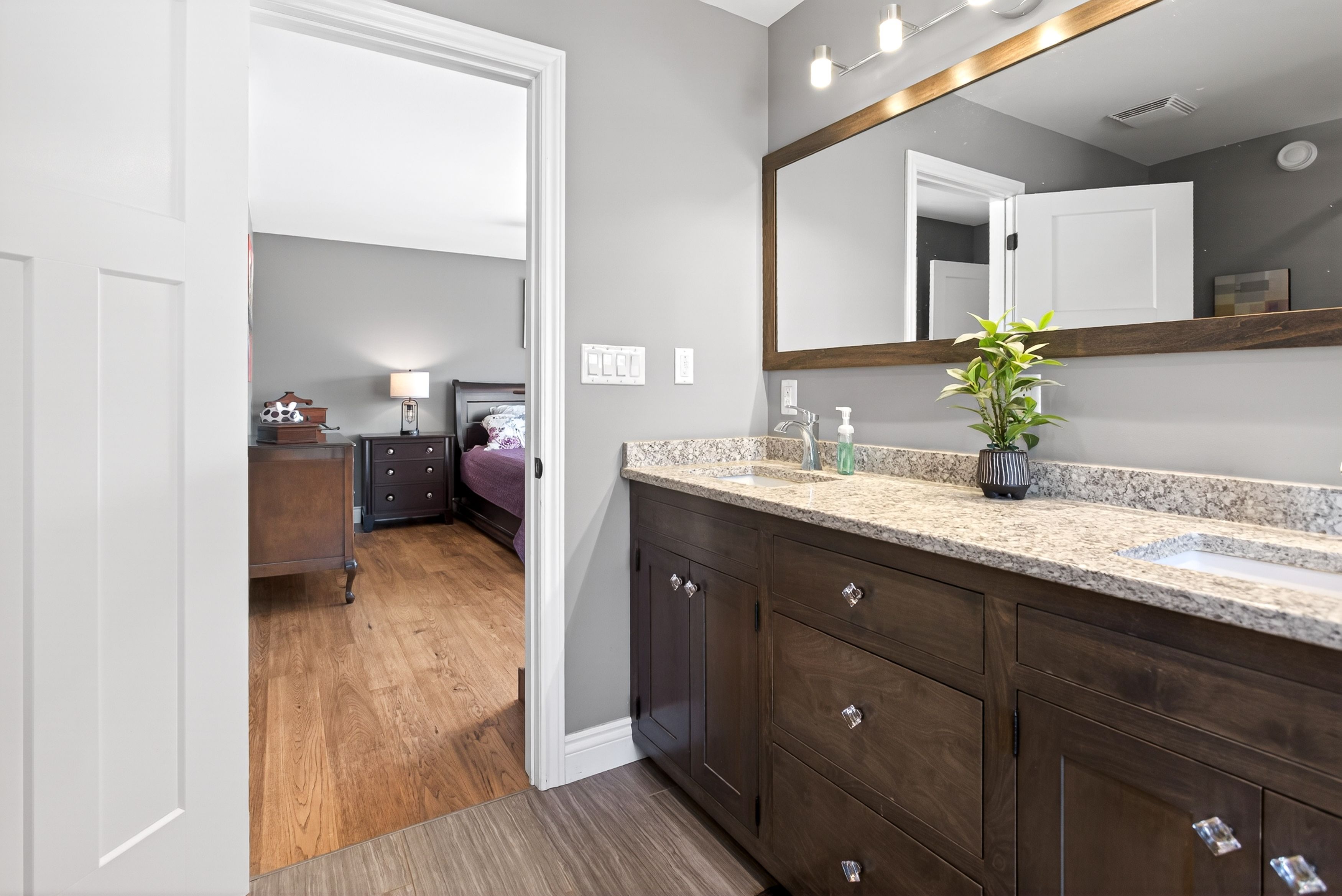 • Stunning kitchen with granite countertops, heated floors, and a live edge island.