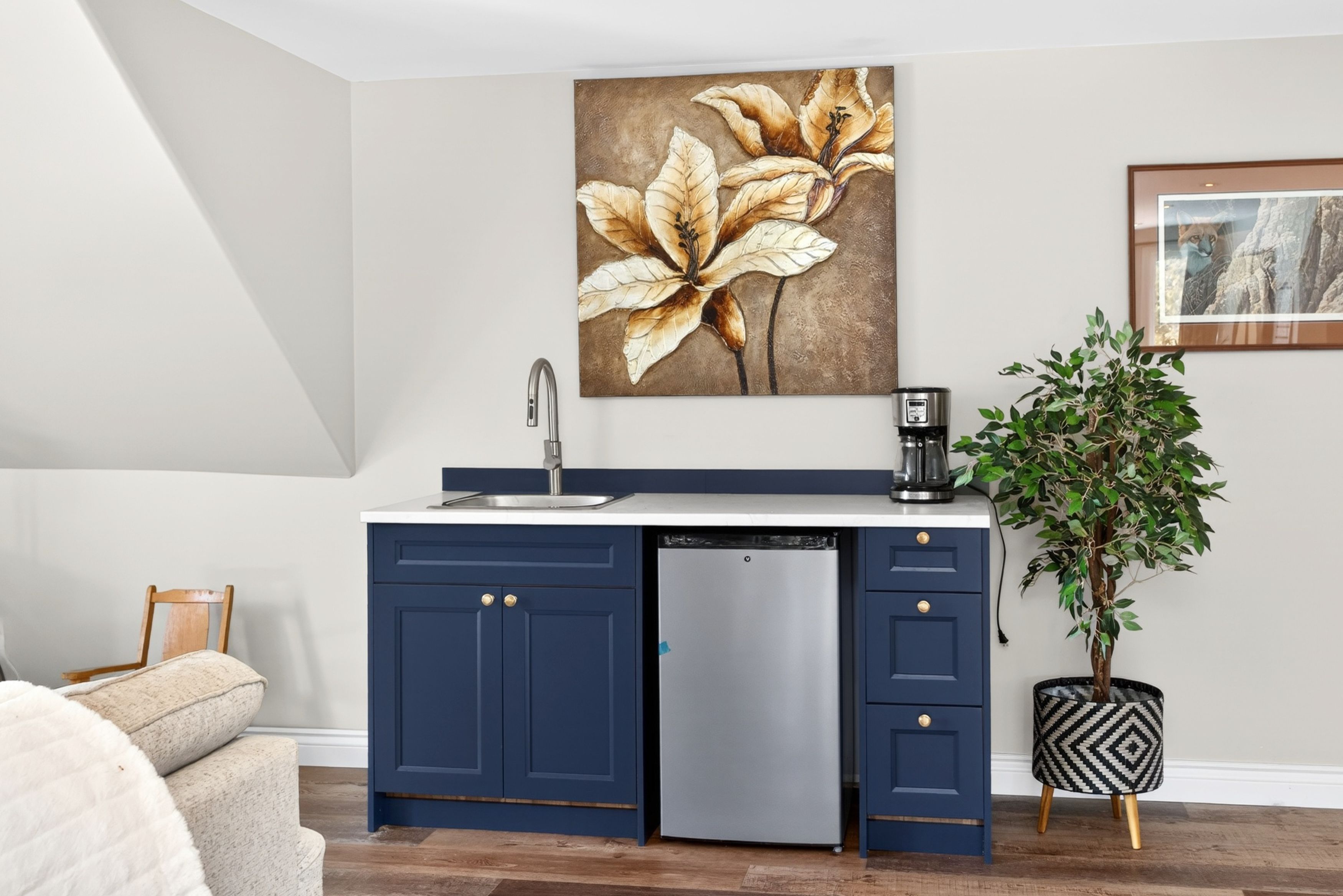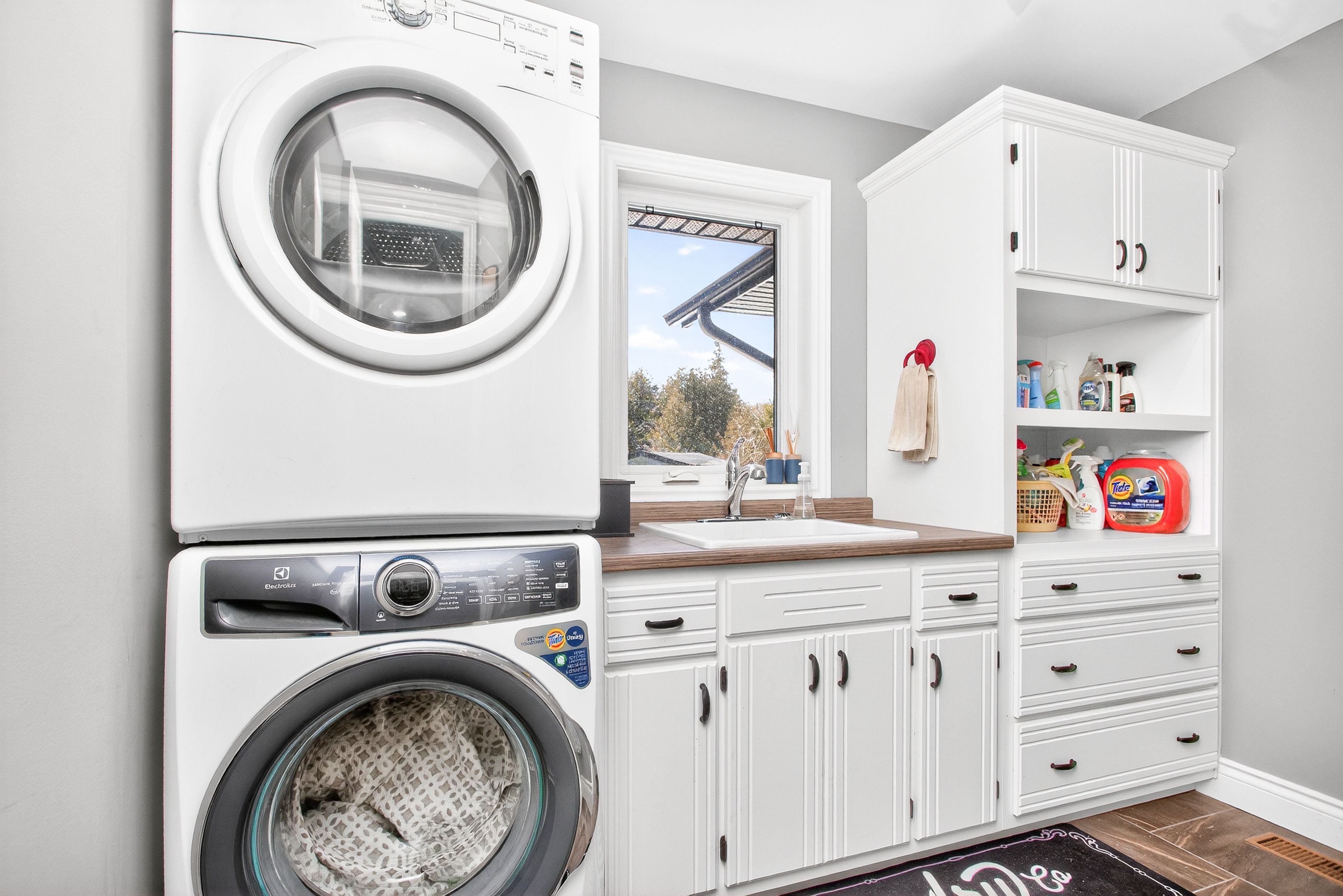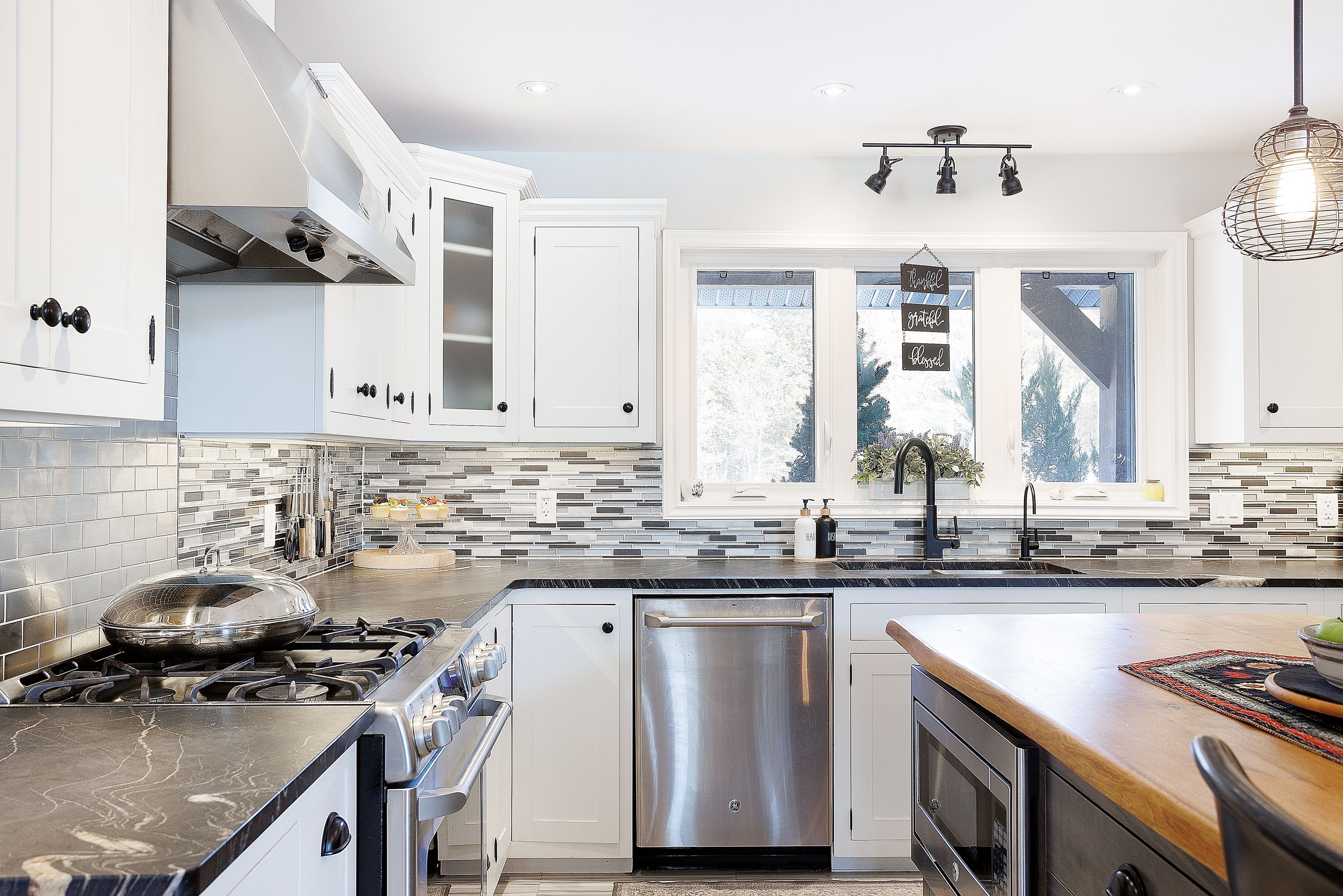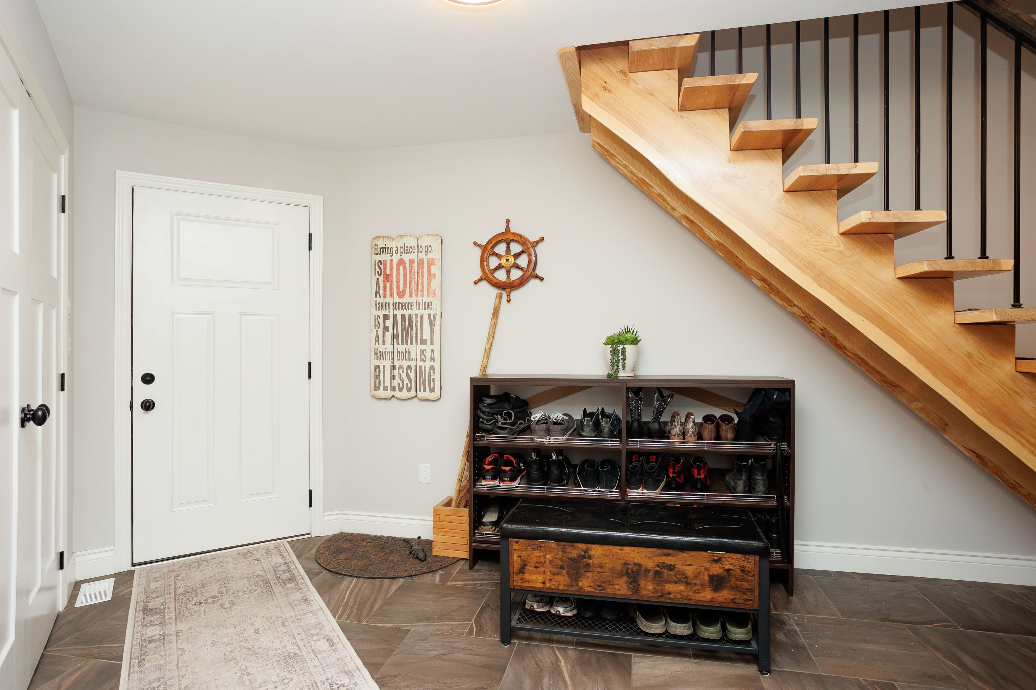 • Stunning kitchen with granite countertops, heated floors, and a live edge island.