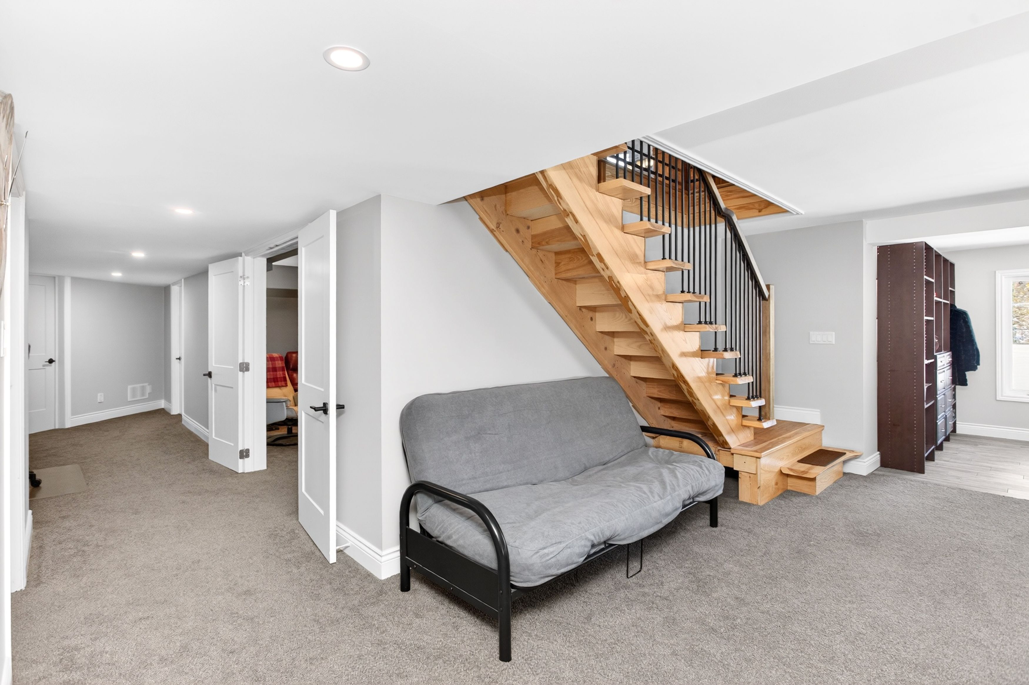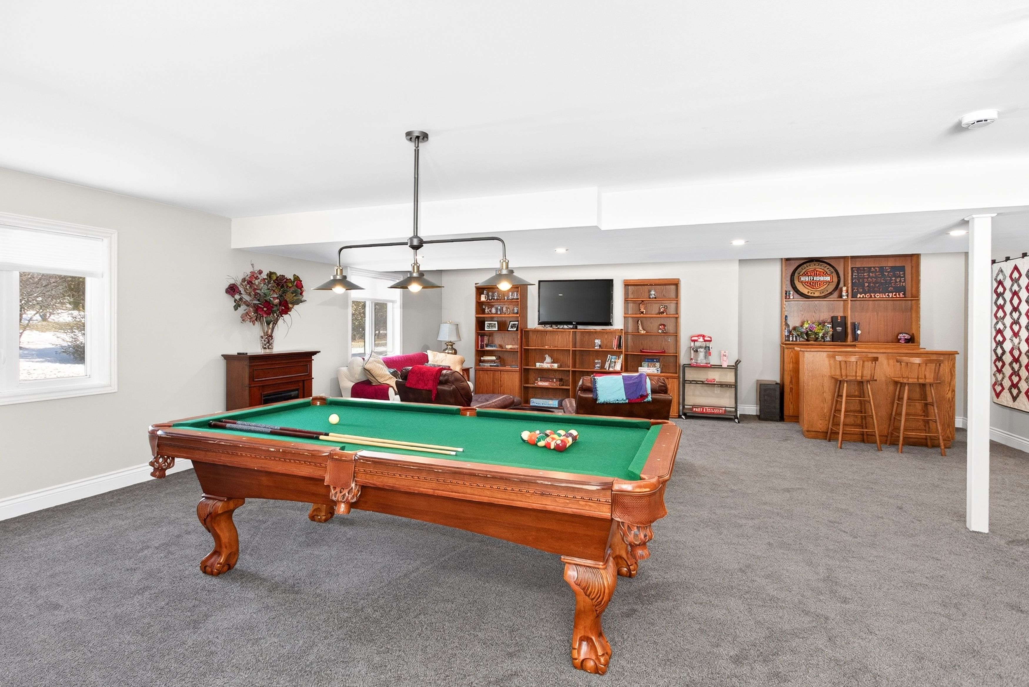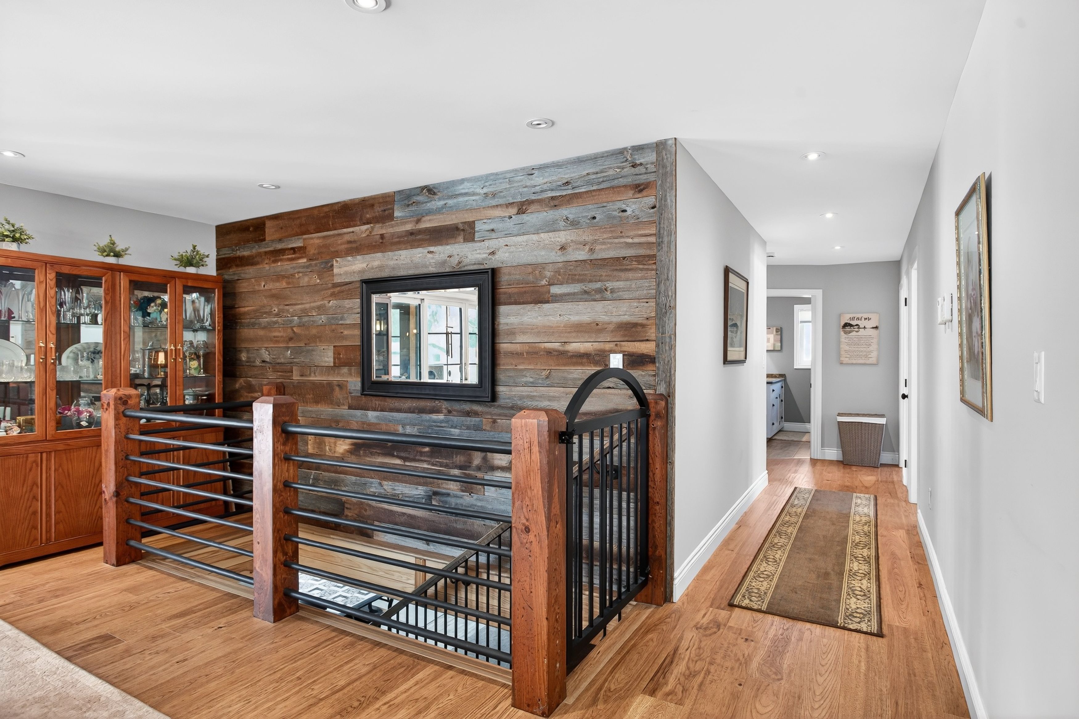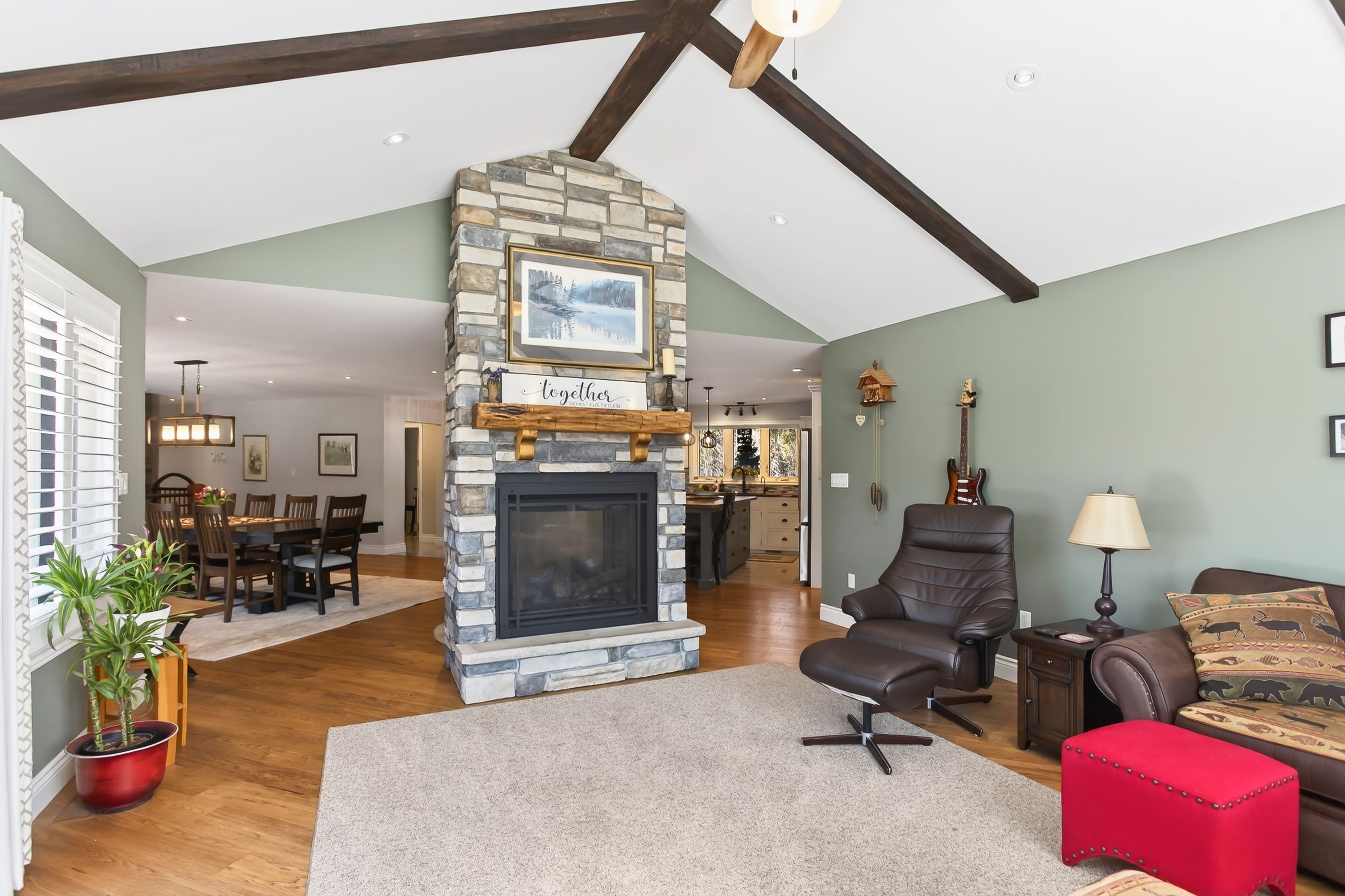 This exceptional custom-built bungalow offers outstanding quality and thoughtful design throughout. The stunning kitchen features a new custom live edge island, granite countertops, stainless steel appliances and heated flooring, opening seamlessly to s spacious dining room with a walkout to a charming sunroom and large deck overlooking the private, fully fenced backyard complete with hot tub and a detached shop/garage. A two sided fireplace connects the kitchen and the bright, expansive family room, creating a warm and inviting living space perfect for relaxing or entertaining. The main level includes three generously sized bedrooms, two bathrooms including a private ensuite, as well as main-floor laundry and a convenient mudroom with direct access to the dream three car heated garage. A beautiful live-edge staircase leads to the newly renovated loft above the garage, complete with a two-piece bathroom, wet bar and potential for a bachelor apartment or guest suite. The bright walkout lower level has been recently finished and offers a large recreation room, a soundproof entertainment room, a fifth bathroom and a utility room equipped with a oil/wood burning forced air furnace. This unique property combines luxury finishes, versatile living spaces and exceptional craftmanship in a private settting.