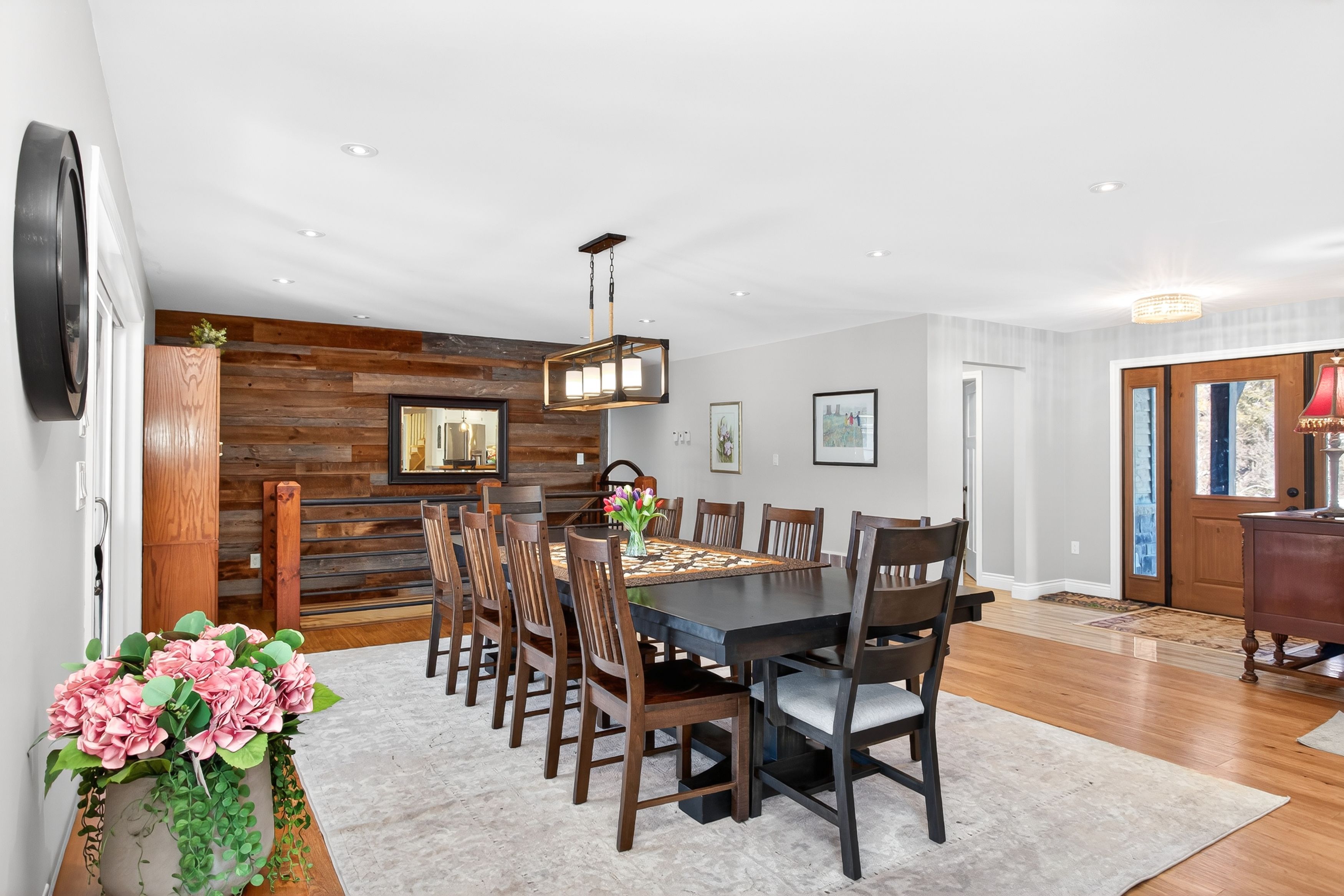 • Spacious dining room with a walkout to a sunroom and large deck.
