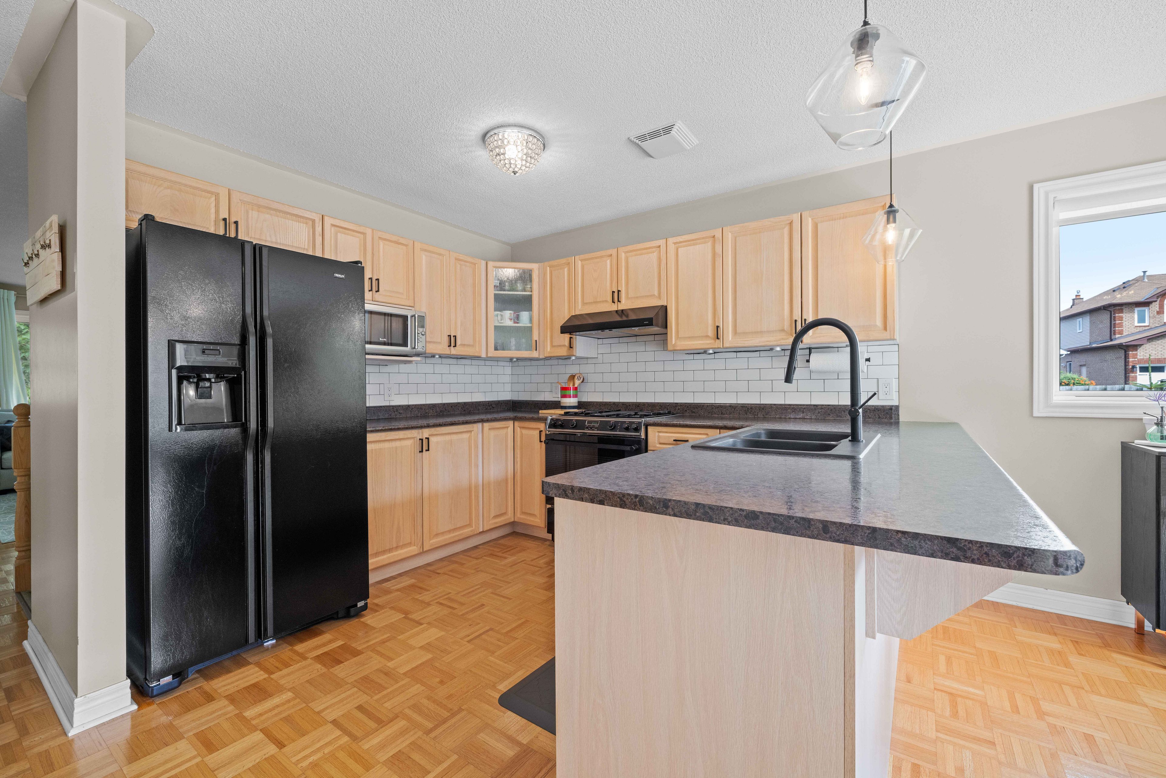 Situated on a large corner lot in peterborough's highly sought after west end, is 487 fortye drive - a beautifully landscaped and maintained bungalow. As you walk through the front door you are greeted by a spacious living room with large windows that flood in natural light. The living room then leads to both the kitchen and dining room, as well as the hallway to the main floor 4 piece bathroom, laundry room and separate garage entrance, secondary bedroom, and primary bedroom. The primary bedroom features an elegant 3 piece ensuite, his & hers closets, and a sliding door walkout to the backyard deck. The kitchen opens up to a dining area that faces out to the backyard through the sliding door walk out. Creating a stunning space for entertaining both inside and outside the home. In the finished basement you will find an additional 1 bedroom and a 3 piece bathroom perfect for guests, along with a large inviting rec room featuring a beautiful stone gas fireplace, and plenty of storage space.