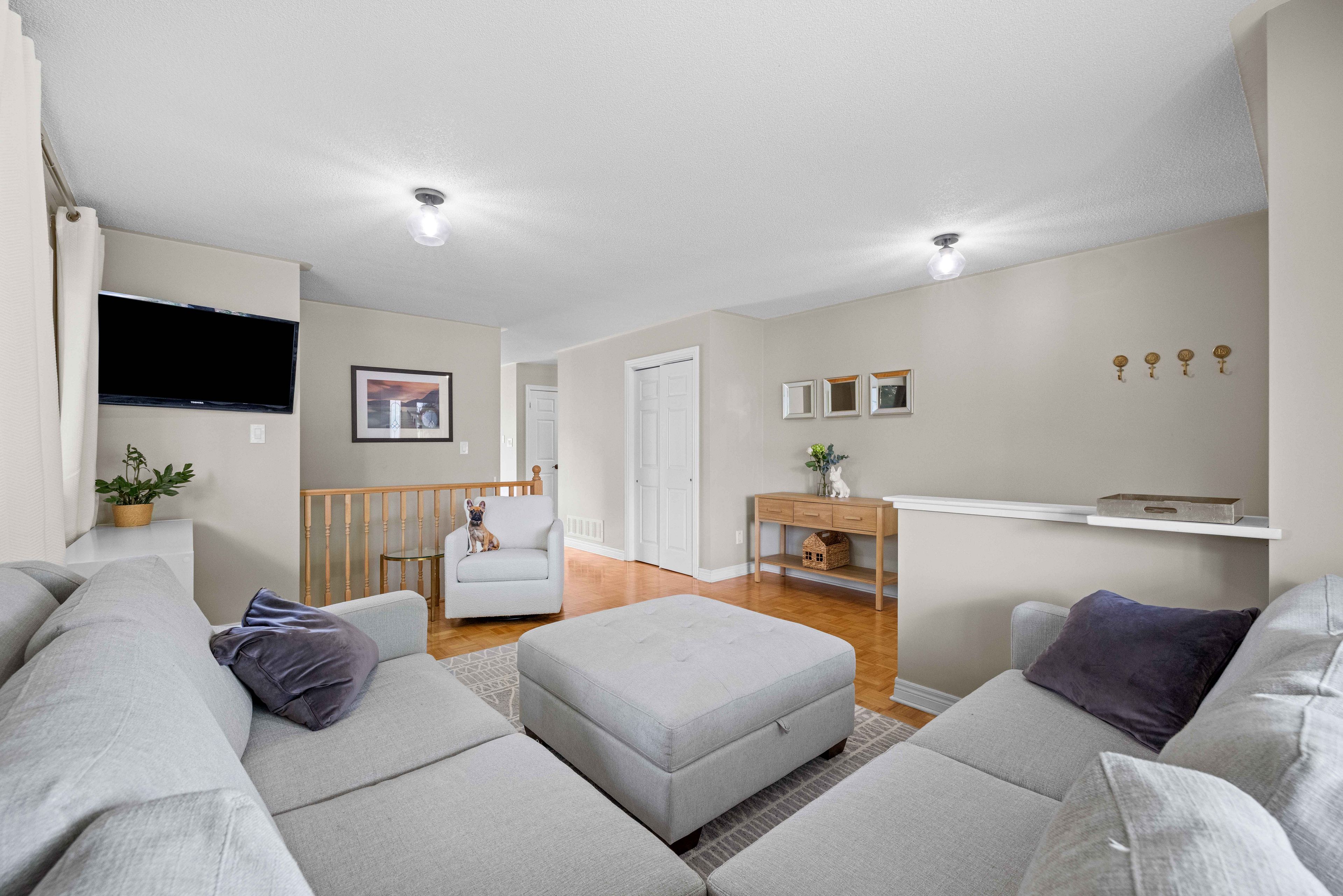 • Spacious living room with large windows for natural light.