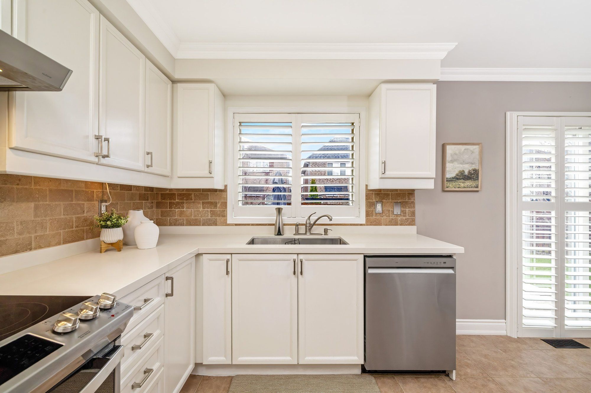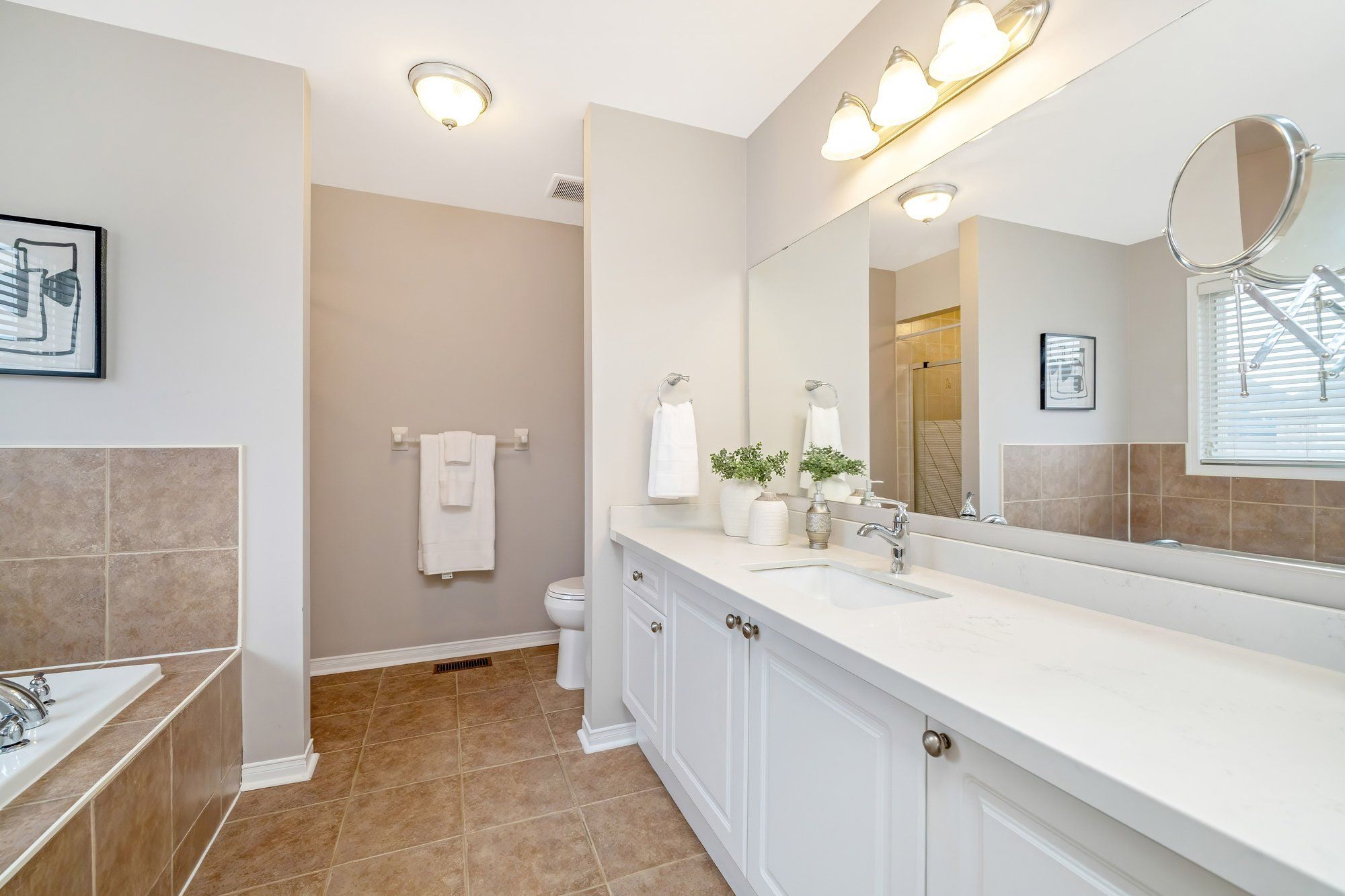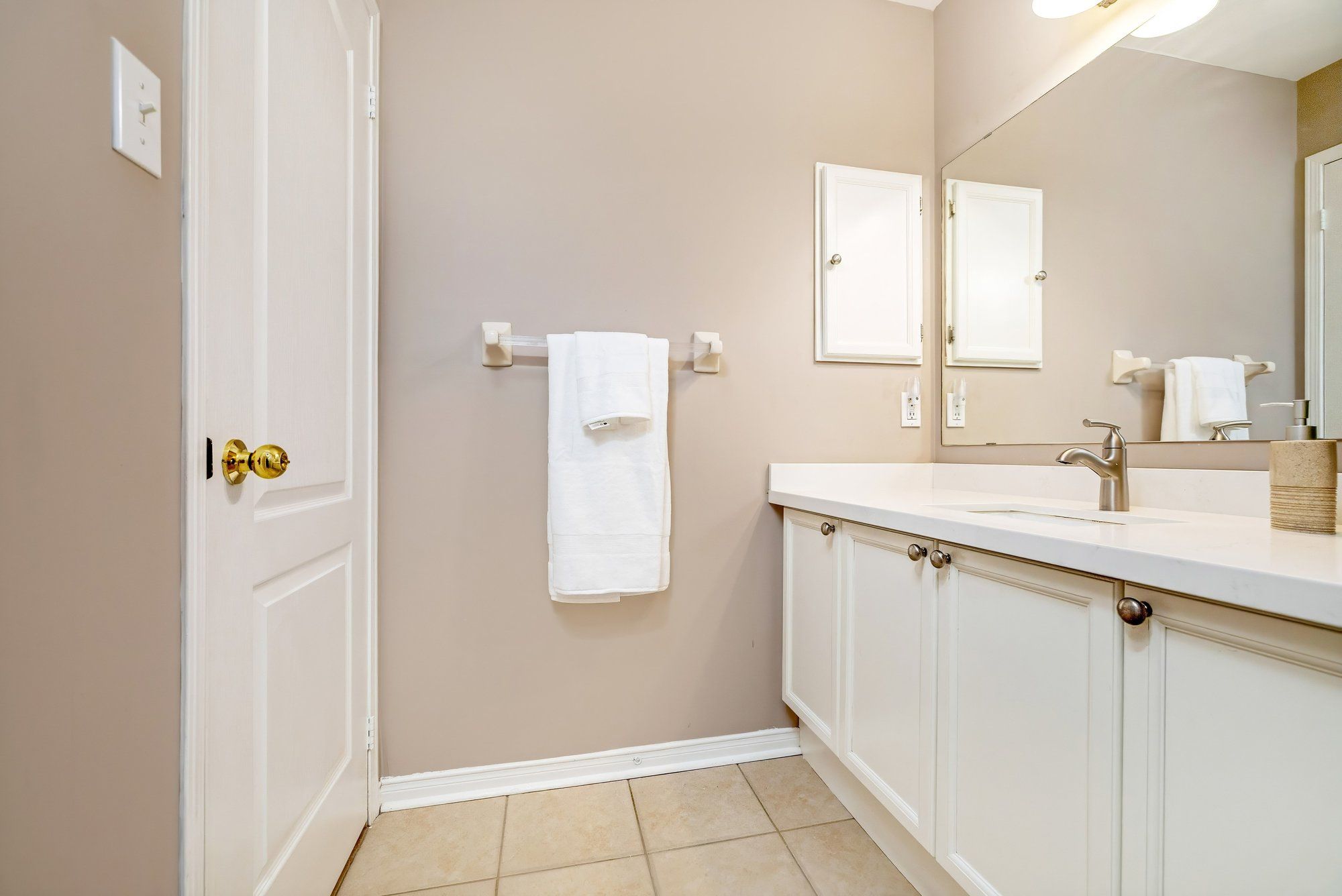 • Updated bathrooms with quartz counters and neutral paint tones.