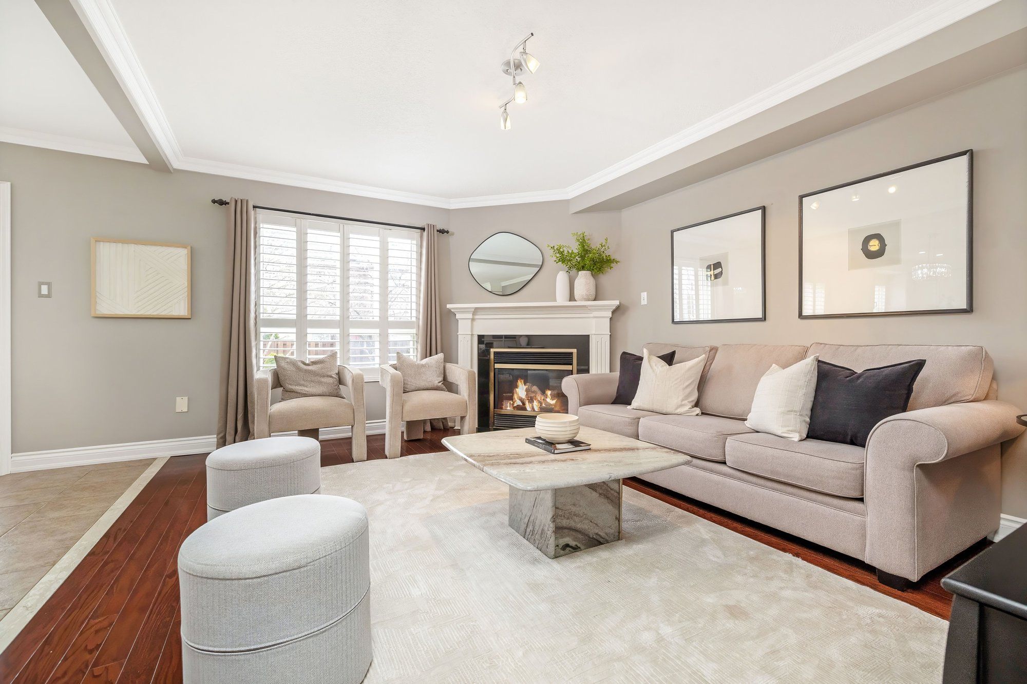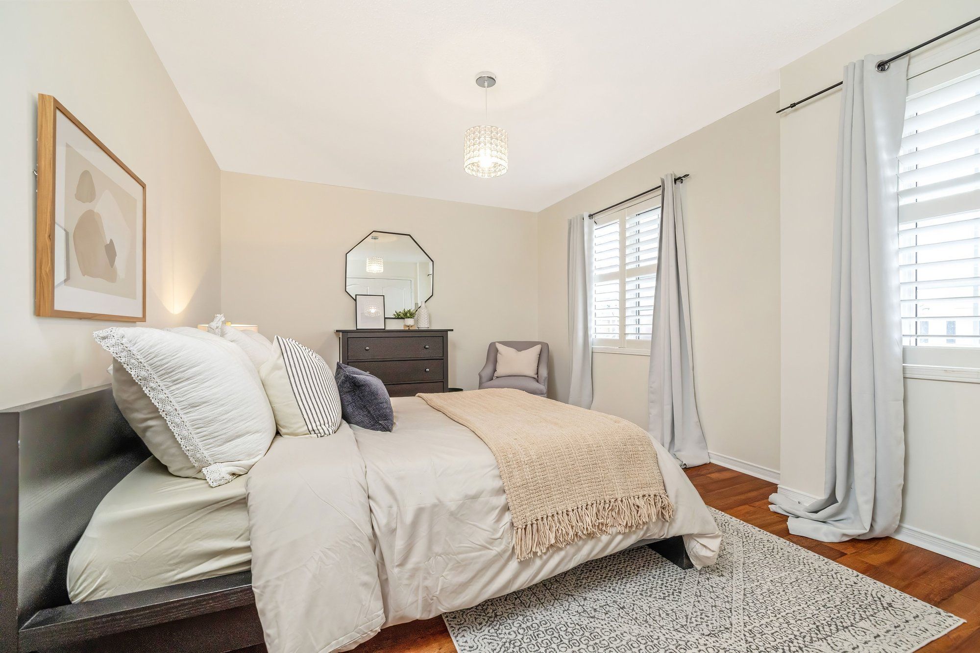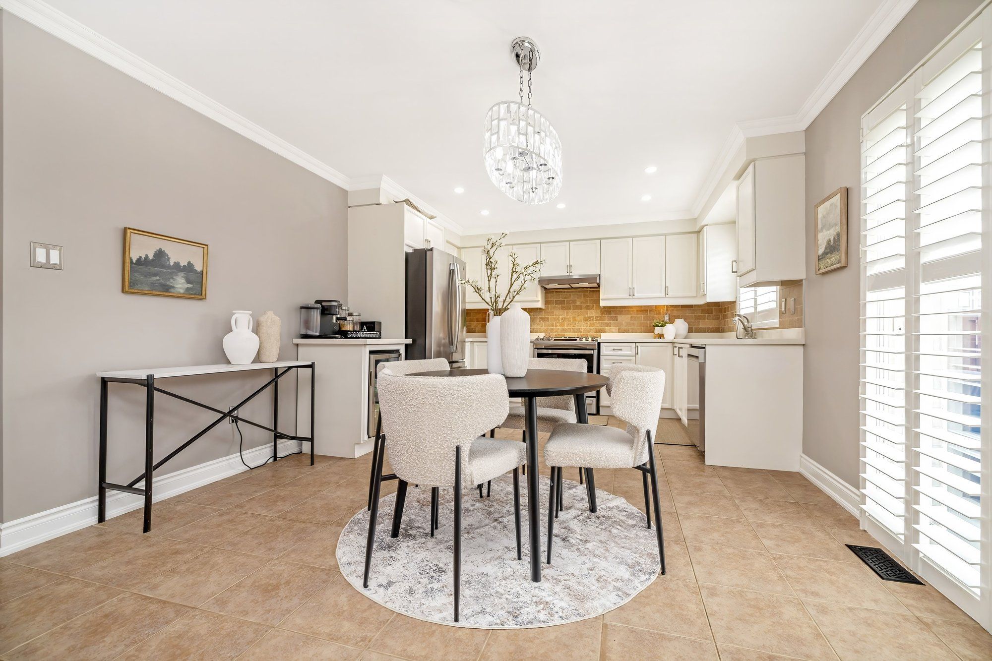 • Updated bathrooms with quartz counters and neutral paint tones.