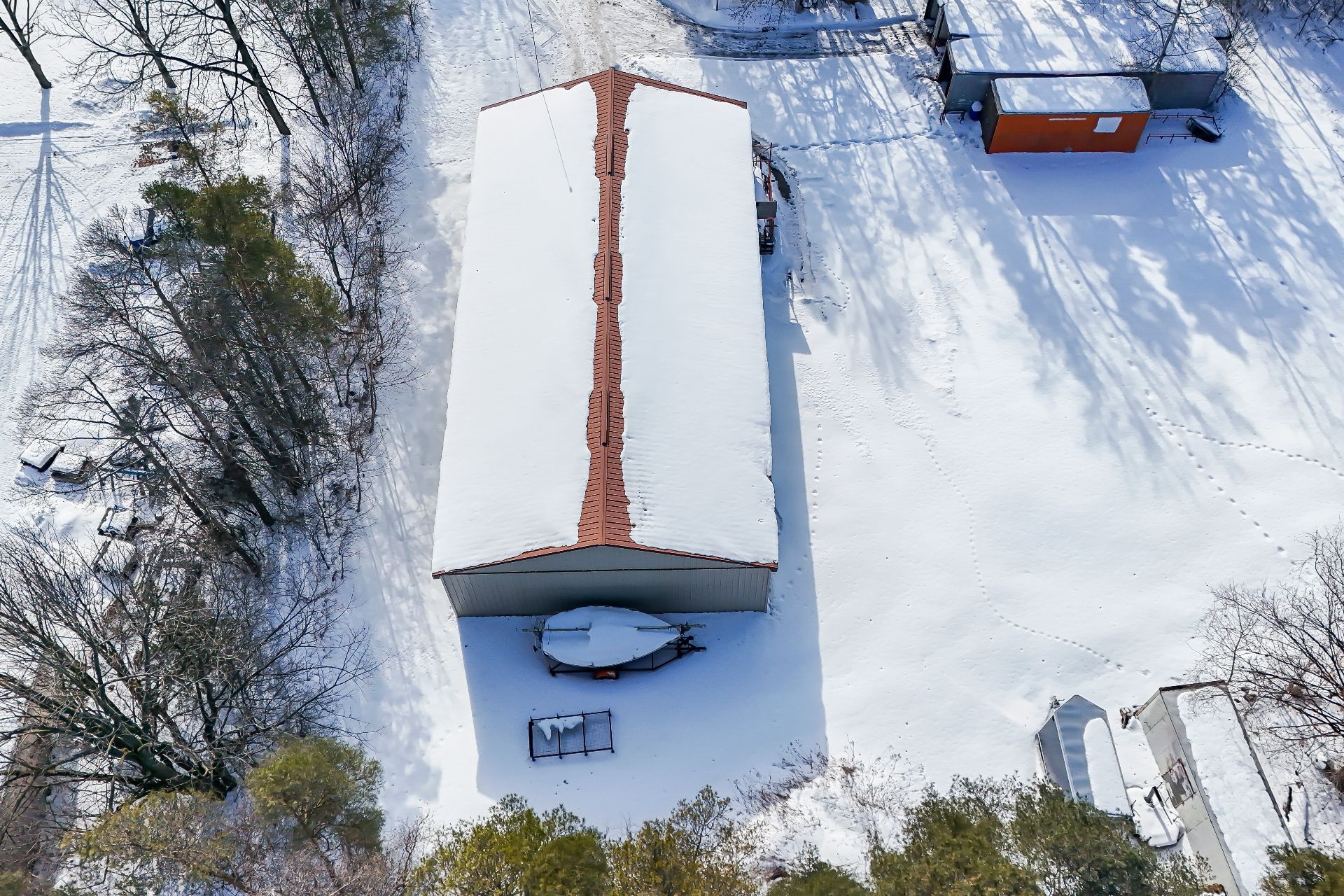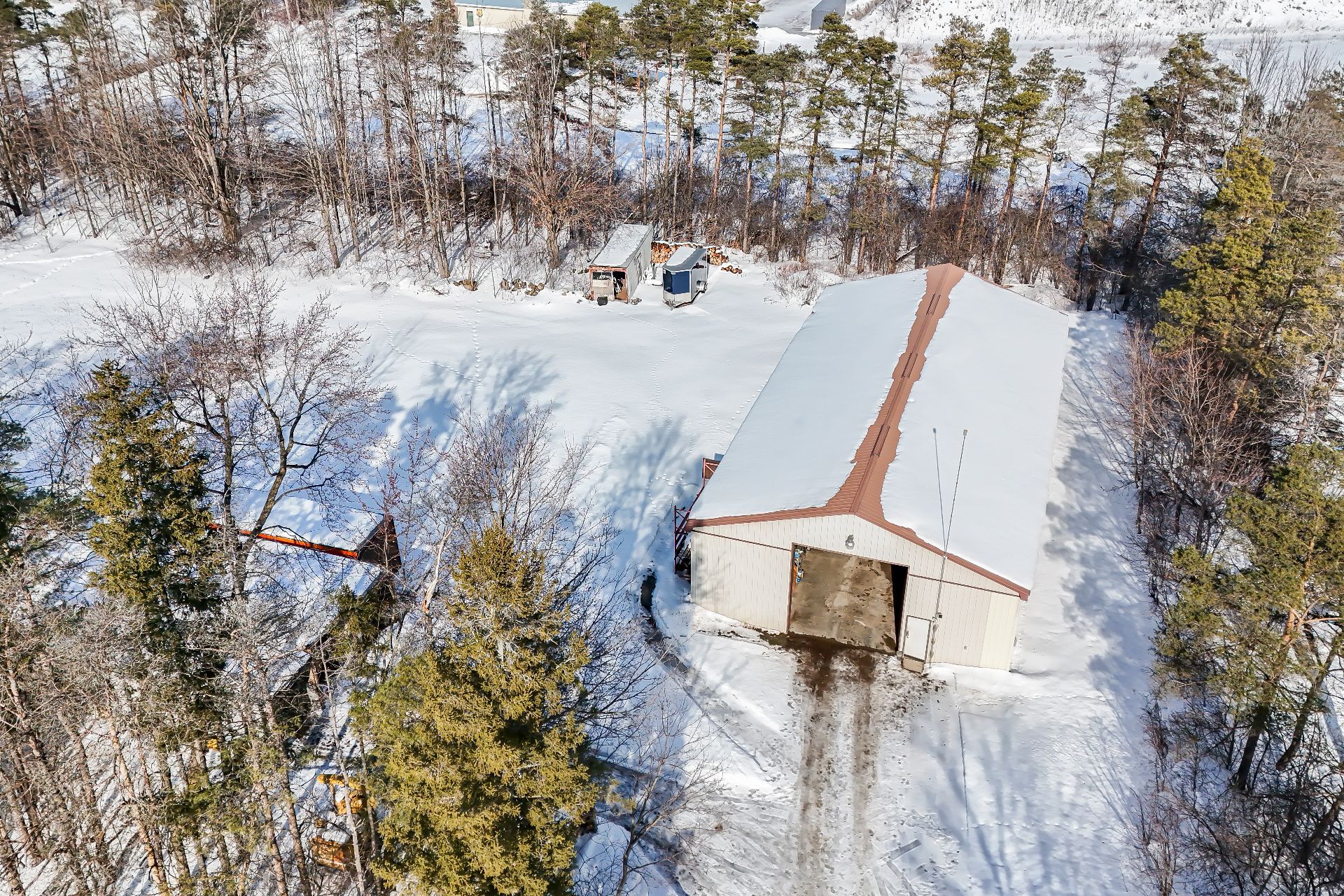 • Property includes ample parking for 20+ vehicles and outside storage options.