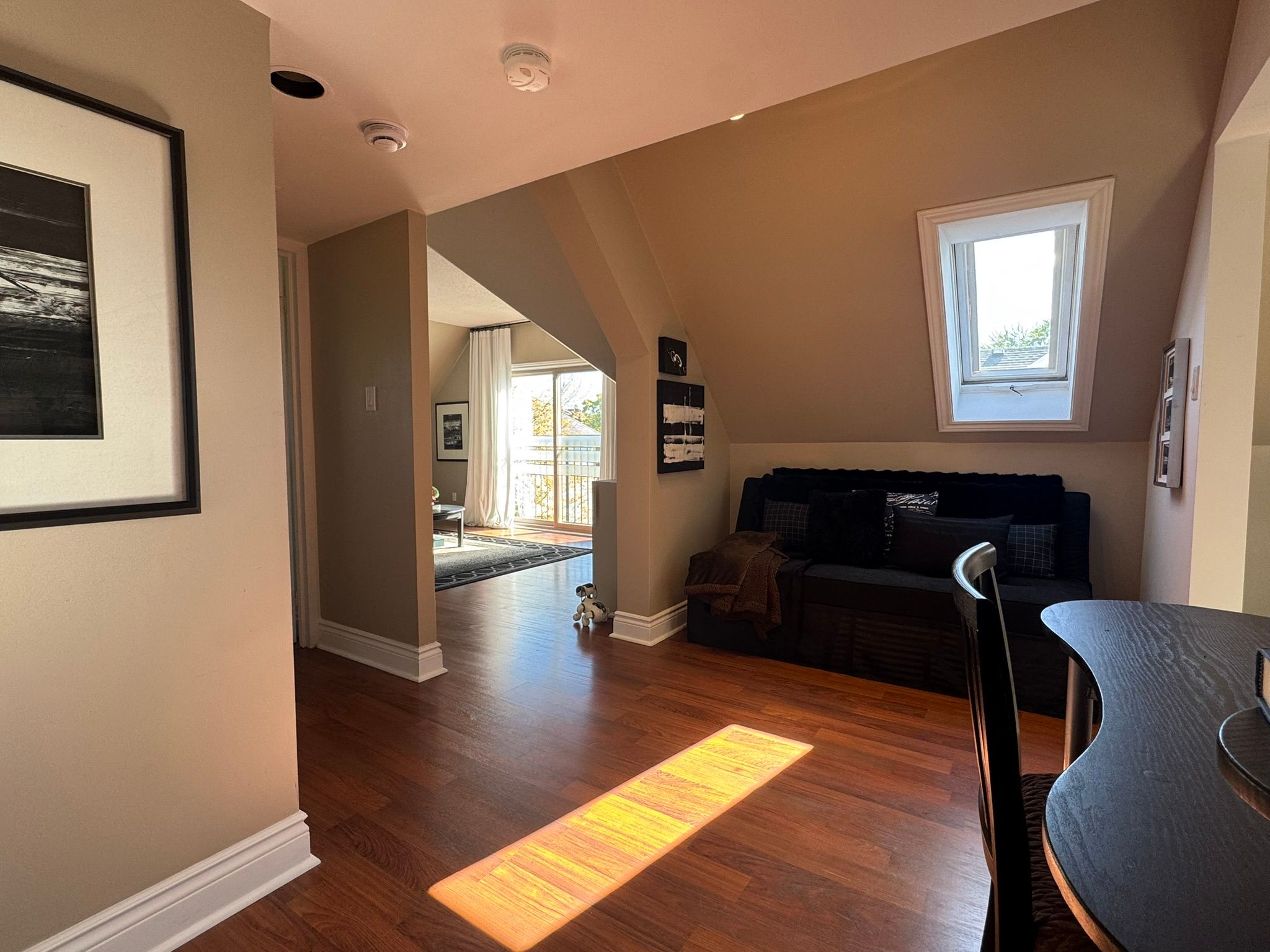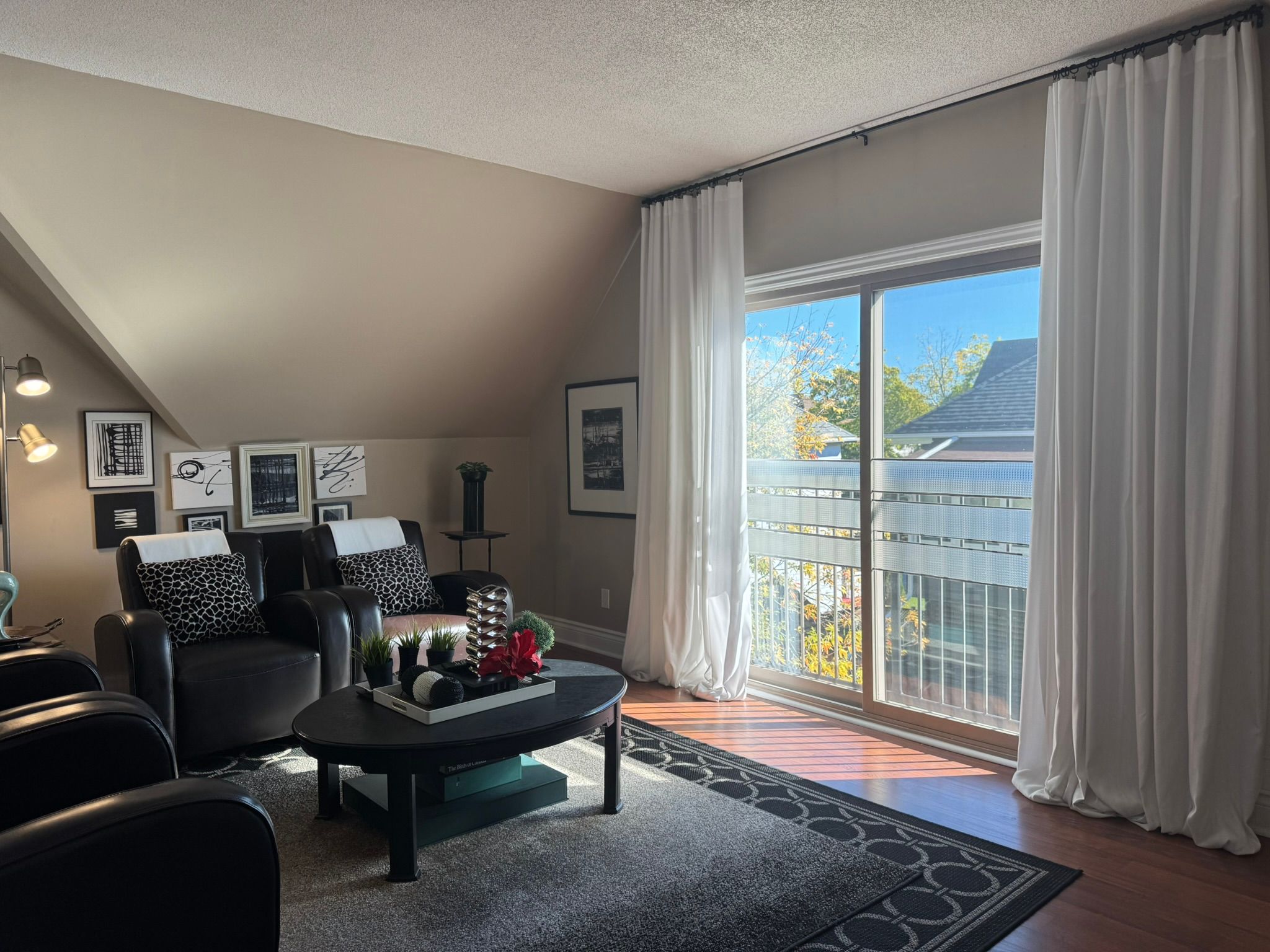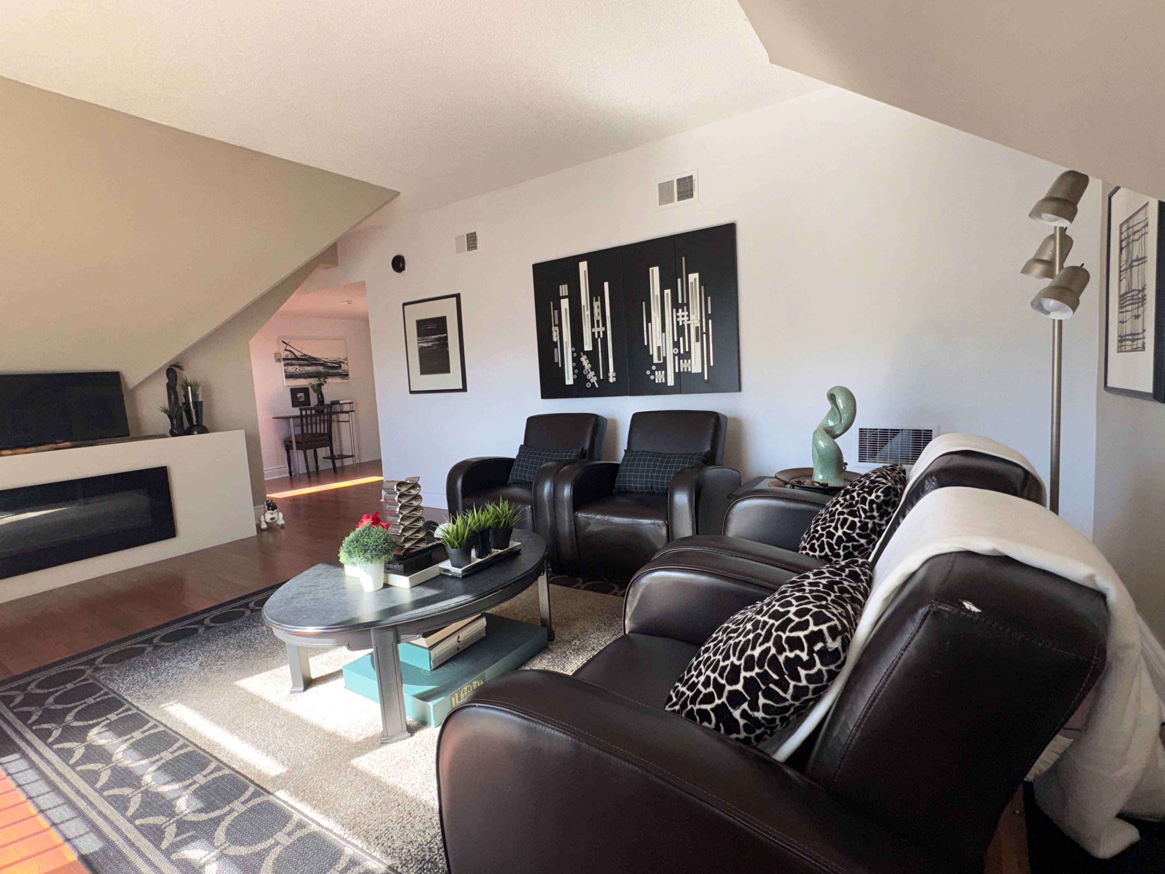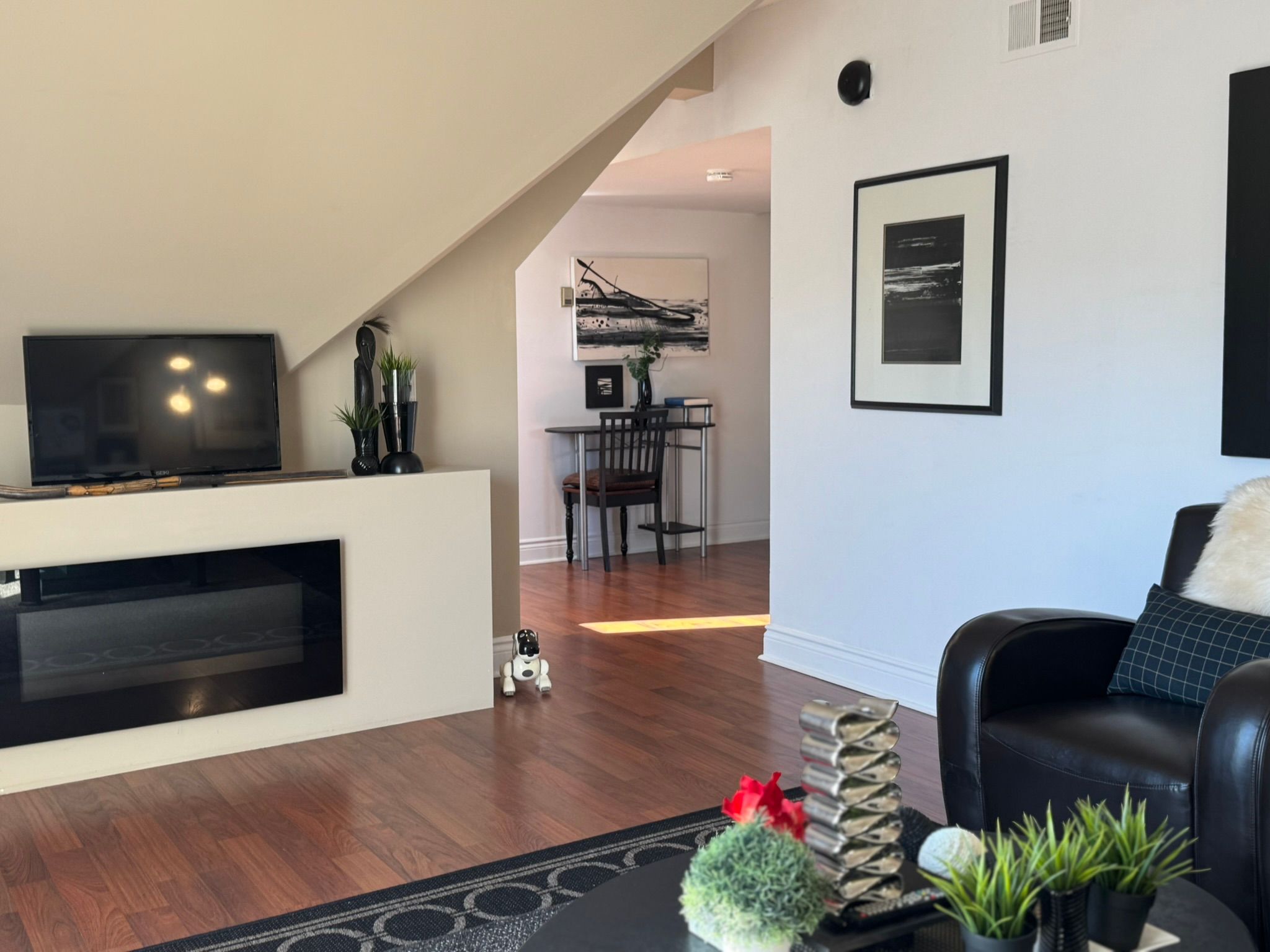 Modern, well-maintained condo apartment in a desirable building close to all the attractions, shops, and amenities of niagara falls. This 3rd floor end-unit offers extra privacy and a bright, spacious layout filled with natural light from well-lit windows. The home features an eat-in kitchen plus a versatile dining room/office, ceramic tile in the kitchen and bath, and quality laminate flooring throughout the living areas. The 18-ft living room with juliet balcony and built in fireplace is a standout, along with a double closet in the bedroom and convenient utility/storage space off the dining area/hallway. Appliances are included, along with a free-standing a/c unit and a window unit. Enjoy an exclusive covered parking spot, secure building entry, and pride of ownership in one of the best-maintained units in the building. Most furniture and décor is included in the sale. Attractively decorated and move-in ready, this is a surprisingly spacious and comfortable home- close to everything niagara falls has to offer