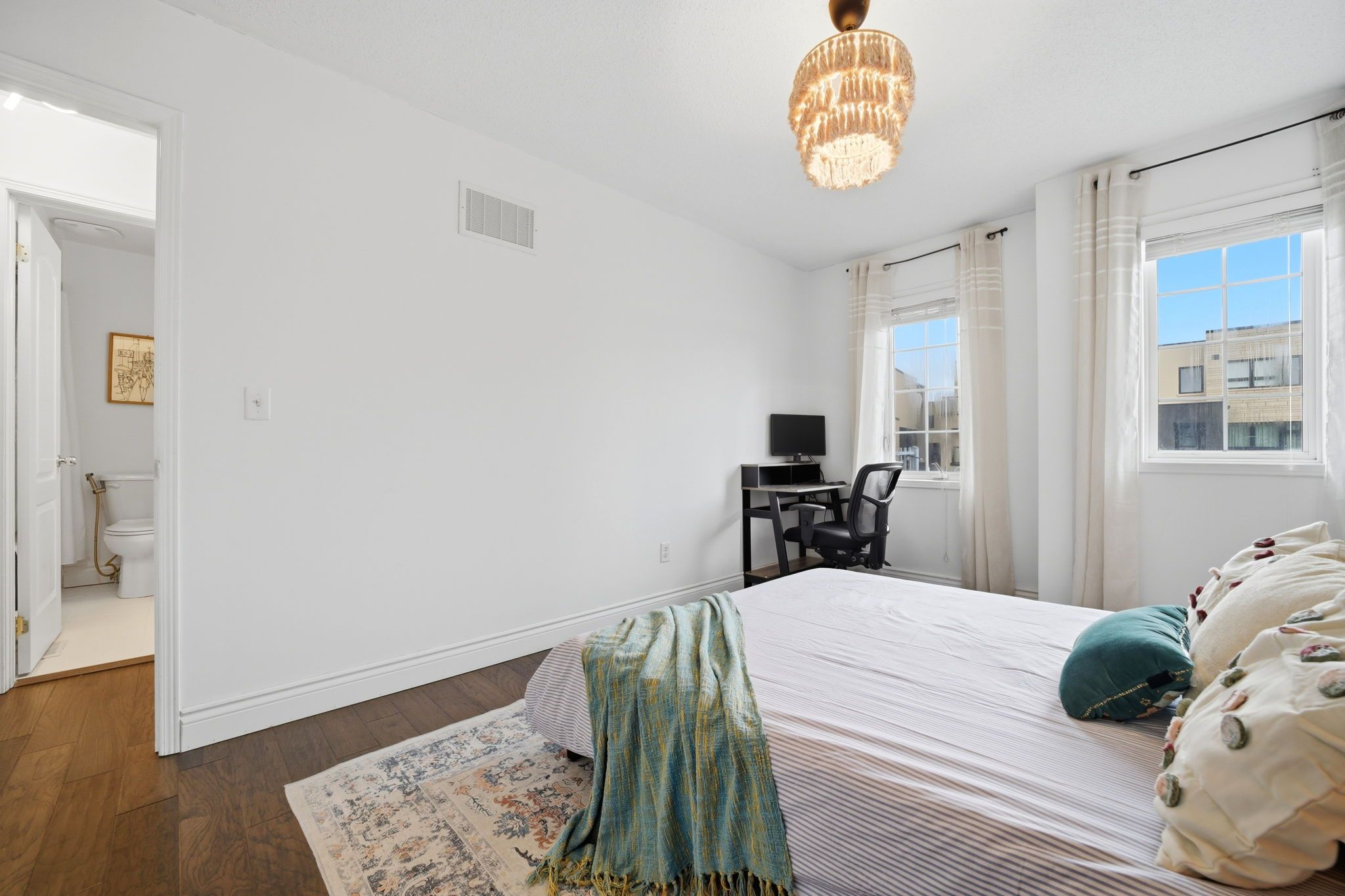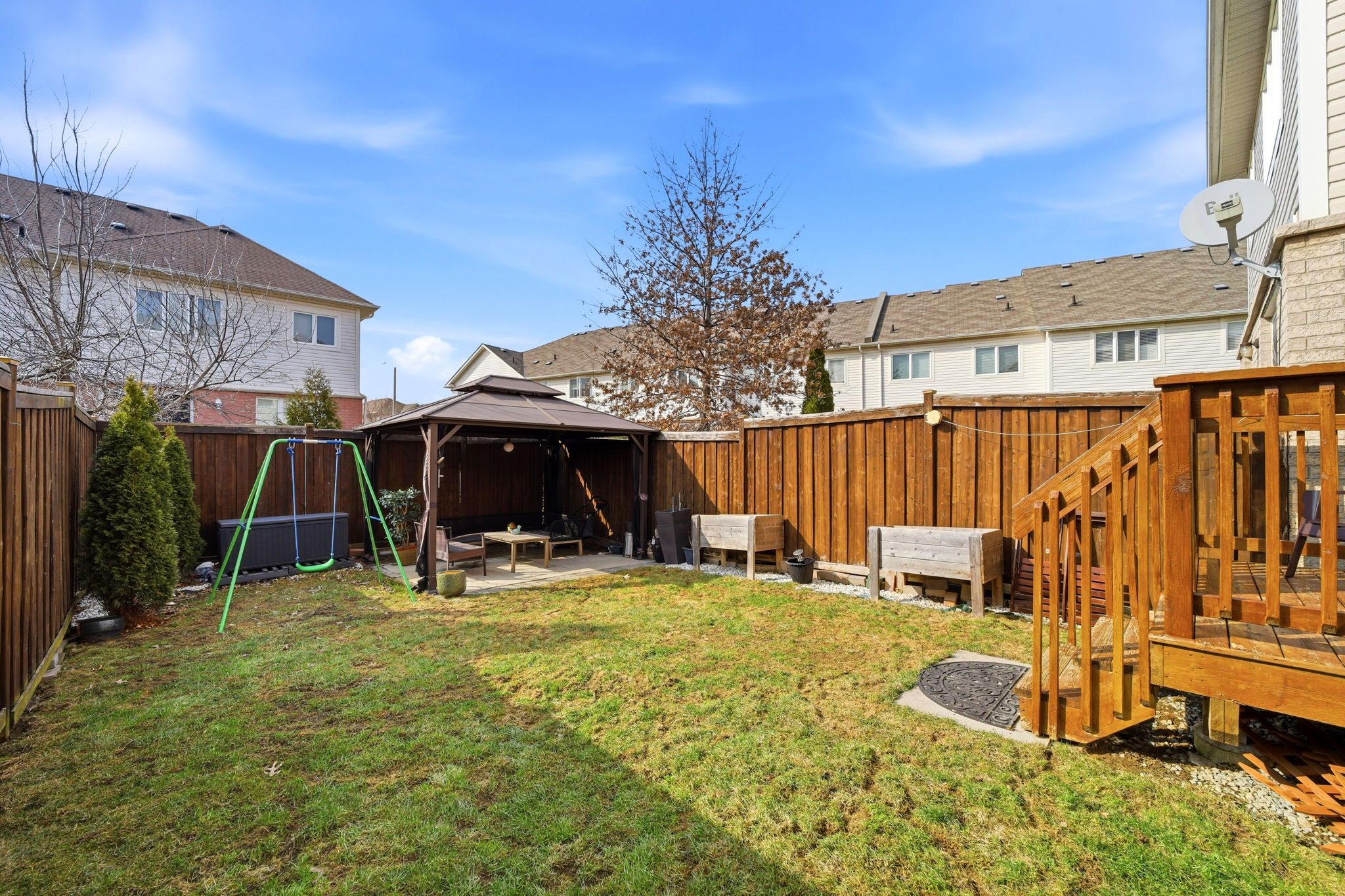 Welcome to this beautifully upgraded freehold townhome in burlington's highly desirable alton village. Ideally located as the second-last unit in the row, this stunning home offers privacy, modern finishes, and true turnkey living. Step inside to discover hardwood flooring throughout the entire home and a thoughtfully upgraded kitchen featuring quartz countertops, white cabinetry, stylish backsplash, and stainless steel appliances-perfect for everyday living and entertaining. The home offers 3 spacious bedrooms and 4 well-appointed bathrooms, including a luxury primary ensuite with glass shower and quartz vanity, recently renovated to deliver a high-end spa-like experience. The professionally finished basement expands your living space with a versatile recreation area, dedicated home office, and a full 3-piece bathroom-ideal for work-from-home professionals or hosting guests. Enjoy the fully fenced backyard with gazebo, perfect for relaxing or entertaining outdoors. Located within minutes of major amenities including walmart, no frills, winners, shoppers drug mart and numerous shops, plus walking distance to trails and pond. Convenient school bus route with bus stop just steps away. A rare opportunity to own a move-in ready upgraded home in one of burlington's most family-friendly communities.