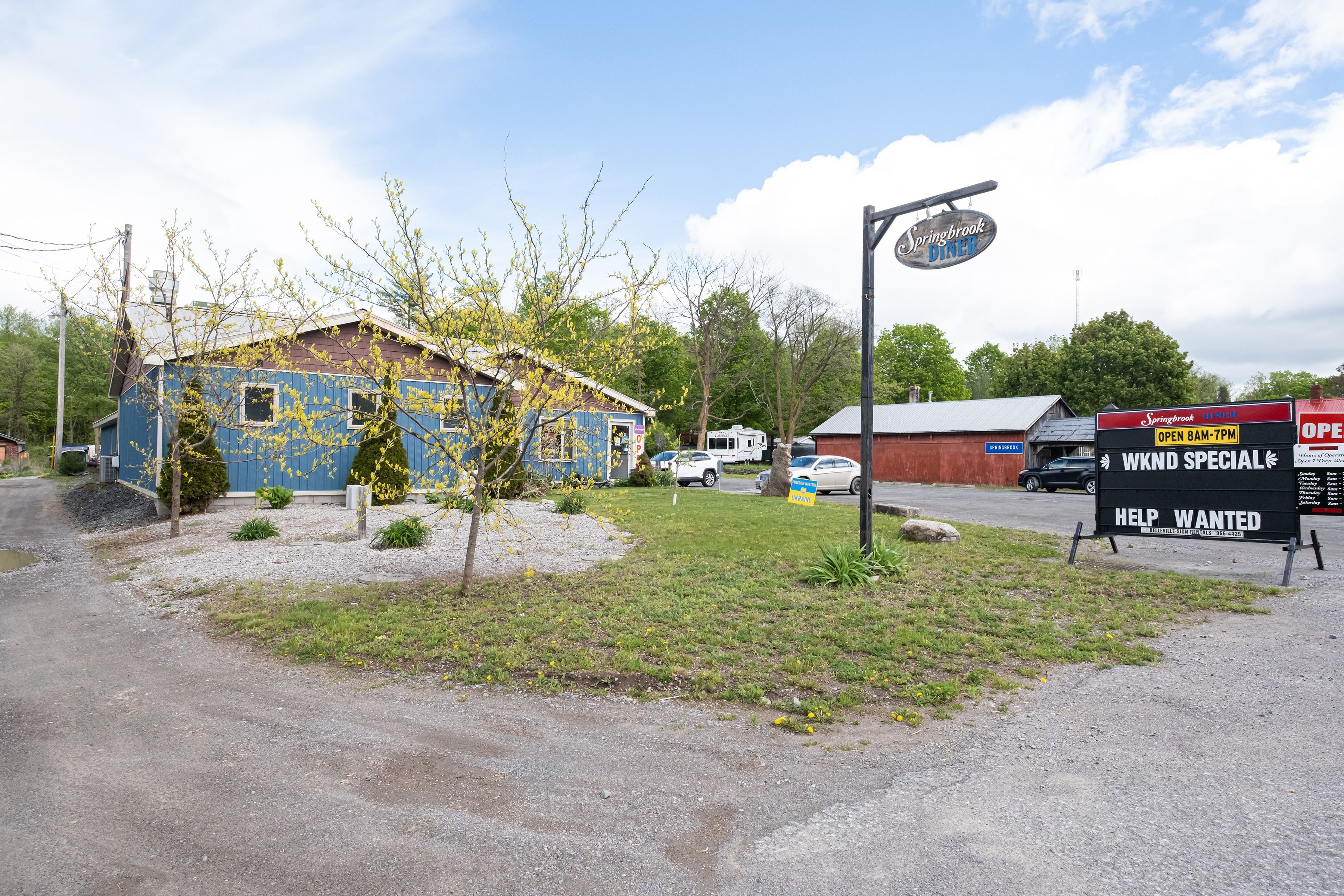 Springbrook diner has long been a popular destination for both locals and travelers, known for its great food and welcoming atmosphere. Ideally situated on a well-traveled route frequented by cottagers, sports teams, and tourists, this property features a successful restaurant and a spacious banquet hall that accommodates over 100 guests. Included with the business is a well-maintained 3-bedroom residence perfect for owner occupancy or as a source of rental income. The restaurant offers excellent visibility, plenty of parking, and has benefited from numerous recent updates to the building. This is a fantastic opportunity to own a thriving, turnkey business and take control of your future.