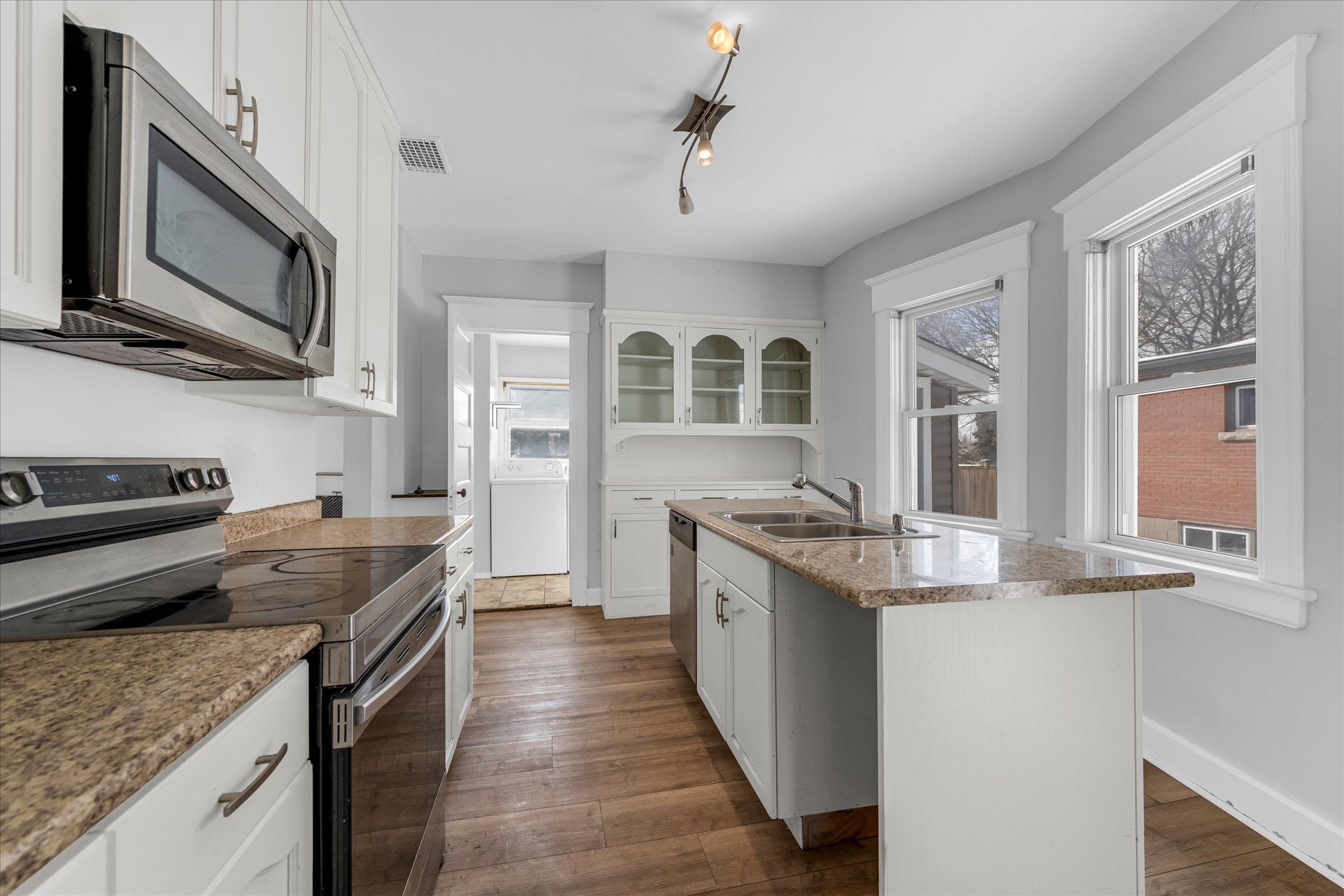 • Bright kitchen with lots of countertop and cabinet space.