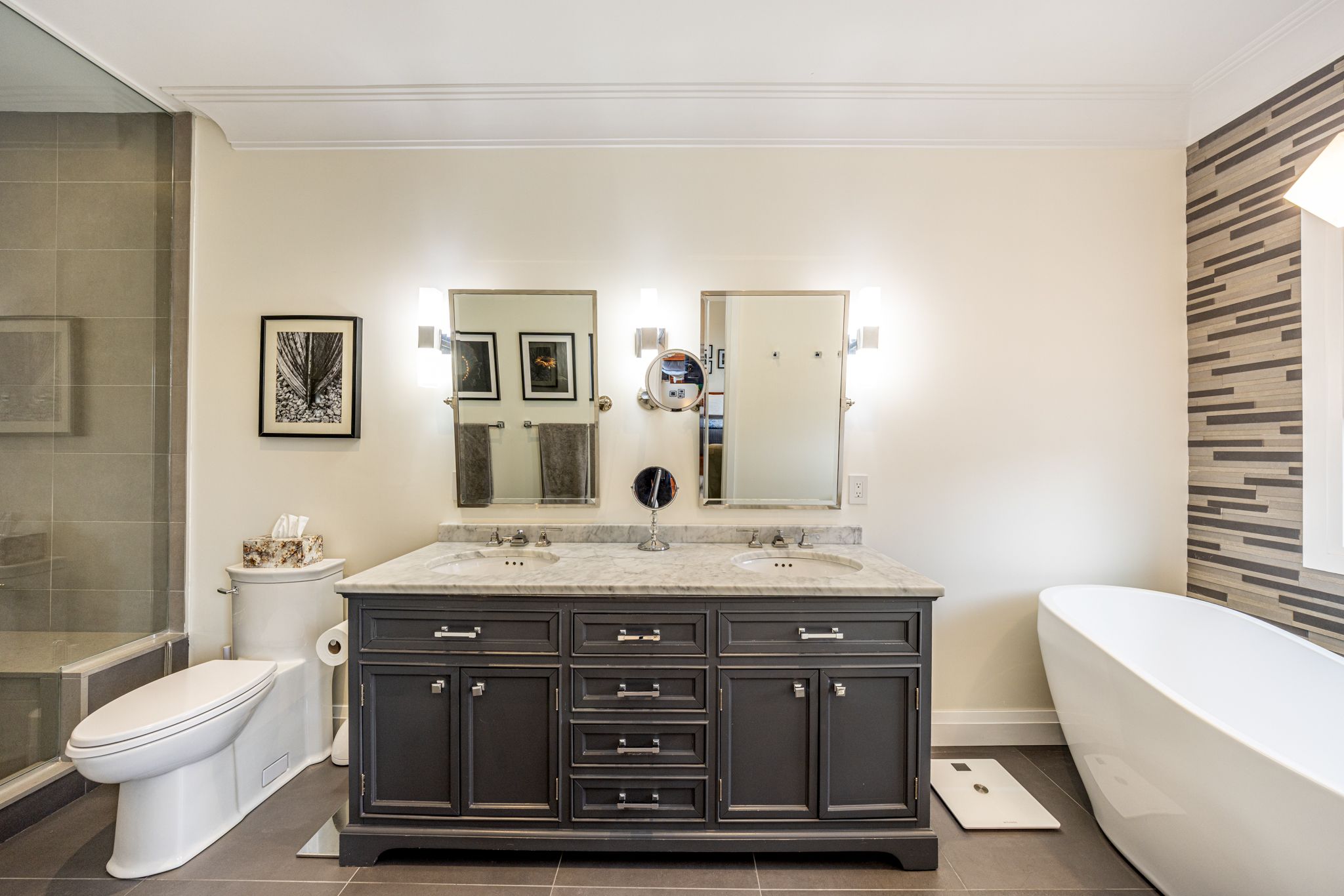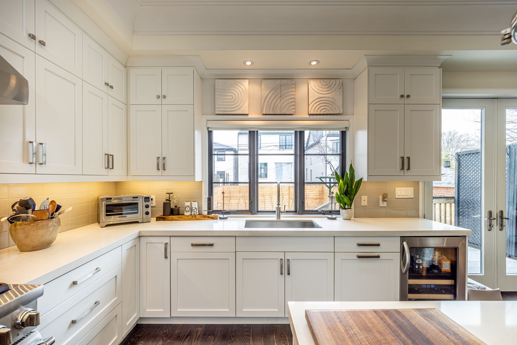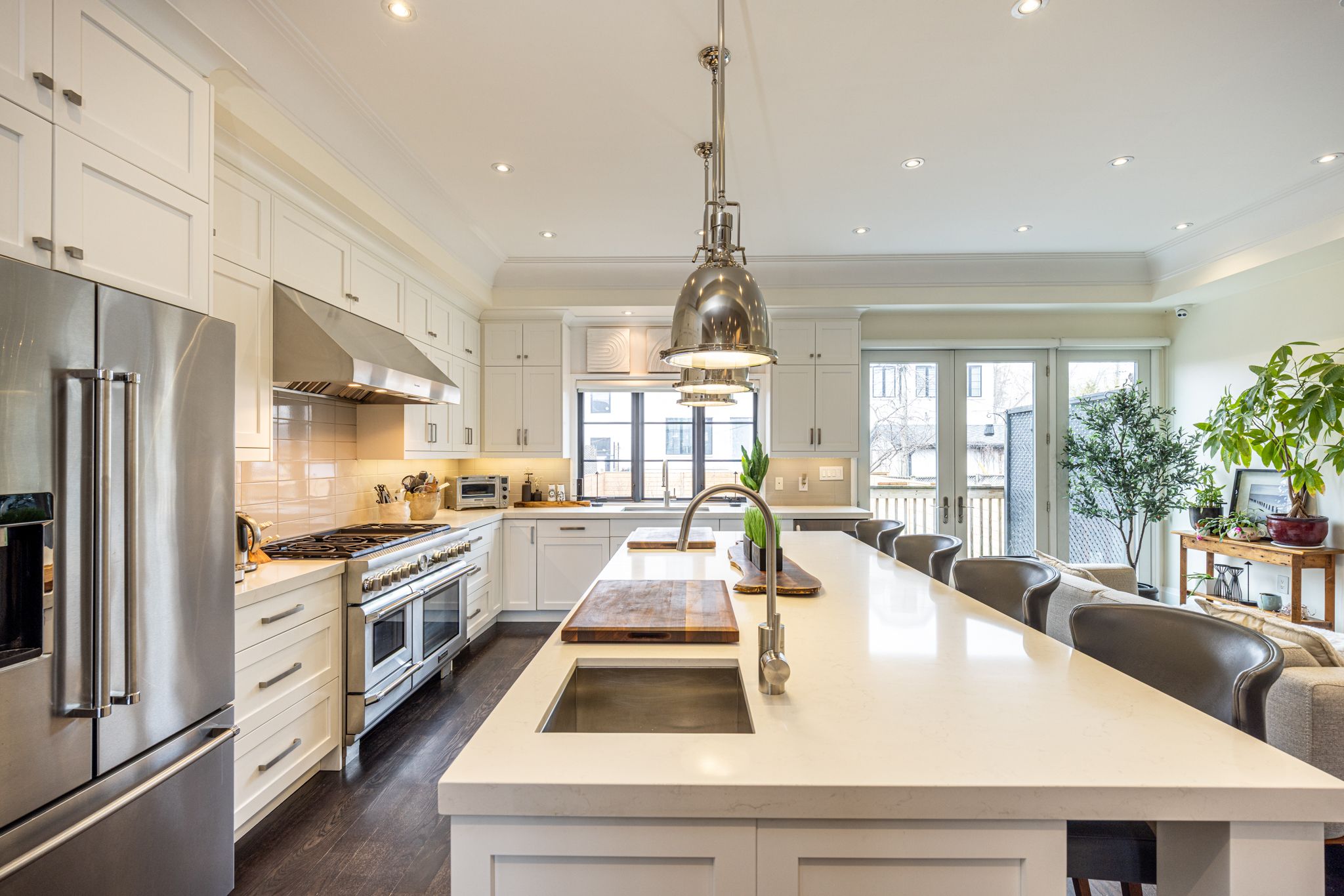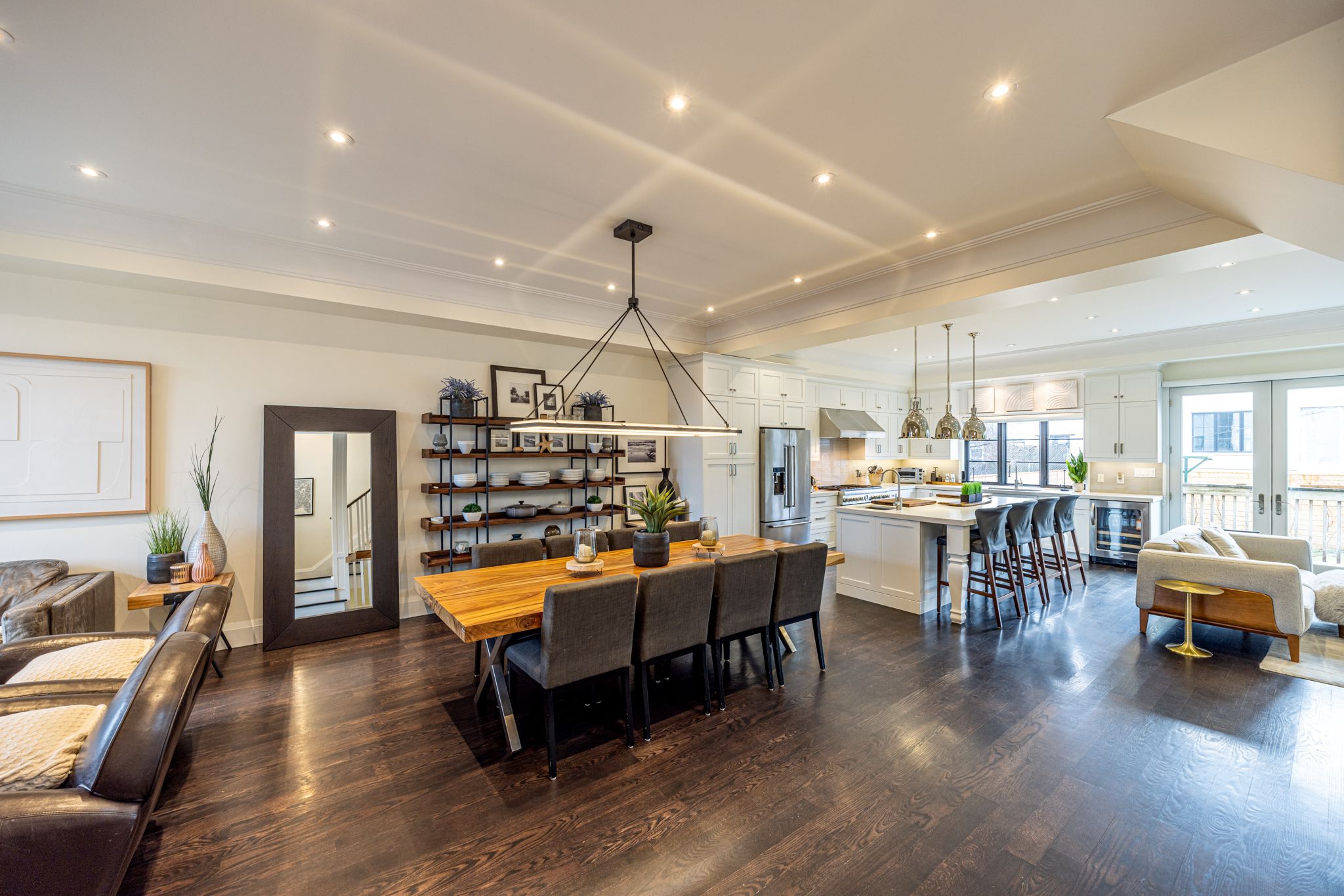 Exquisitely custom built ten years ago from the ground up (on original foundation walls) and with 9' added to the footprint, the fastidious sellers made certain this gorgeous family home had all the bells and whistles to exude a thoughtfully warm and contemporary feel throughout. There are so many "wow" factors from the moment you step into this house: the exciting open concept main level encourages large family gatherings and entertaining en-masse anchored by a true gourmet kitchen and large dining room. Soaring ceiling heights, crown mouldings, an abundance of recessed lighting and gleaming hardwood floors are just a few of the highlights. The lower level is a true paradise for any sports and/or movie enthusiast with a huge entertainment area, side-by-side wall mounted and independently tilting televisions, sonos soundbar, subwoofer, built-in speakers. Located directly across from arlington parkette on a wonderful little cul-de-sac, this fabulously located home is also just mere steps to the leo baeck day school, cedarvale park, tennis courts, phil white arena. Extensive front landscaping includes trees, plants, an irrigation system, landscape and driveway lighting.