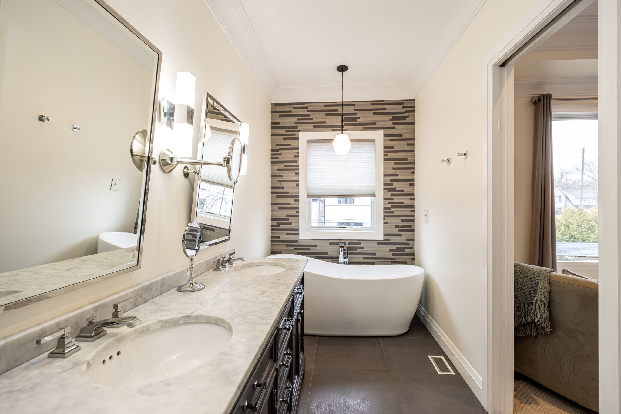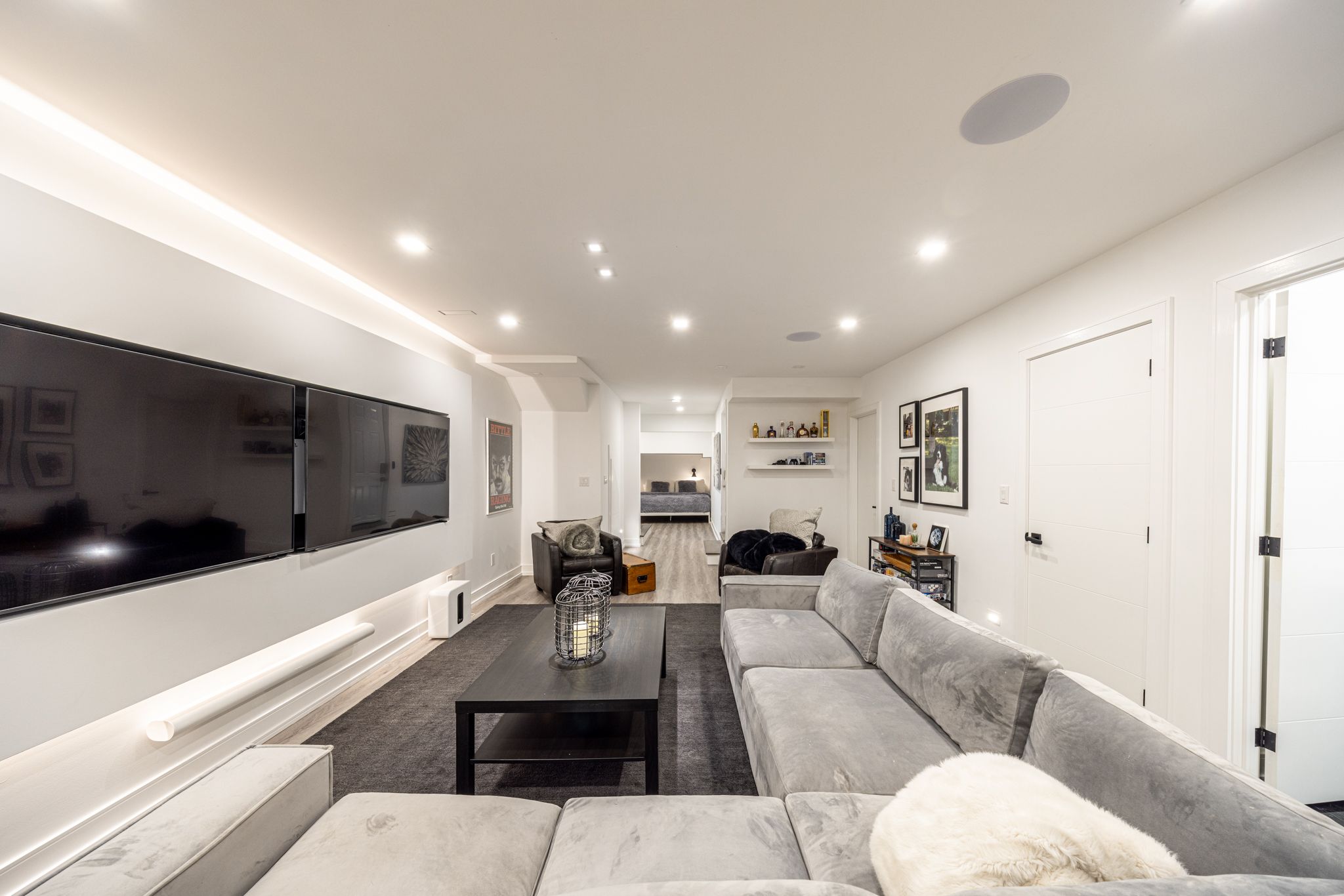 • Entertainment-ready lower level with advanced audio-visual setup.