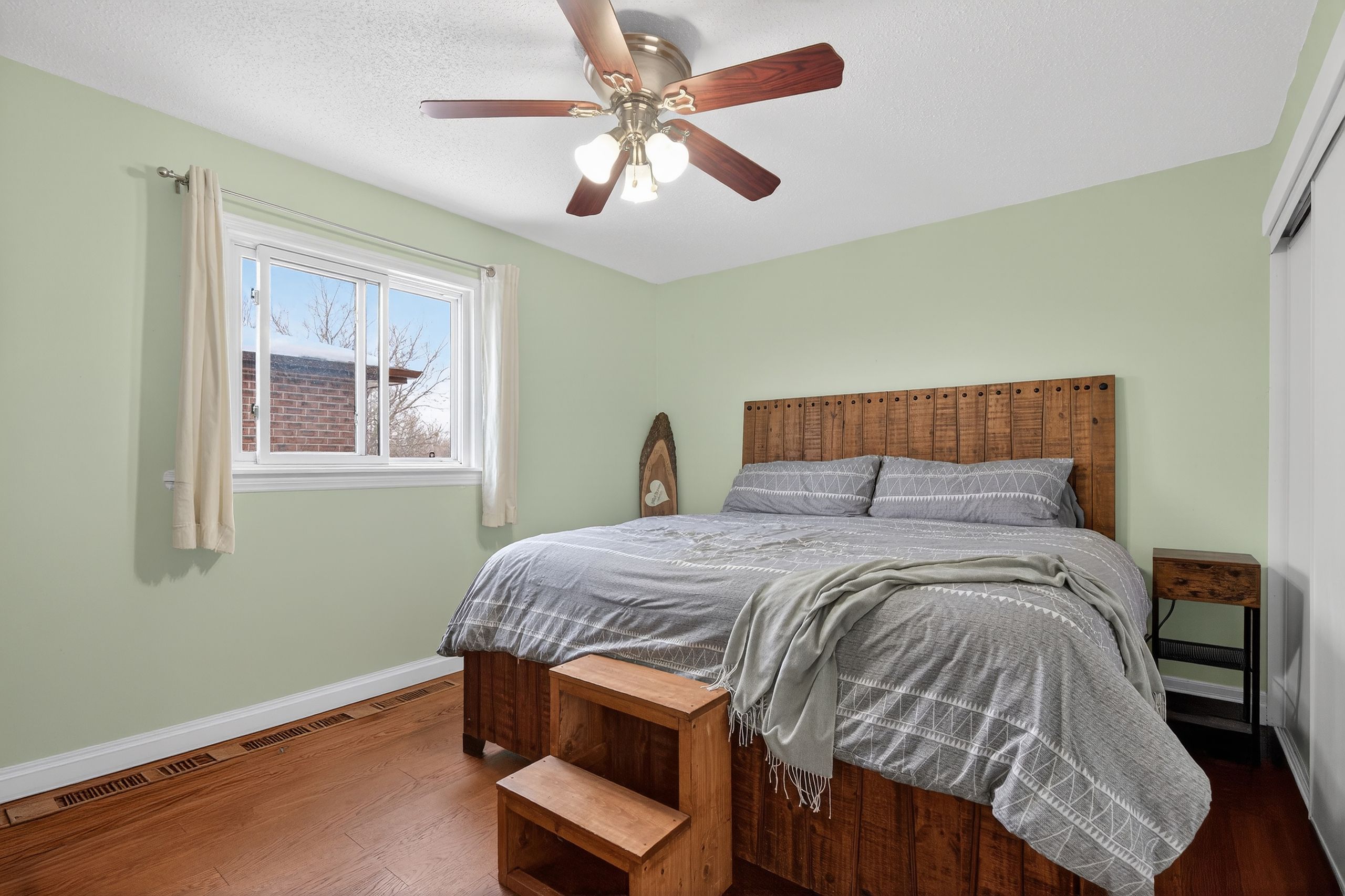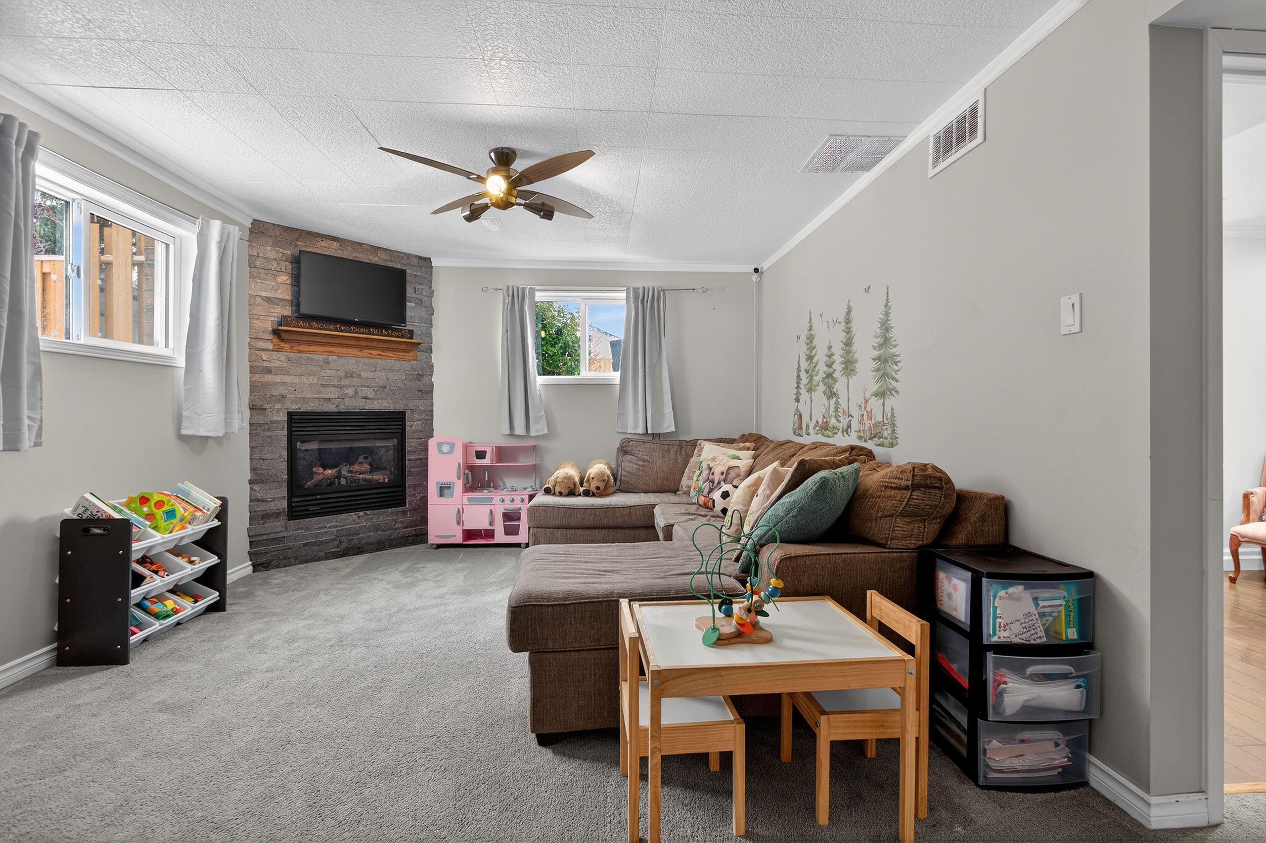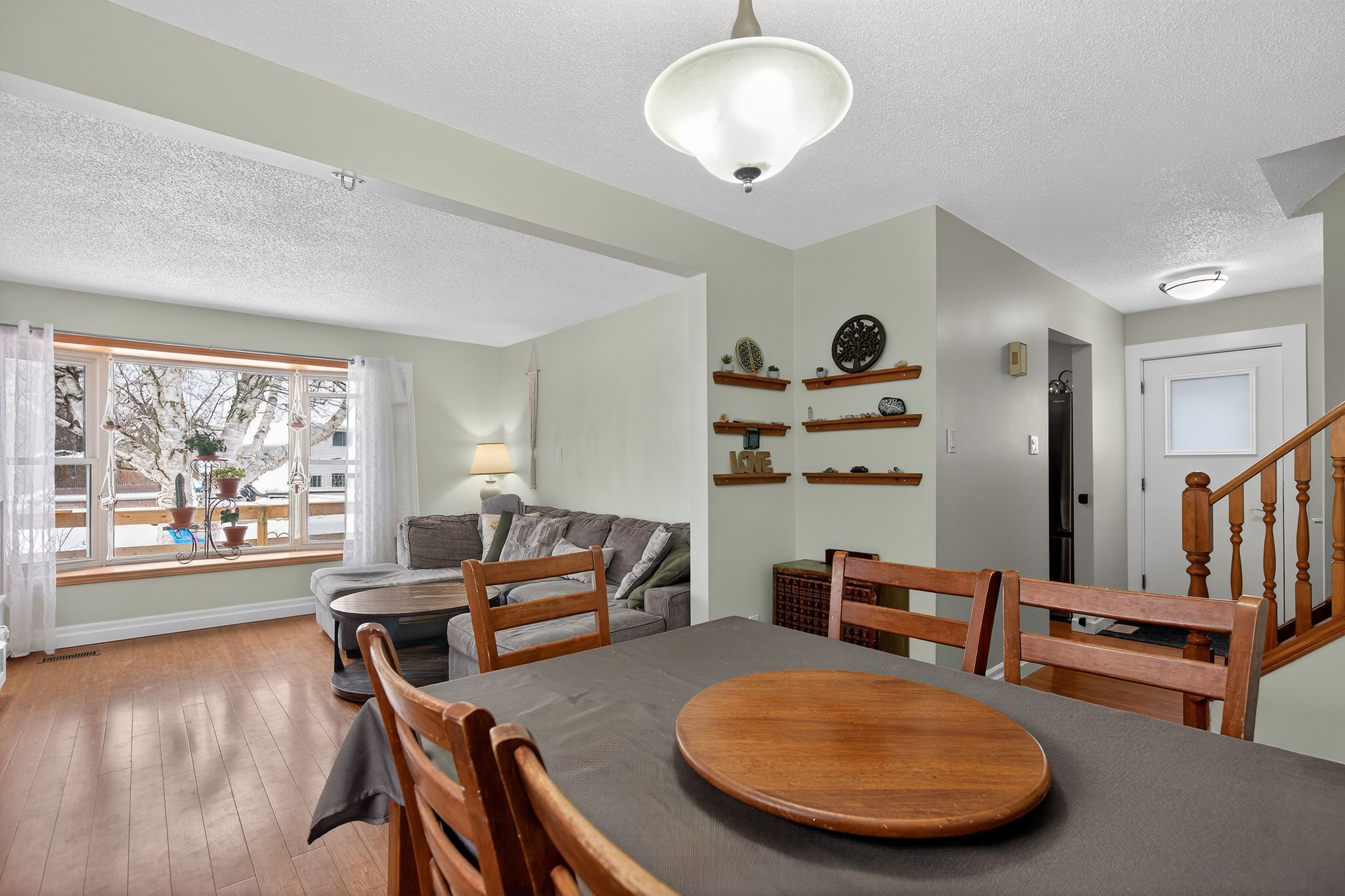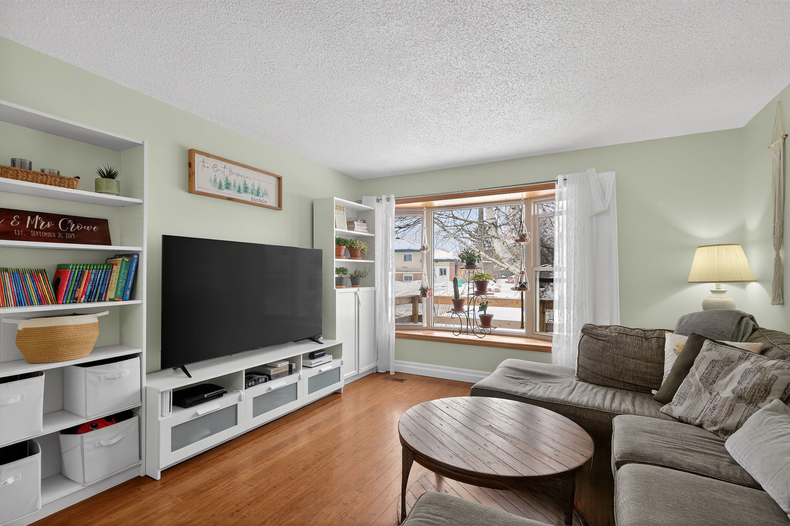 This immaculate 4 level back-split offers 3 bedrooms, 2 updated bathrooms, and a private fully fenced backyard, complete with a welcoming front porch. Convenient location: across from kiwanis park (featuring baseball diamond, basketball court and playground), walking distance to both catholic and public elementary schools, close to highway 115 and all amenities. The main floor features a bright living room and dining room, an updated kitchen with refaced cabinetry, new hardware, updated countertops and backsplash, along with a custom front closet/mudroom for added functionality. The upper level includes a spacious primary bedroom, a second bedroom, updated flooring, and a beautifully renovated 5 piece bathroom with a double sink vanity, modern tile work and a rainfall shower. The first lower level boasts a comfortable rec room with a cozy gas fire place and built in shelving, plus a third bedroom with its own ensuite bathroom, ideal for guests or teens. The second lower level offers laundry, ample storage and two additional flexible rooms, perfect for an office, gym or hobby space. Most windows have been replaced and the furnace was updated in 2022, making this home truly move in ready.