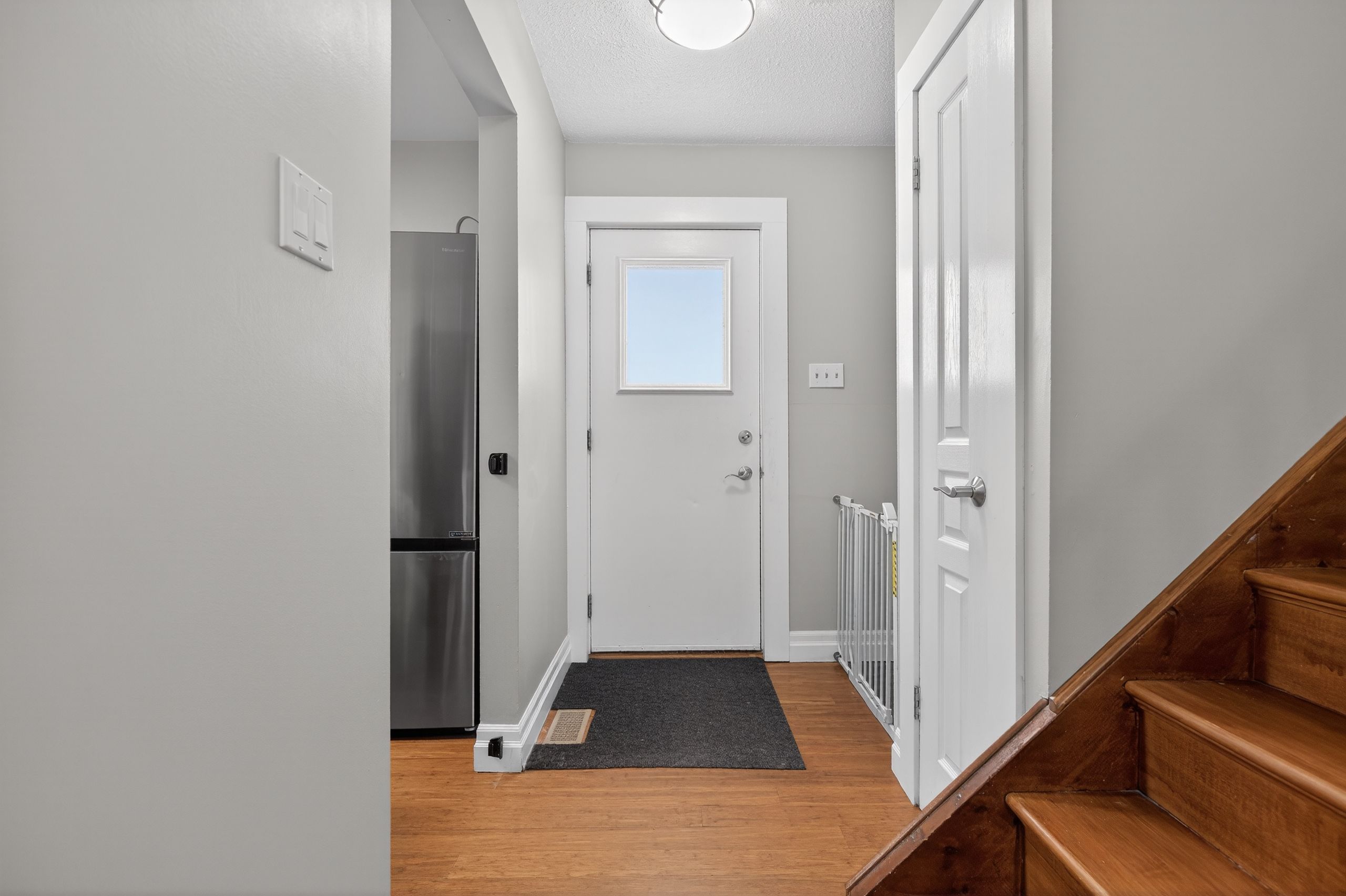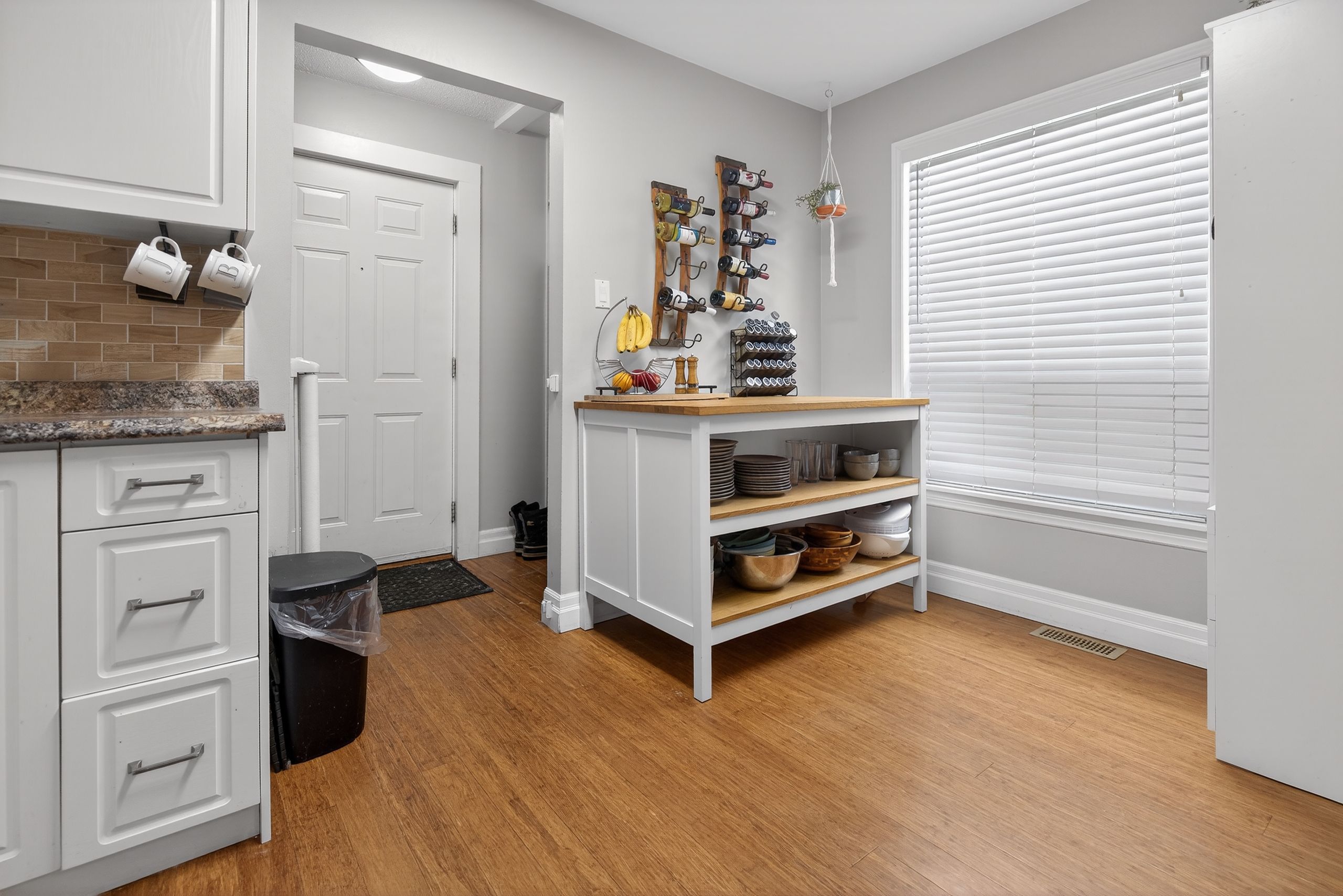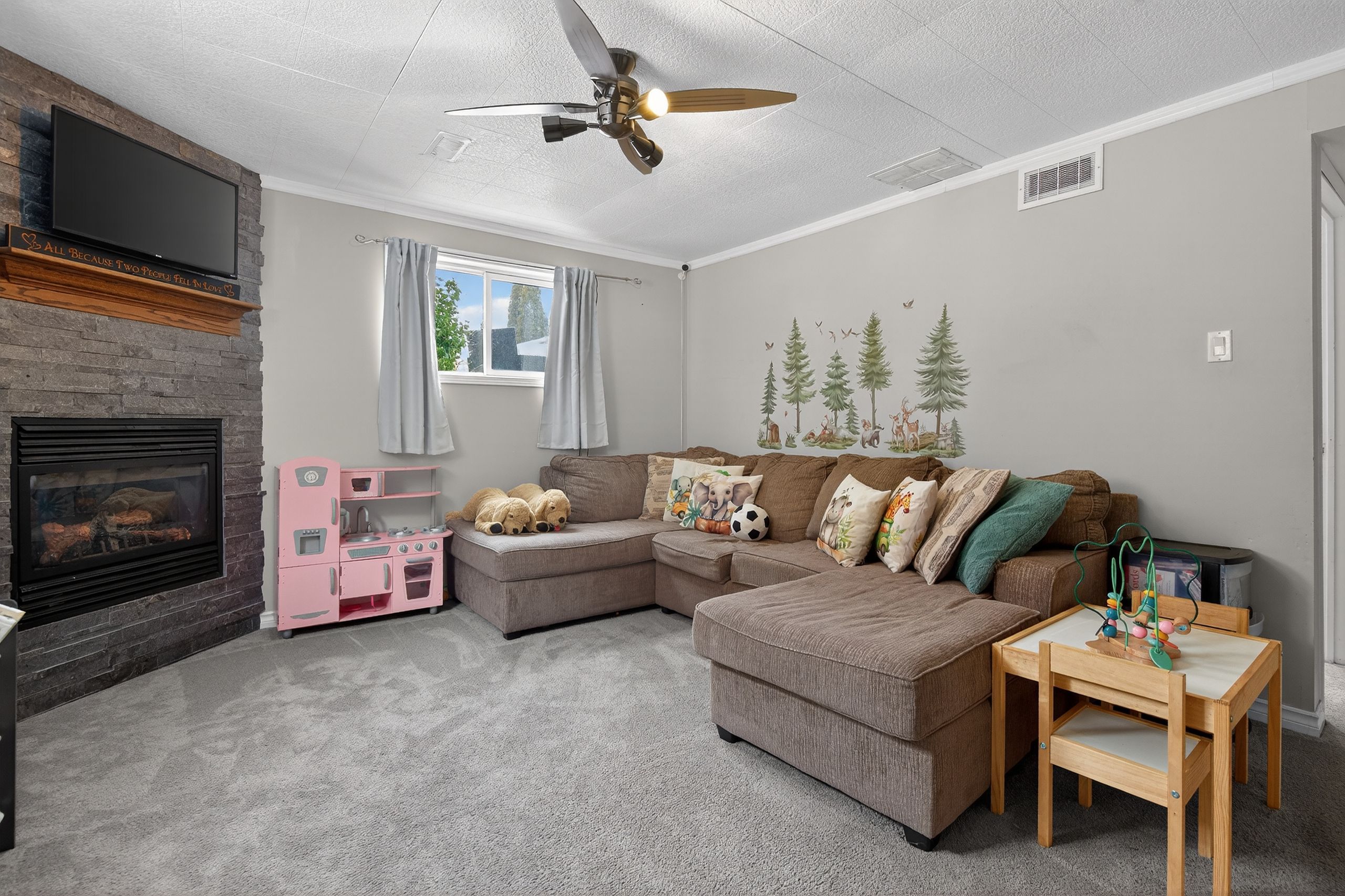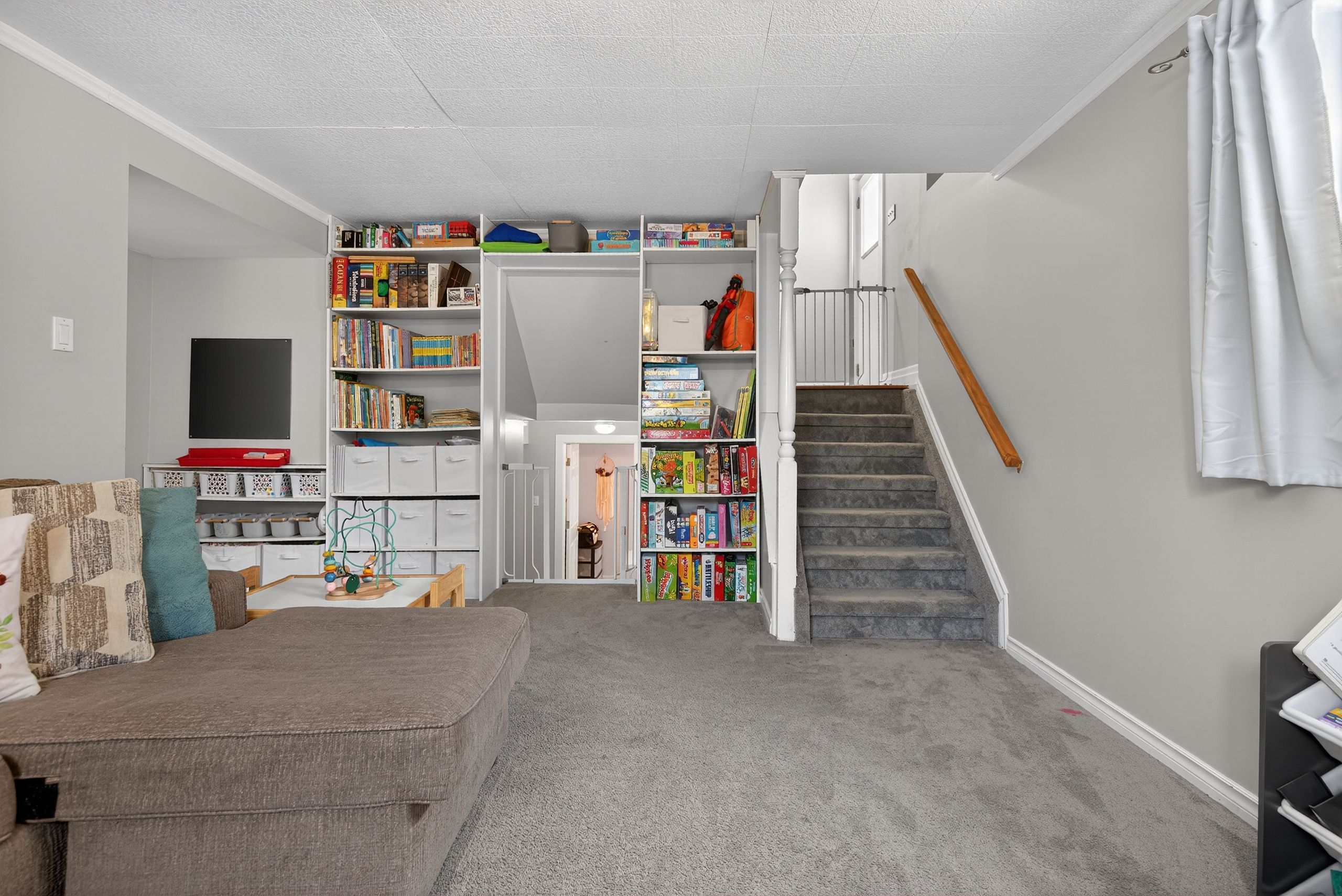 This immaculate 4 level back-split offers 3 bedrooms, 2 updated bathrooms, and a private fully fenced backyard, complete with a welcoming front porch. Convenient location: across from kiwanis park (featuring baseball diamond, basketball court and playground), walking distance to both catholic and public elementary schools, close to highway 115 and all amenities. The main floor features a bright living room and dining room, an updated kitchen with refaced cabinetry, new hardware, updated countertops and backsplash, along with a custom front closet/mudroom for added functionality. The upper level includes a spacious primary bedroom, a second bedroom, updated flooring, and a beautifully renovated 5 piece bathroom with a double sink vanity, modern tile work and a rainfall shower. The first lower level boasts a comfortable rec room with a cozy gas fire place and built in shelving, plus a third bedroom with its own ensuite bathroom, ideal for guests or teens. The second lower level offers laundry, ample storage and two additional flexible rooms, perfect for an office, gym or hobby space. Most windows have been replaced and the furnace was updated in 2022, making this home truly move in ready.