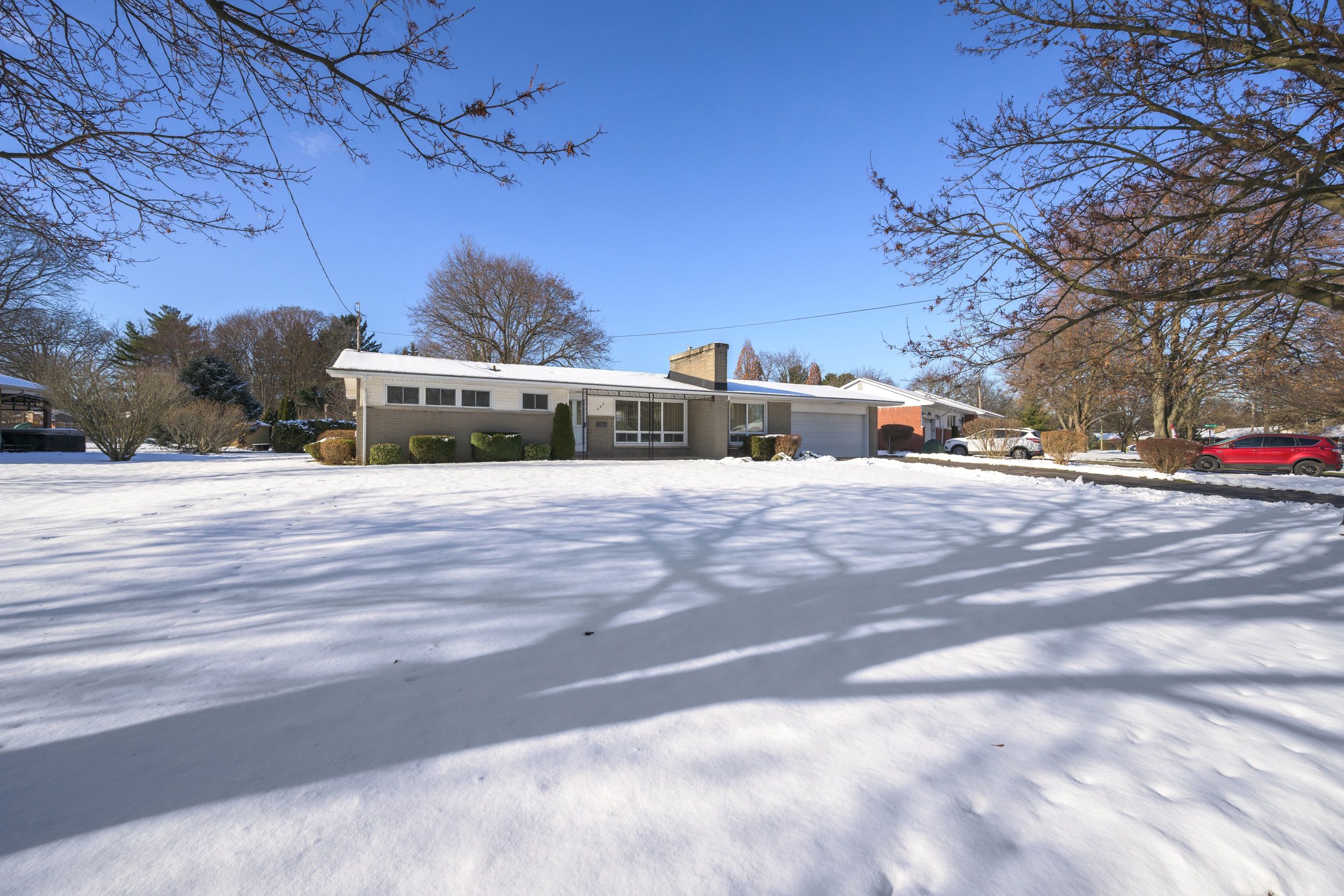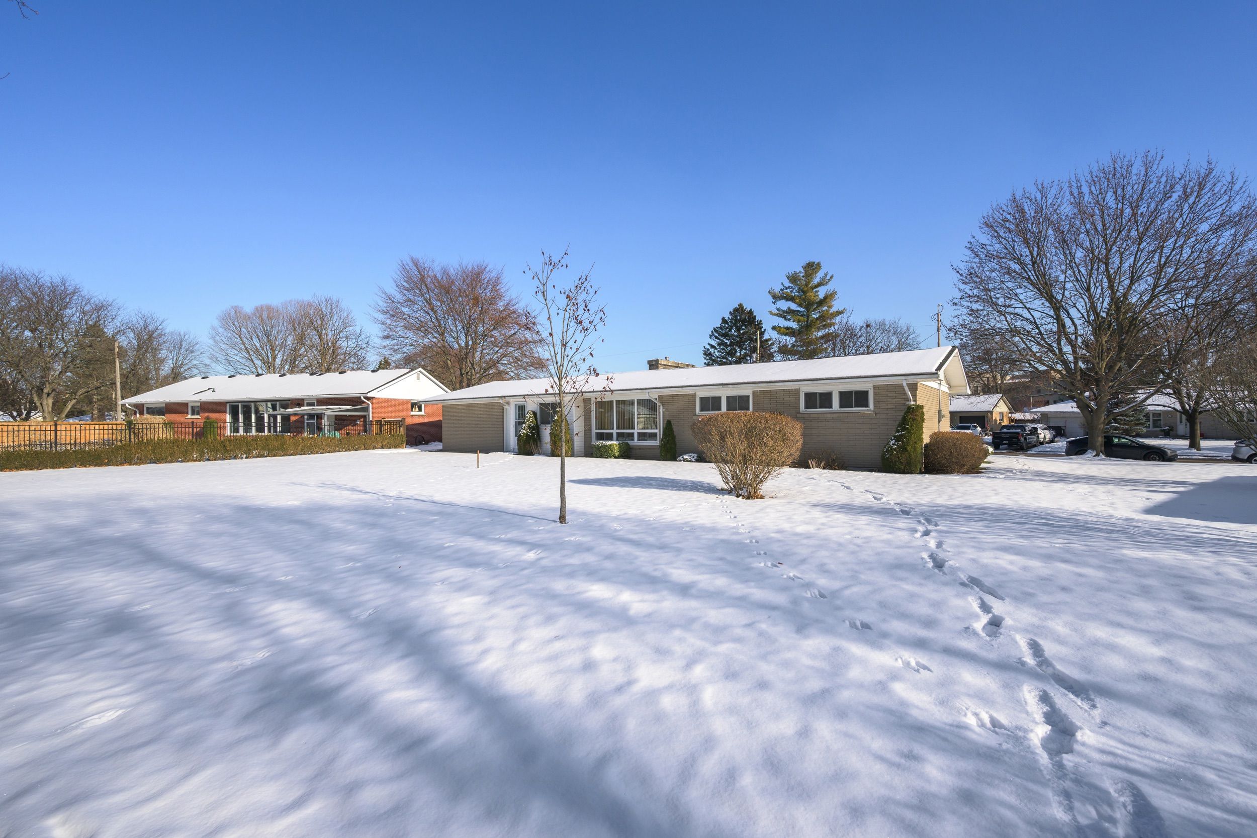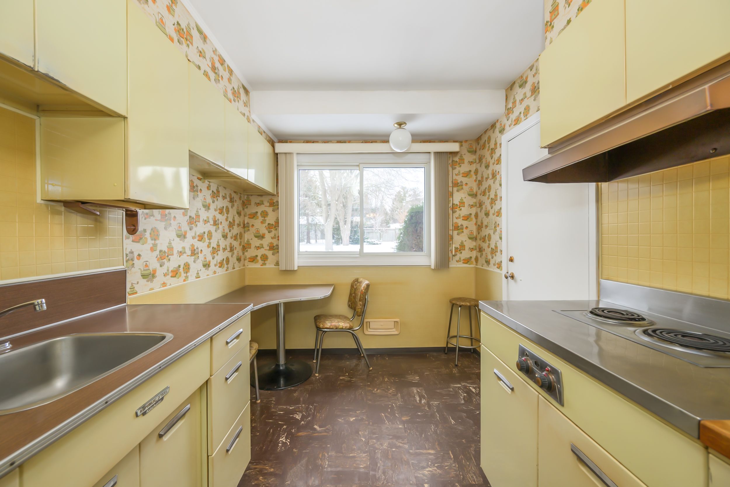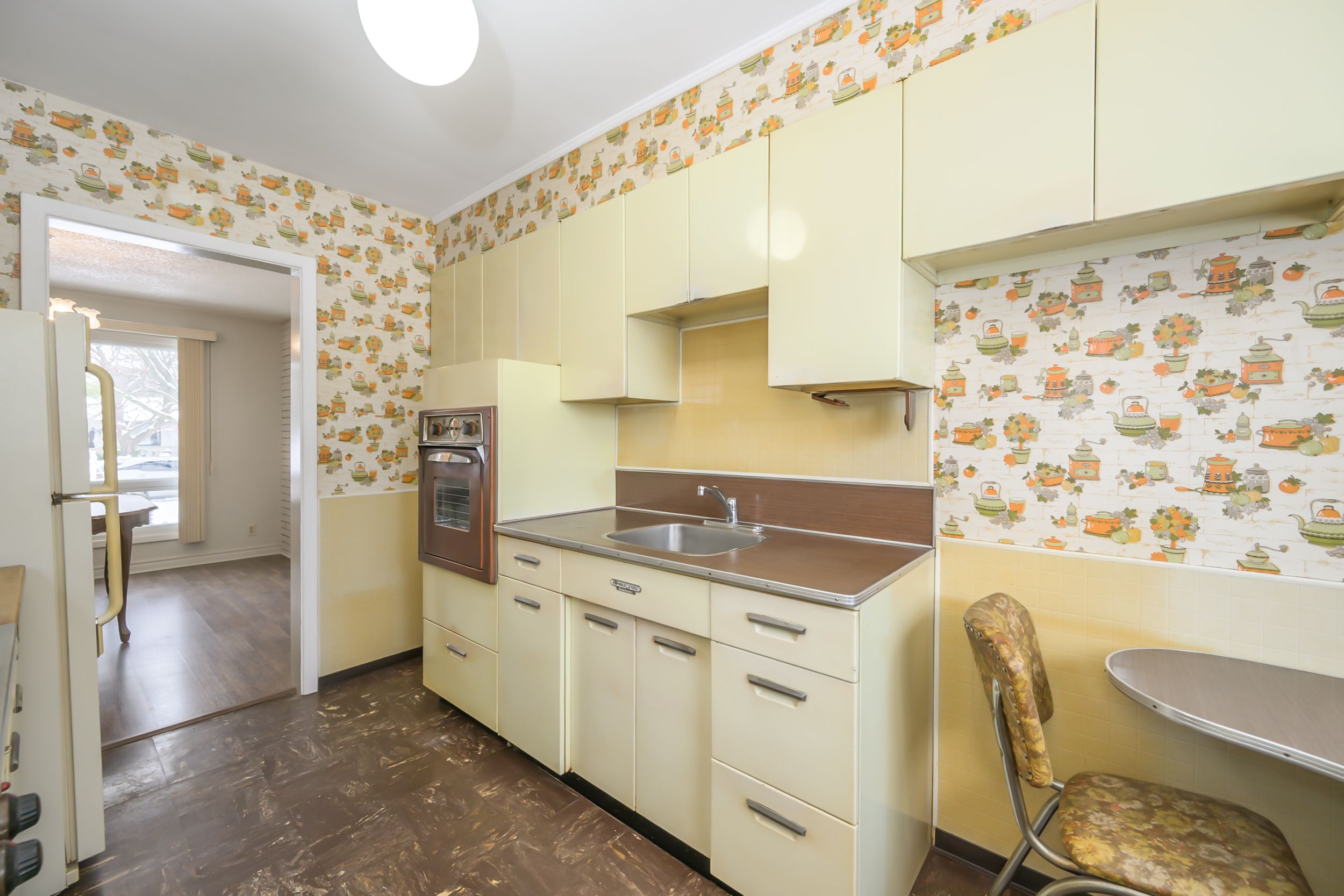 Nestled in coveted oakridge, at 1400 square feet this remarkably well kept home offers larger square footage than many in the area, a generous 90' lot, and a rare double-car garage with inside entry, a true standout for the neighbourhood. With its authentic mid-century vibe and excellent potential to create an open-concept layout, this property is an exceptional opportunity. Step into a spacious great room featuring large windows on both ends that fill the space with beautiful natural light throughout the day. The dining room is separated by a classic mid-century double sided brick fireplace, a timeless architectural detail that adds warmth and character. The kitchen includes an original republic metal kitchen, beautifully preserved and sitting adjacent to the great room, making it easy to envision a stunning open redesign. The bedrooms are well sized, including a primary suite large enough to accommodate a king-size bed and a main bathroom with two sinks. Updated with vinyl windows. This home offers fantastic potential in an a+ neighbourhood known for its sought after schools, local shopping, proximity to the hospital and western university, arenas, springbank park, and several golf courses. Cherished by the same owner for over 60 years, this property reflects the lasting appeal of a neighbourhood that remains truly community-minded, something that feels rare today, and perhaps one of the reasons the owners stayed so long. Now this much-loved home awaits its next chapter, and its next owner to enjoy it for decades to come. A truly special property with timeless character and endless possibilities.