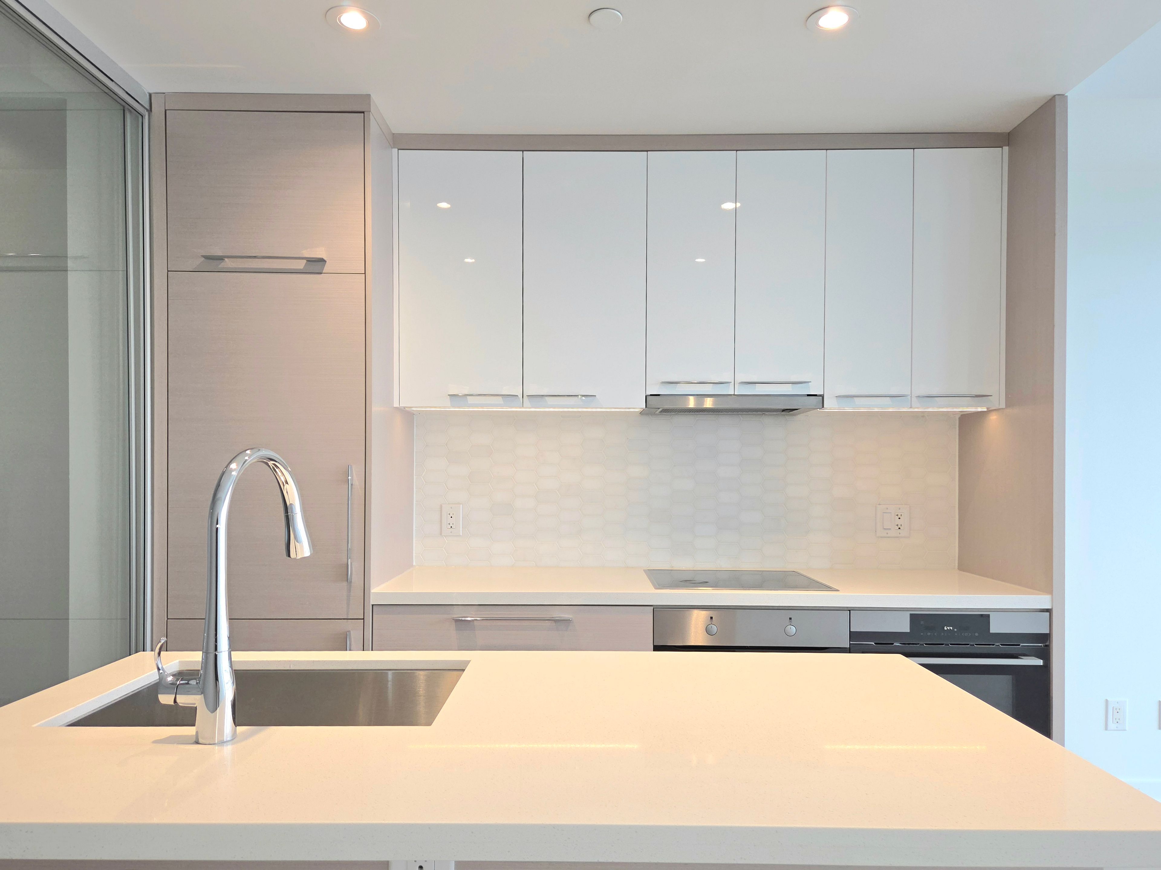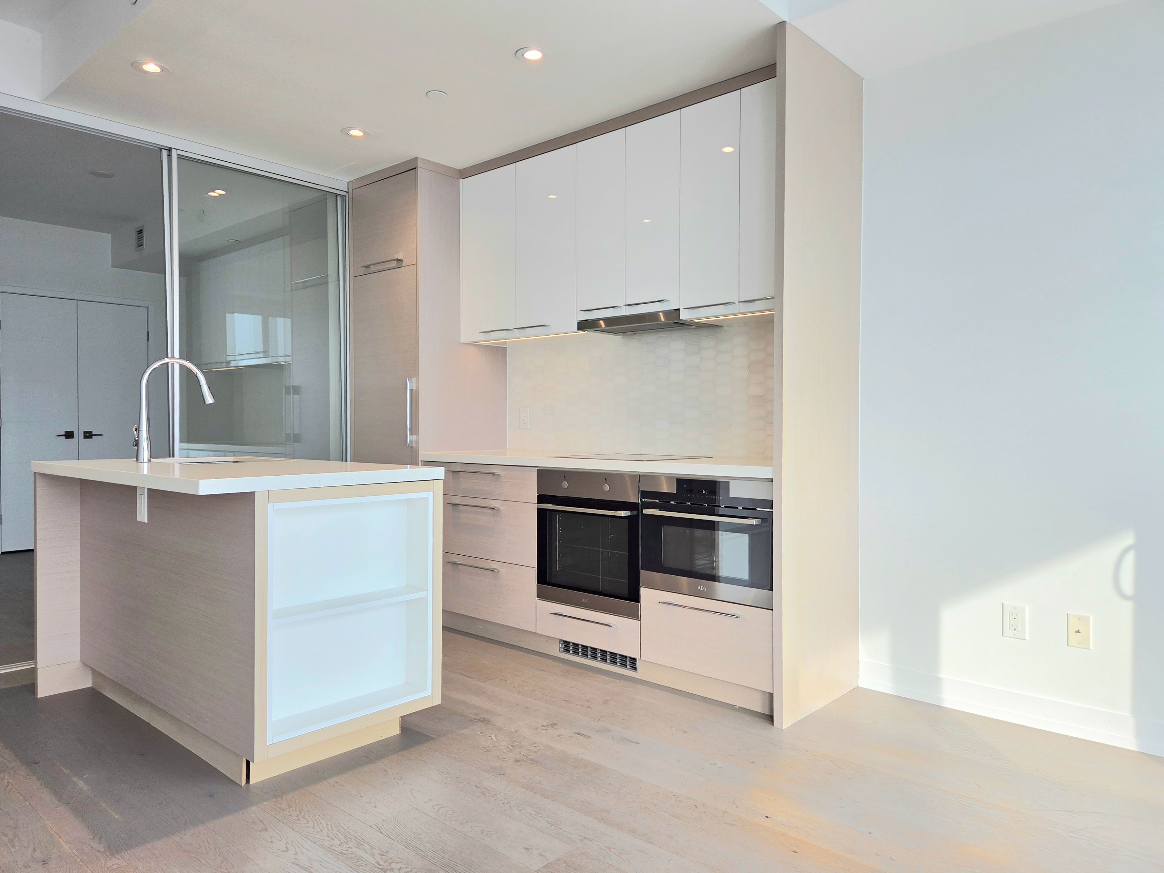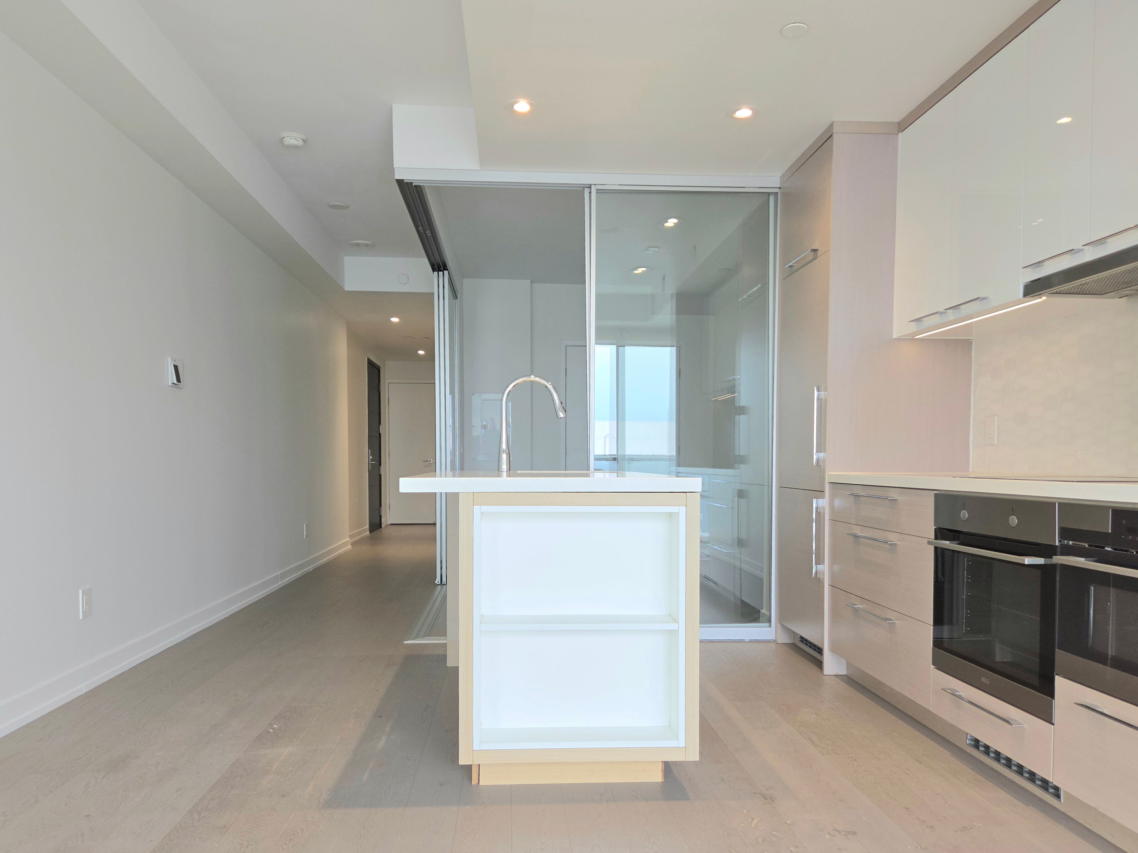 • Spacious one-bedroom suite with large balcony and modern kitchen.