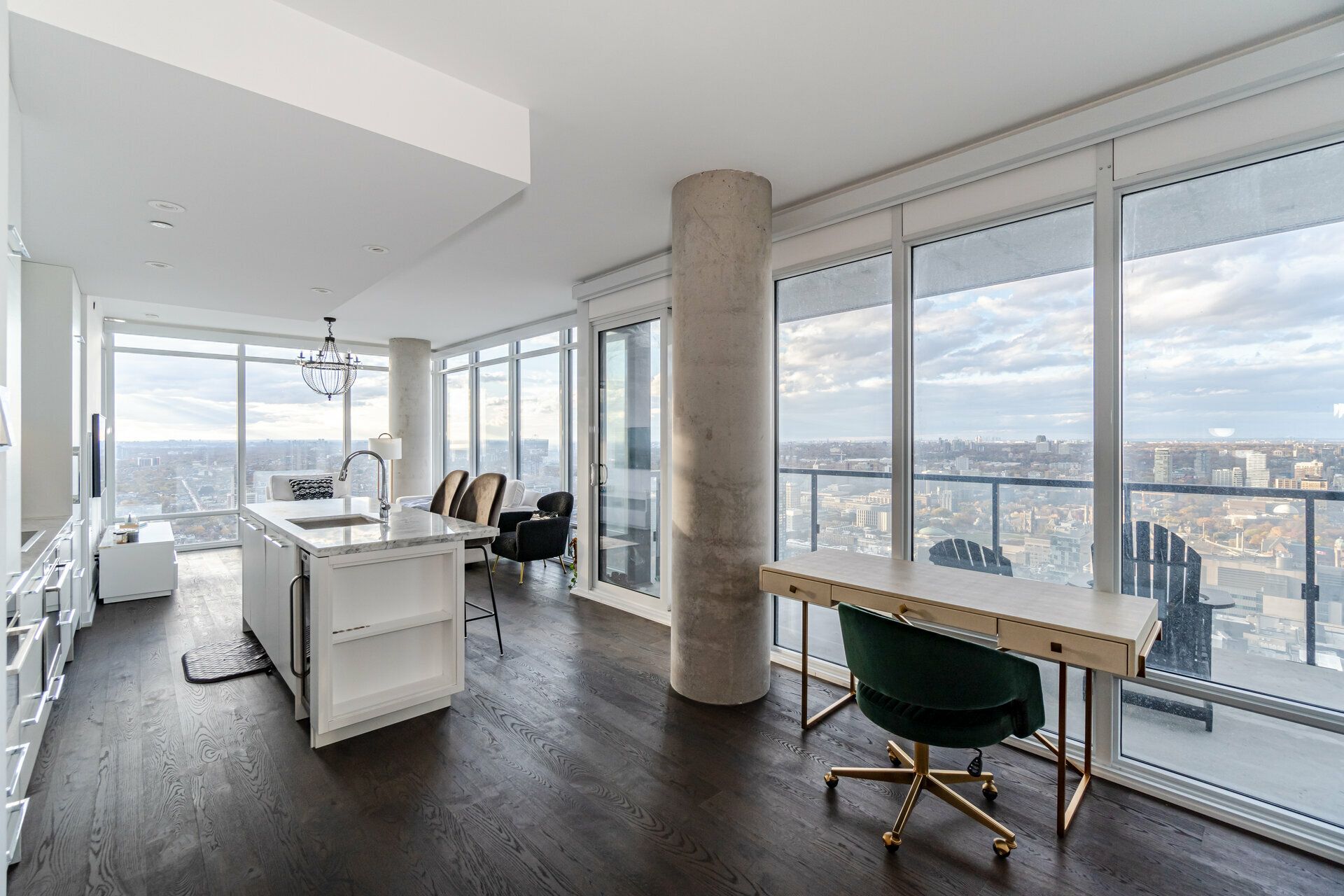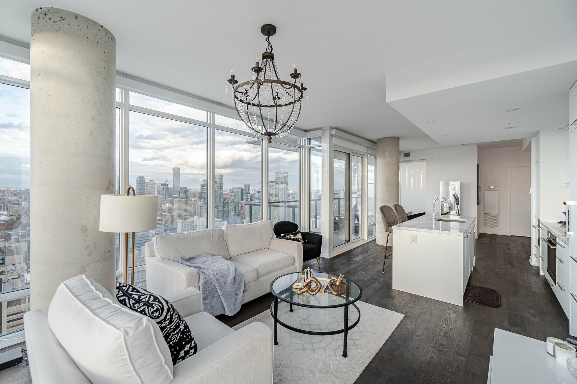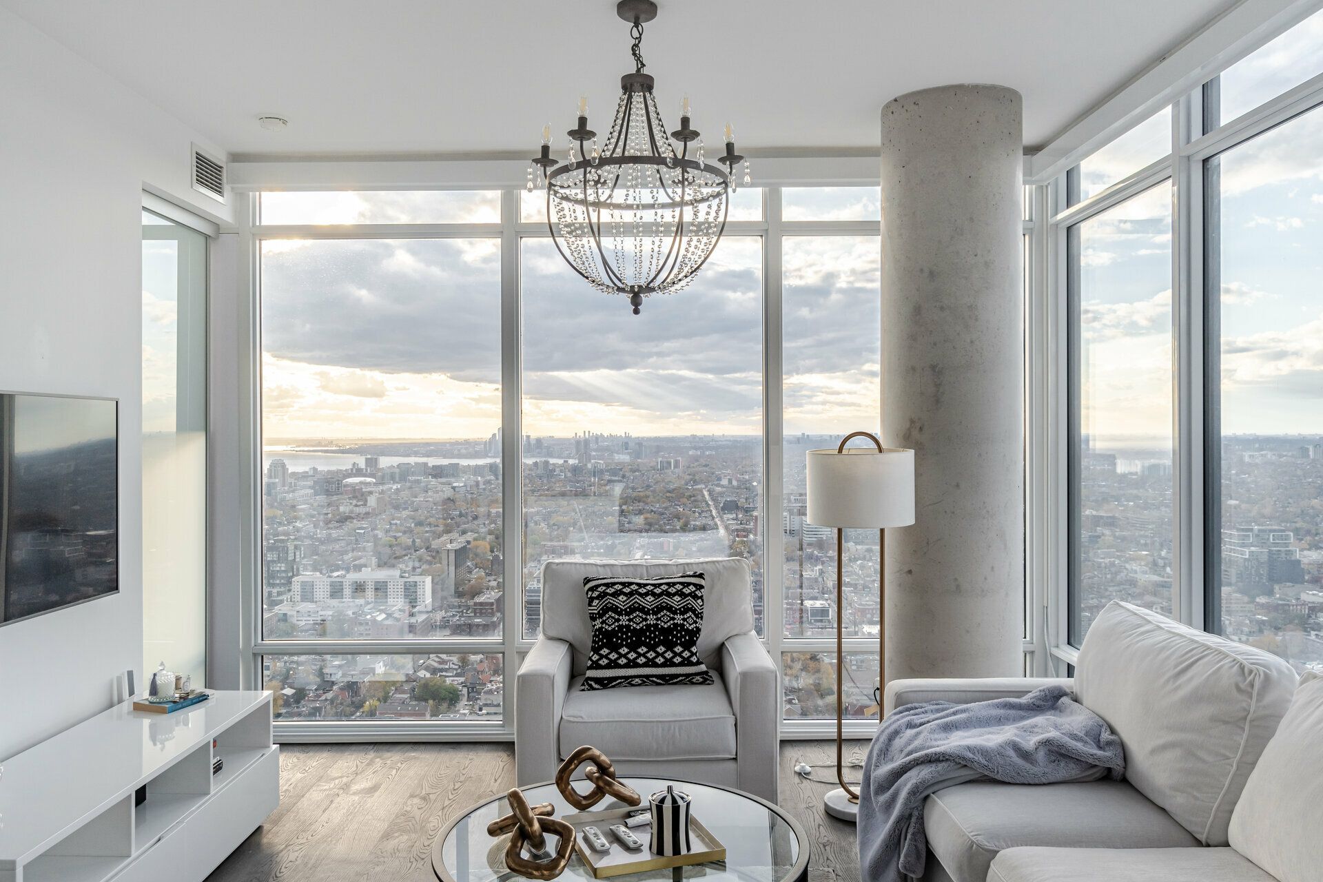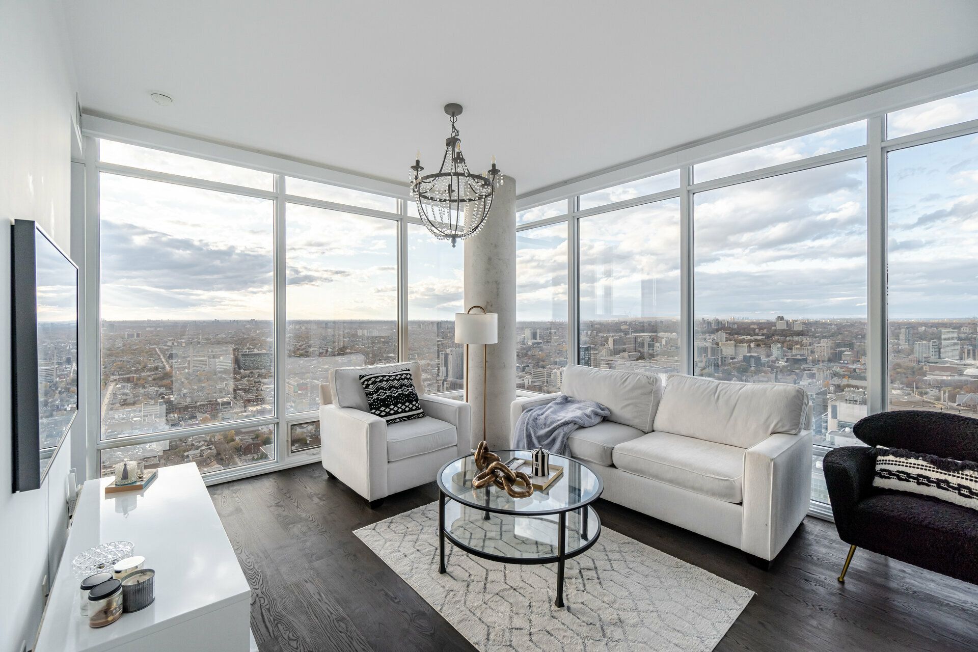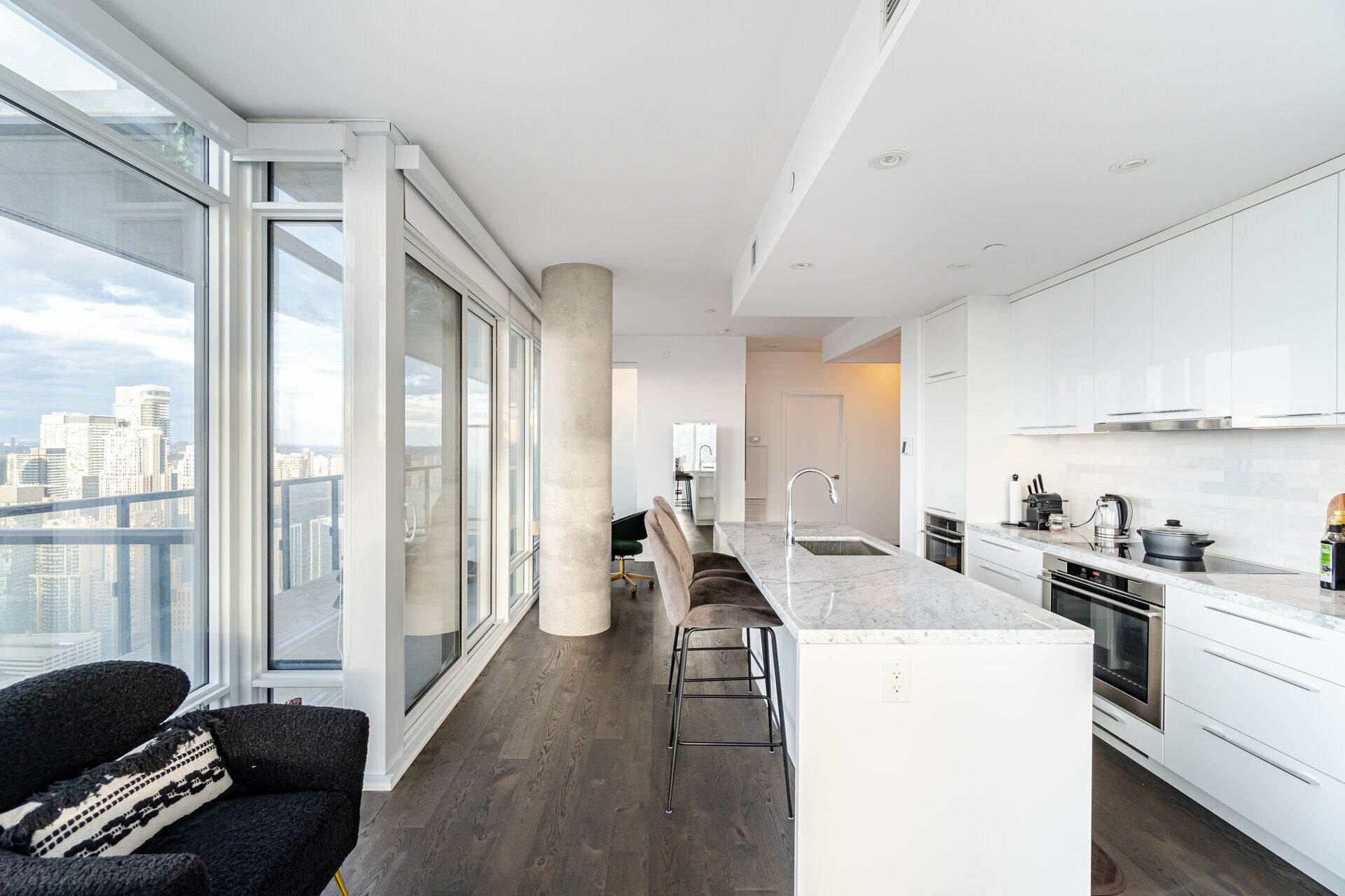 • Luxury 40th-floor corner suite with panoramic city views and spacious layout.
