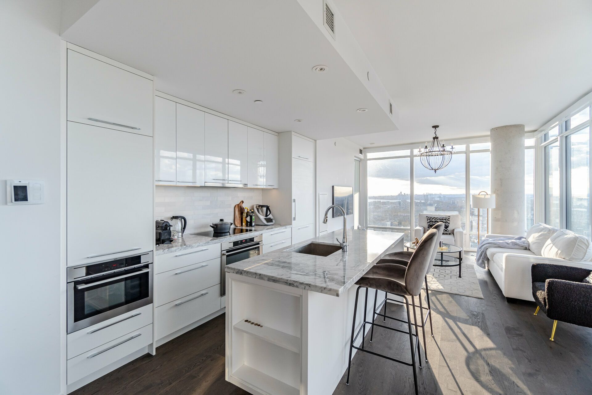 • Award-winning design features floor-to-ceiling windows and hardwood floors.