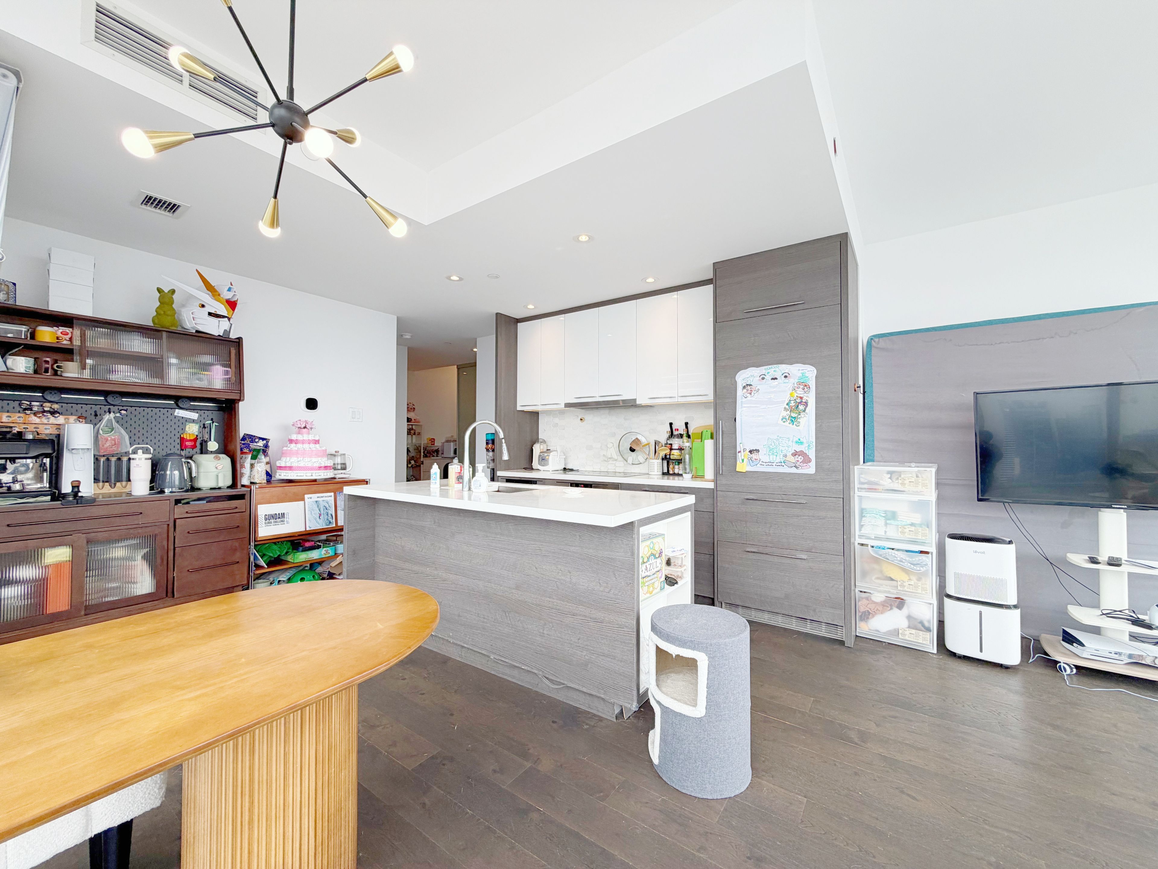 • Modern kitchen featuring elegant marble countertops.